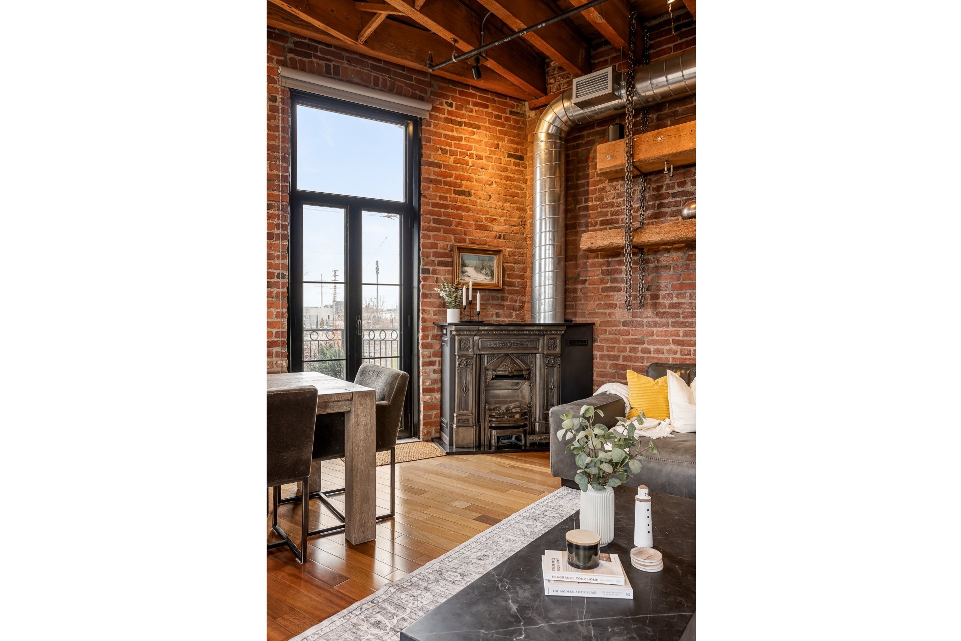 This sale is made without any legal warranty of quality, at the buyer's own risk. This sale is made without any legal warranty of quality from the seller as pertains to all appliances . This is not an offer or promise to sell that could bind the seller to the buyer, but an invitation to submit such offers or promises. The inspector shall be agreed upon by both the buyer and seller Prepare to be amazed by this architectural showpiece tucked away in the historic Clos St-Ambroise, a true hidden gem in the heart of St-Henri's Old Tannery district. Originally a 19th-century industrial building, this rare condo was part of a landmark transformation into exclusive residences in 2005--and it still stands as one of the most stylish and striking units in the complex.