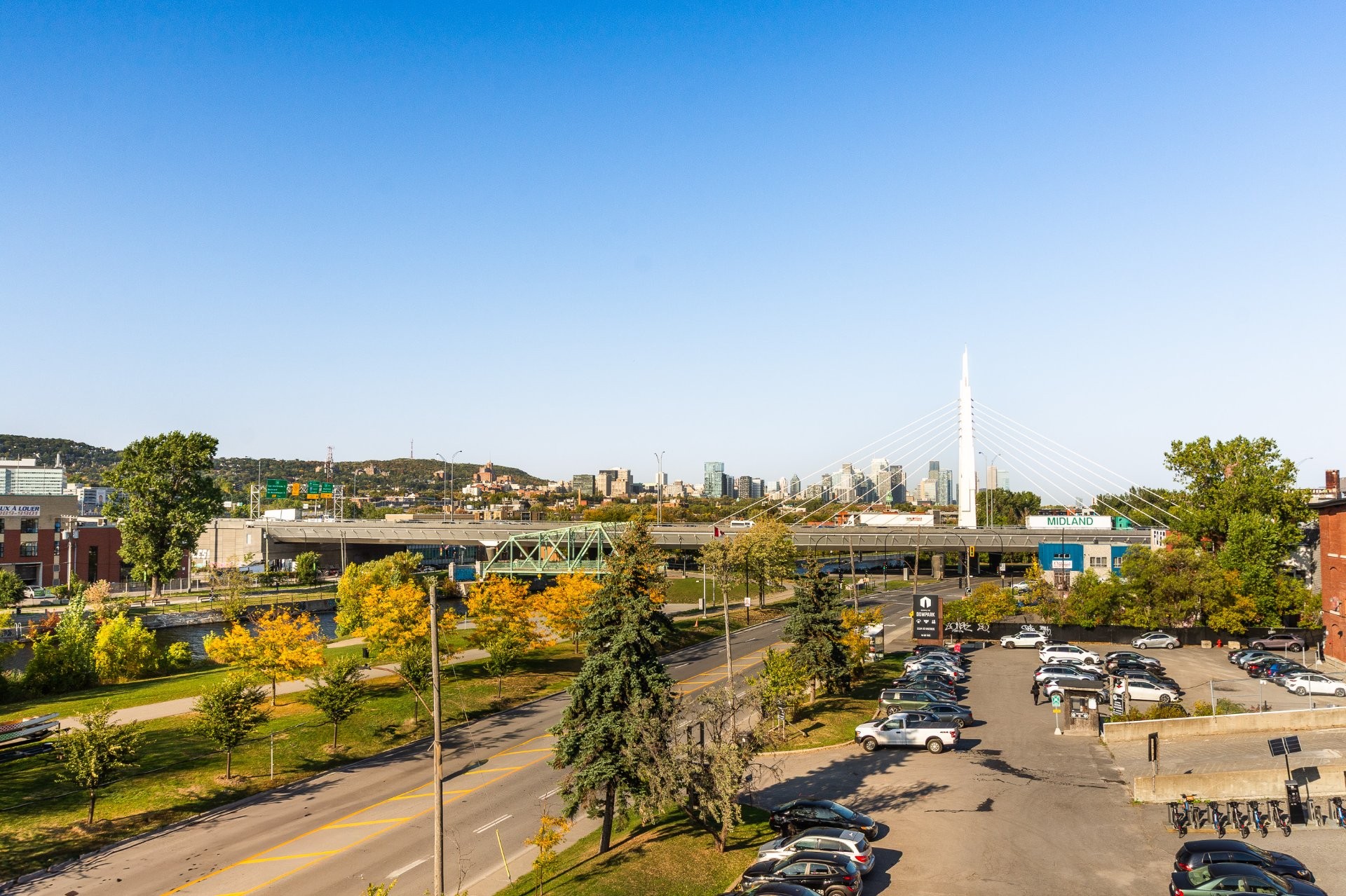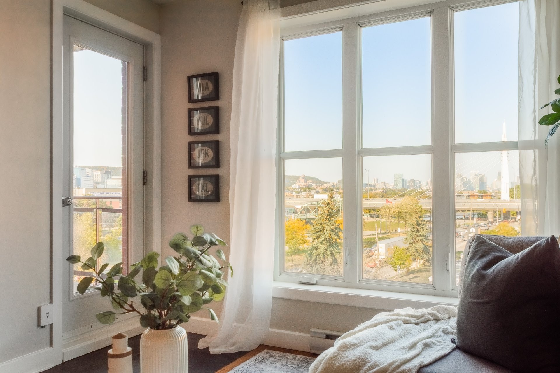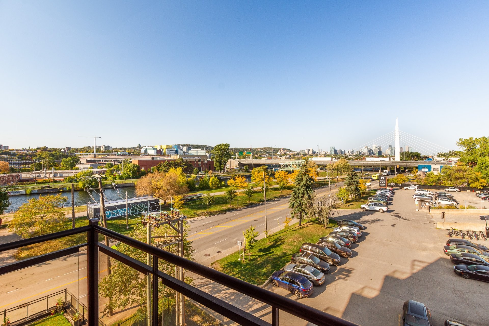 LE PORTAIL DU CANAL -- Phase 1. Experience city living at its best! This elegant condo offers a bright, open space with panoramic views of Montreal's skyline. Ideally located near the Lachine Canal, Atwater Market, and downtown, with bike paths, cafés, and parks just steps away. Right next to the well-known restaurant McKiernan -- watch the city come alive right from your window! Features include wall-mounted A/C, ample storage, outdoor parking, and a solid concrete building with elevators.
