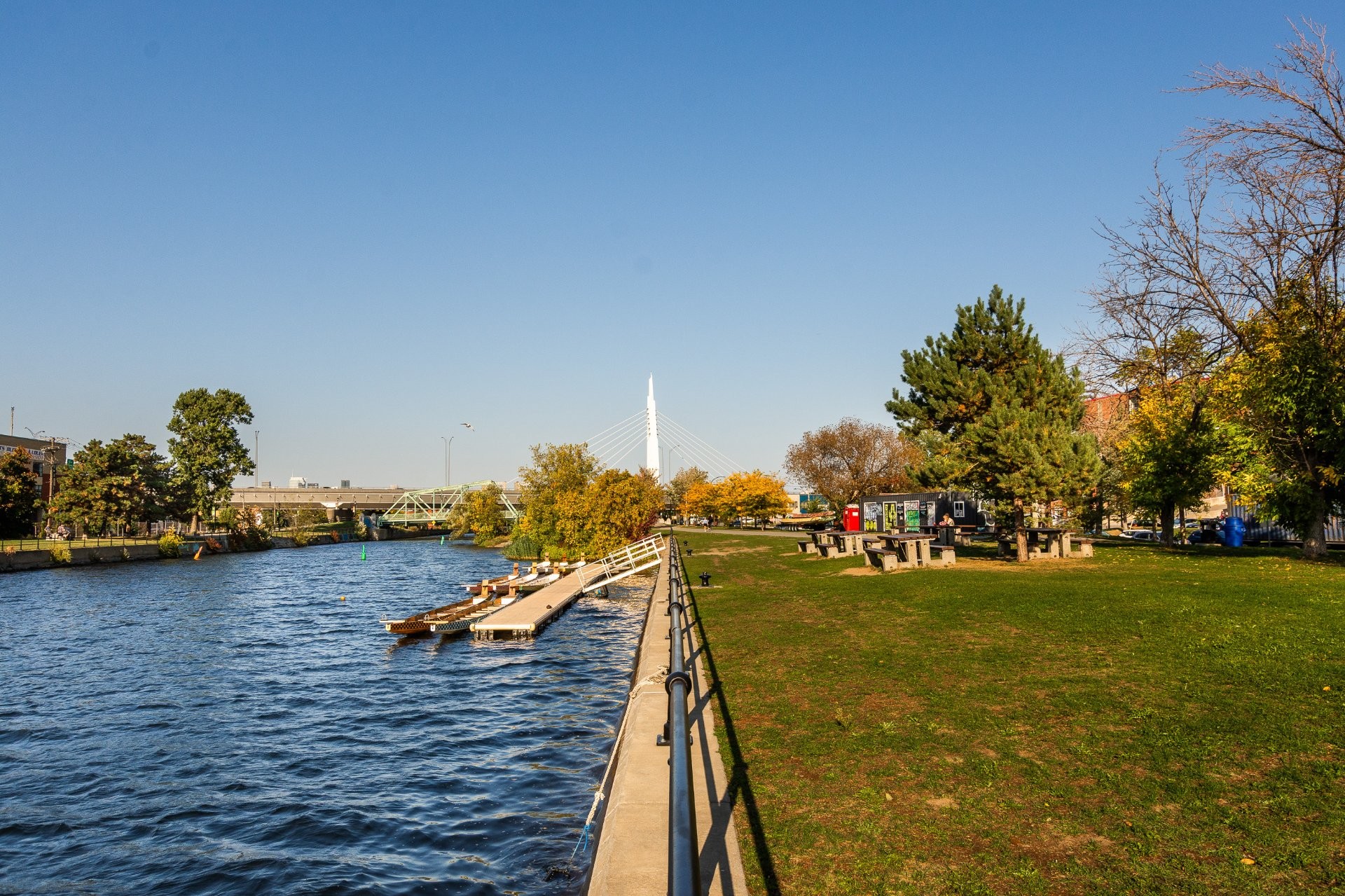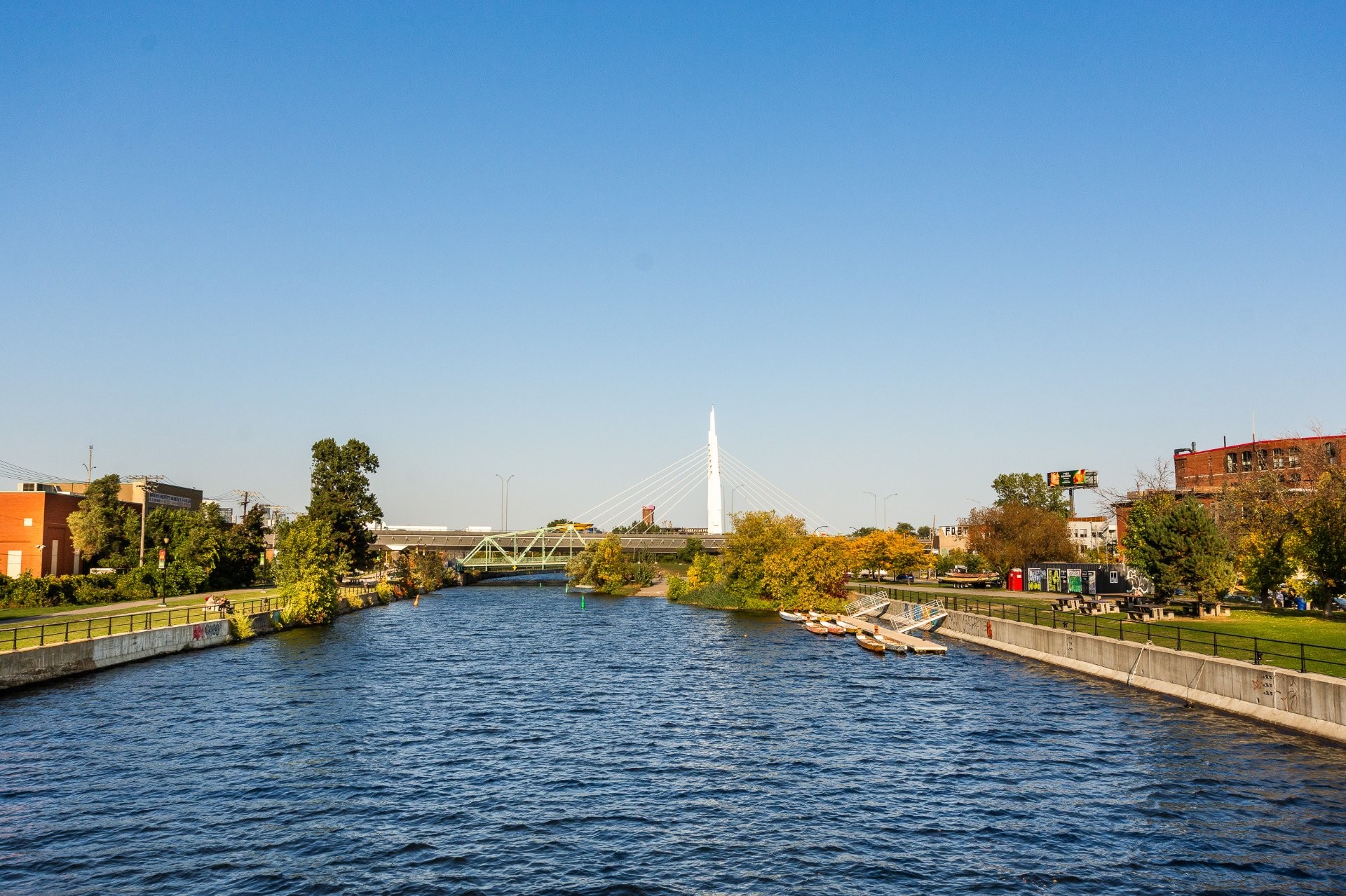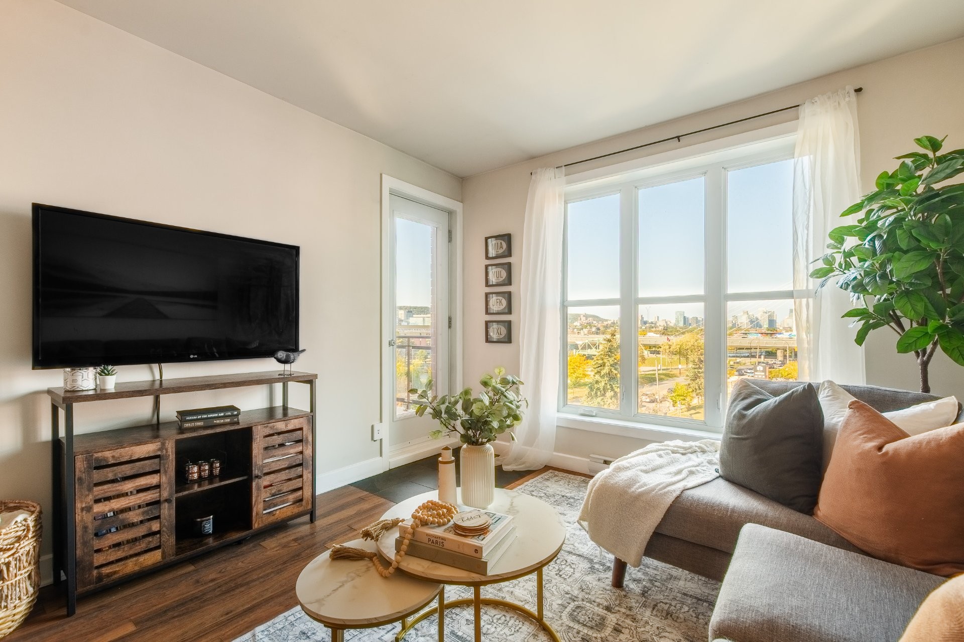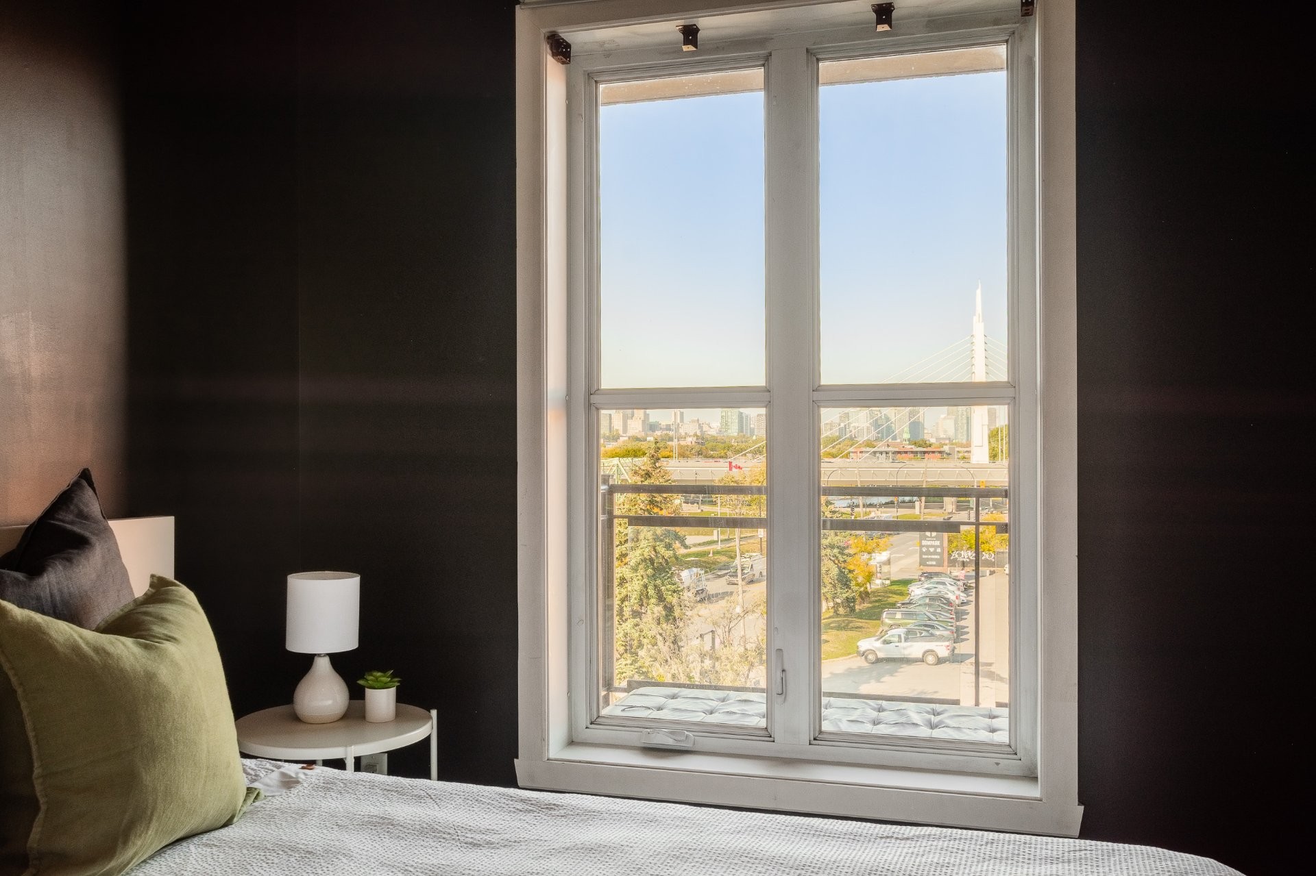LE PORTAIL DU CANAL -- Phase 1. Experience city living at its best! This elegant condo offers a bright, open space with panoramic views of Montreal's skyline. Ideally located near the Lachine Canal, Atwater Market, and downtown, with bike paths, cafés, and parks just steps away. Right next to the well-known restaurant McKiernan -- watch the city come alive right from your window! Features include wall-mounted A/C, ample storage, outdoor parking, and a solid concrete building with elevators.