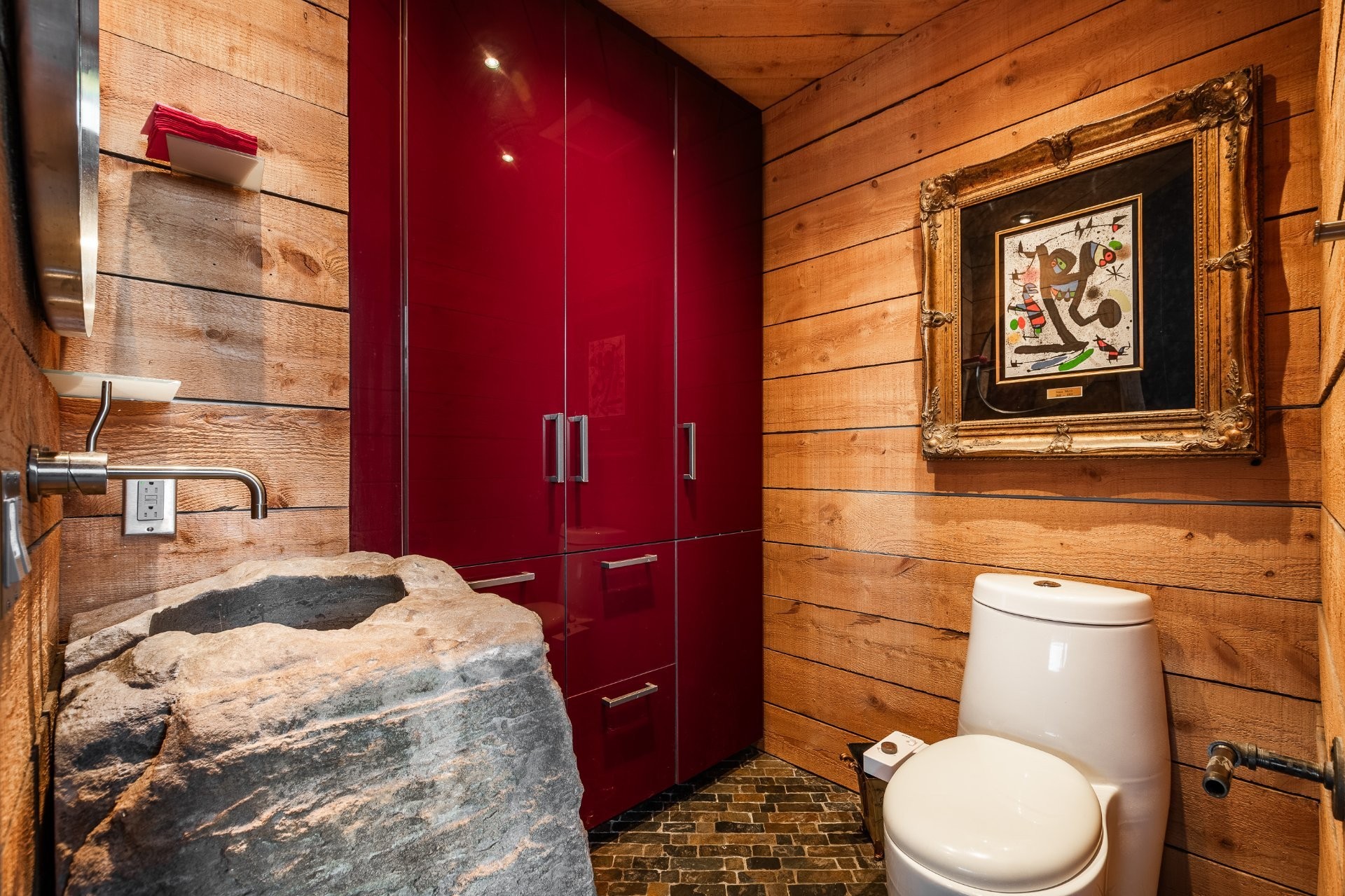 The kitchen is a work of art, featuring stone-carved countertops that add a bold, sculptural element to the space. The same artistry continues in the powder room and spa-like ensuite, where custom stone sinks, heated floors, a freestanding tub, walk-in shower, and ample storage create a true sanctuary in the sunny, oversized primary bedroom.