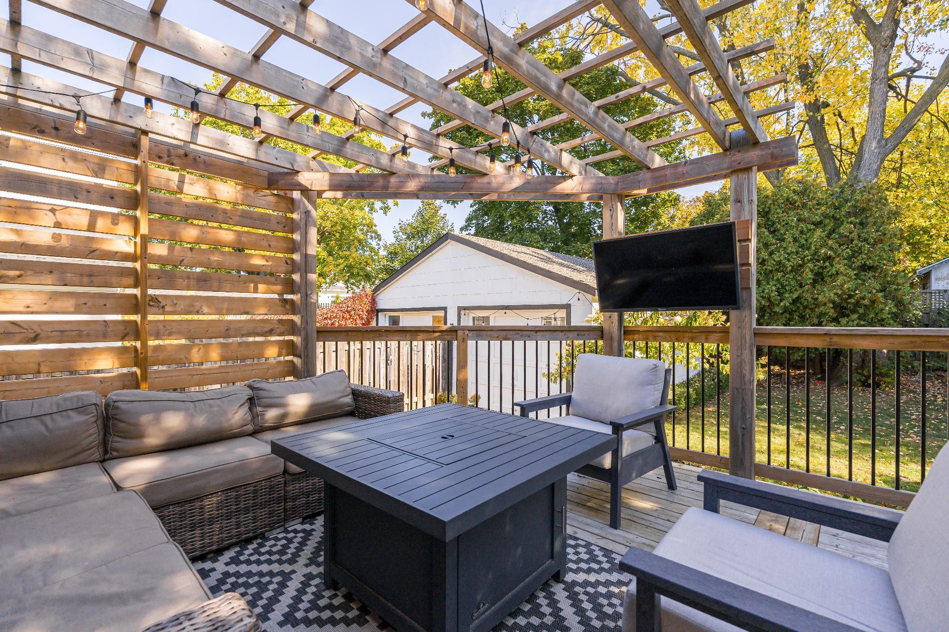 Washer, Dryer, Wall-mounted TV's in the living room and patio