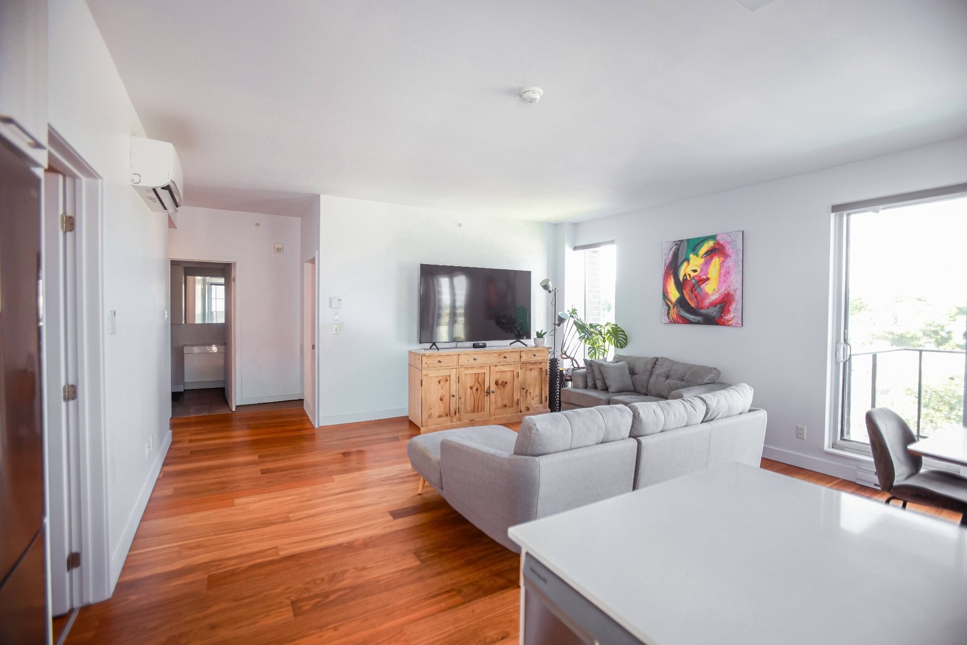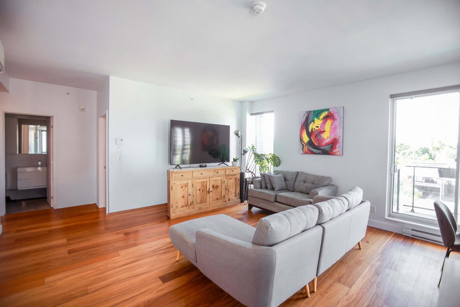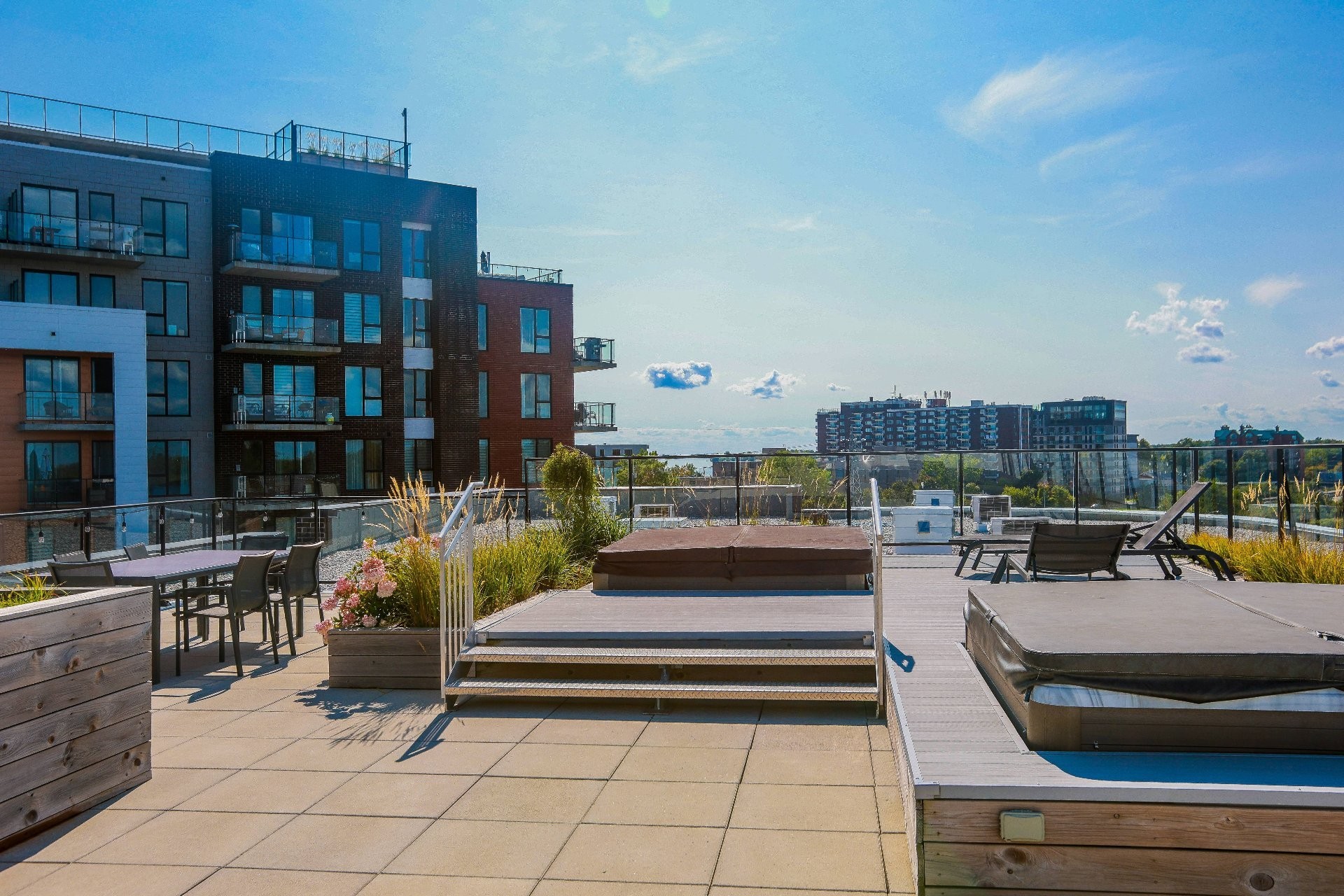 Experience modern living in this bright two bedroom, two bathroom condo including two indoor parking spaces! Situated in the sought-after Kubik Phase 2 in Pointe-Claire, available for July 1st! The open-concept layout includes a modern kitchen with quartz counters,large island with breakfast bar,and a spacious living and dining area.The primary bedroom offers a walk-in closet and ensuite with a glass shower,followed by the second bedroom.A second full bathroom features a tub and shower with quality finishes.The balcony is facing the courtyard,and residents have access to the rooftop with hot tubs and bbq as well as an indoor gym.