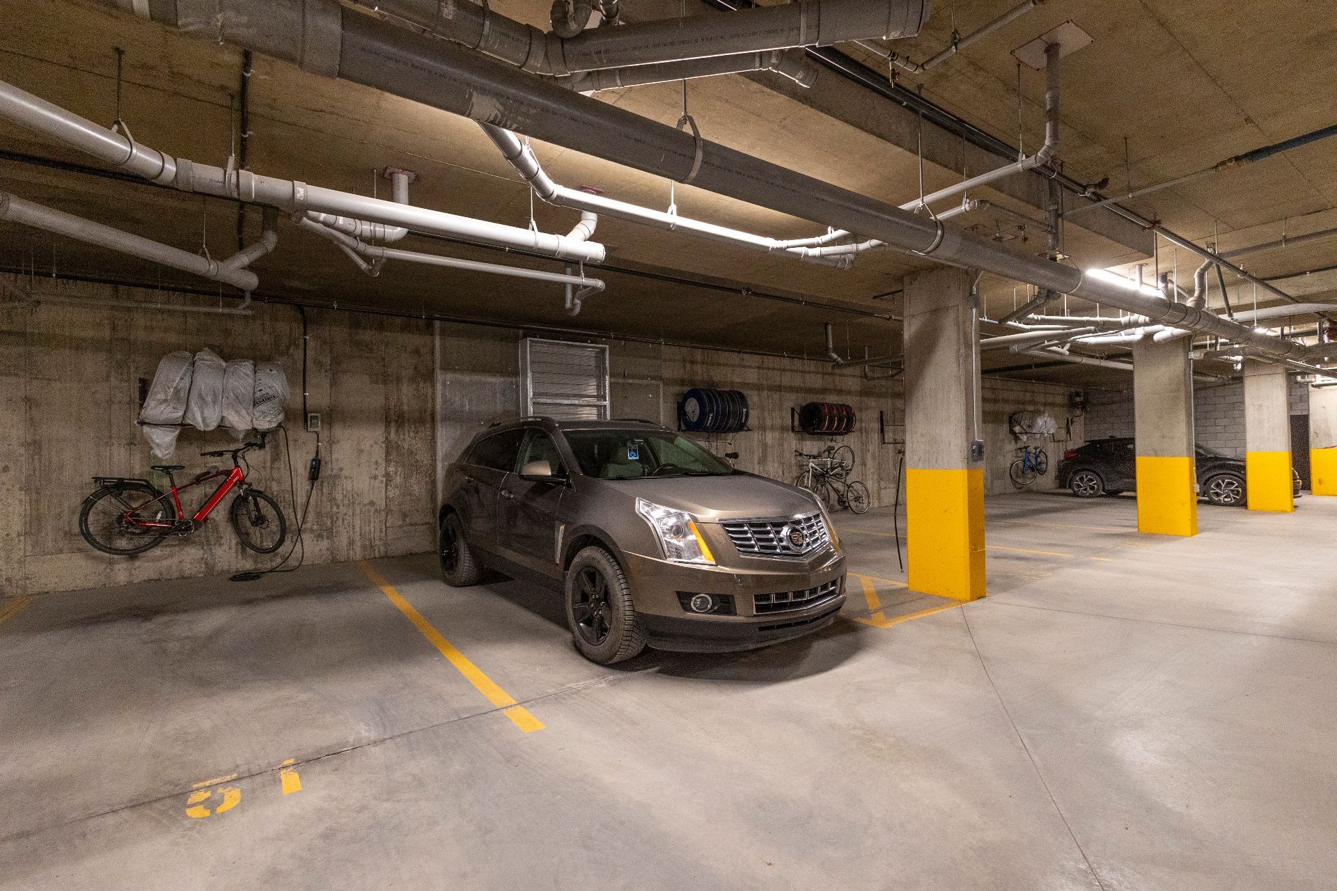 Welcome to this beautifully maintained first floor condo offering comfort and style. This freshly painted 1-bedroom unit features air conditioning, interior parking, and a large 8'x4' private locker for extra storage. Enjoy a sleek, contemporary kitchen and an abundance of storage throughout, including custom-built wall units in the dining area, bathroom, and bedroom. Step out easily to your private patio directly off the dining room - perfect for morning coffee or evening relaxation. Common spaces include a pool and a hot tub. Conveniently located near shopping, restaurants, public transit, and highways. An opportunity not to be missed!