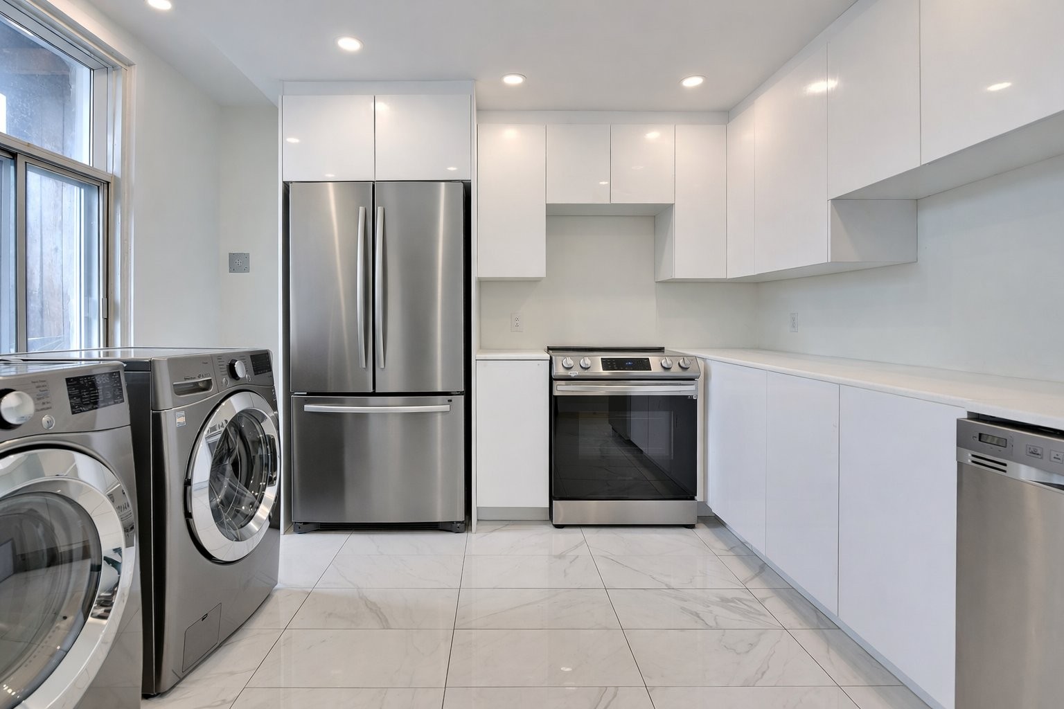Fridge, stove, washer, dryer, dishwasher, microwave hood