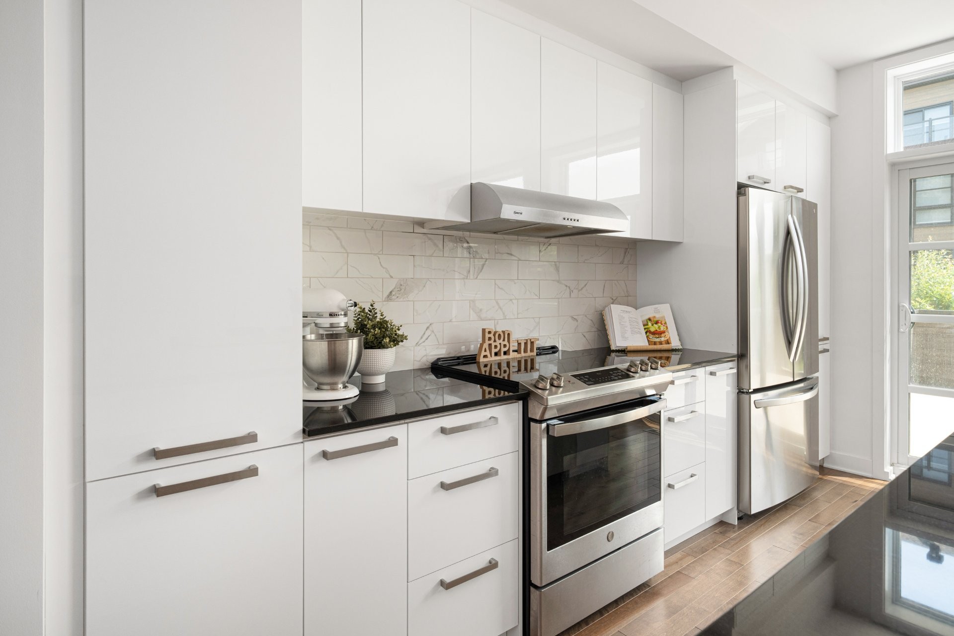 Mezzanine (3rd level):- primary bedroom with two walk-in closets and ensuite bathroom- private balcony