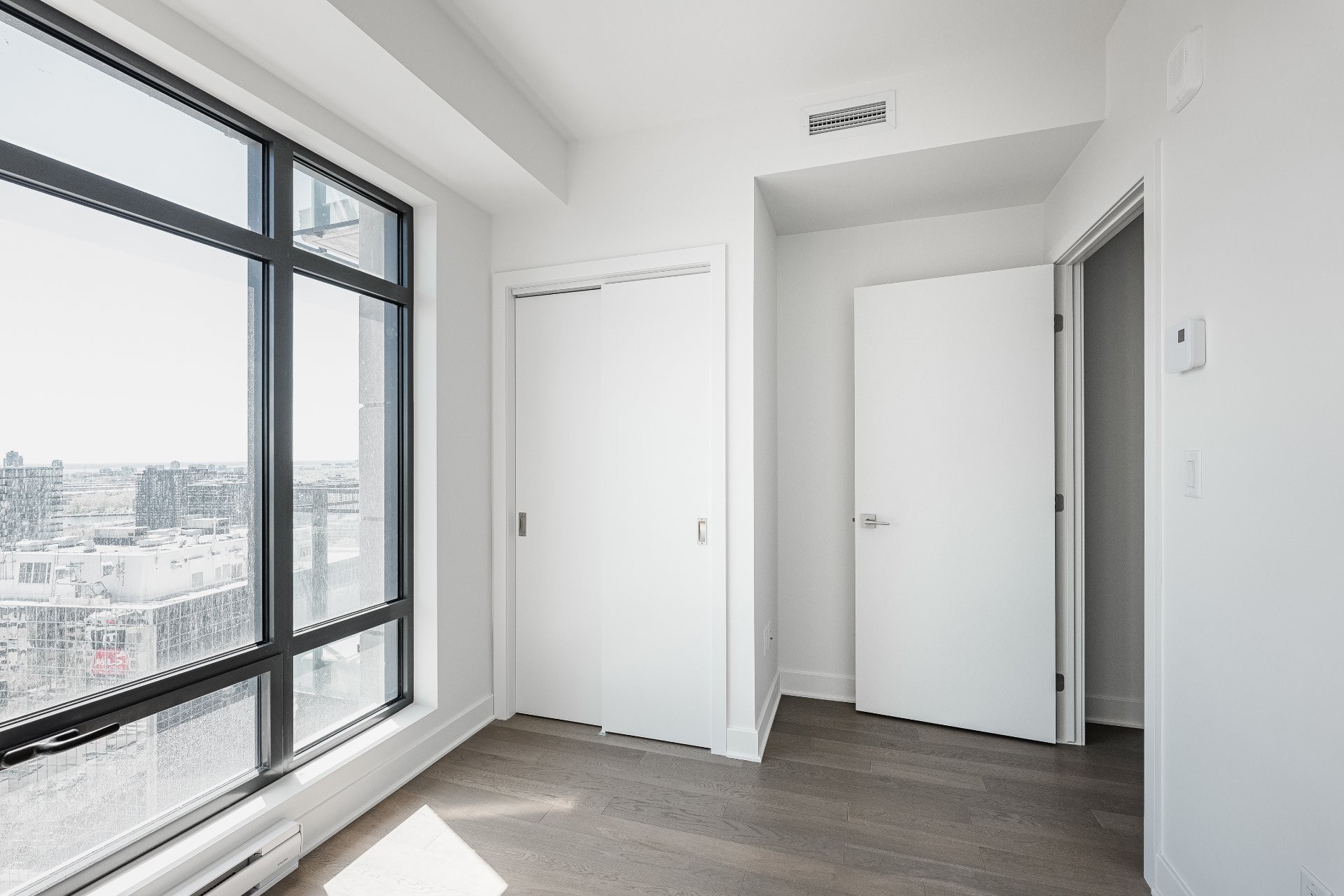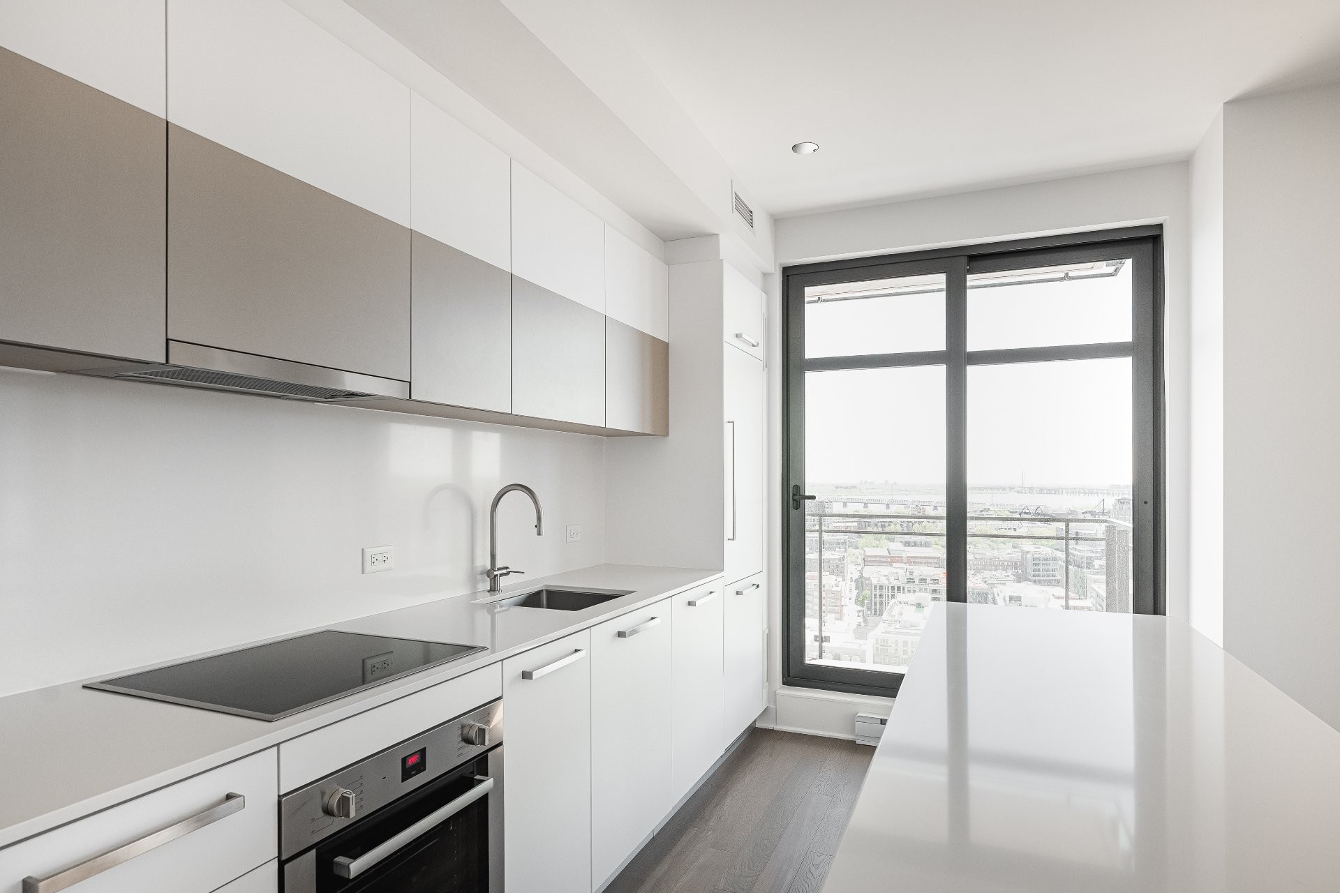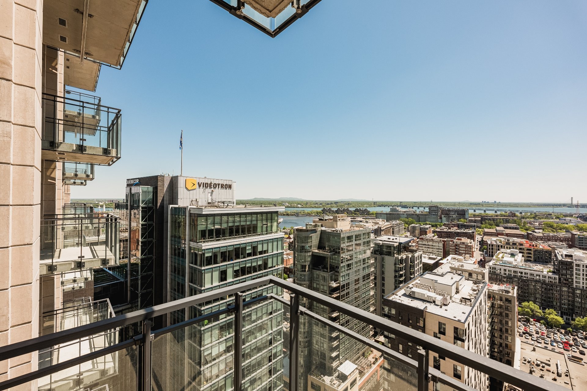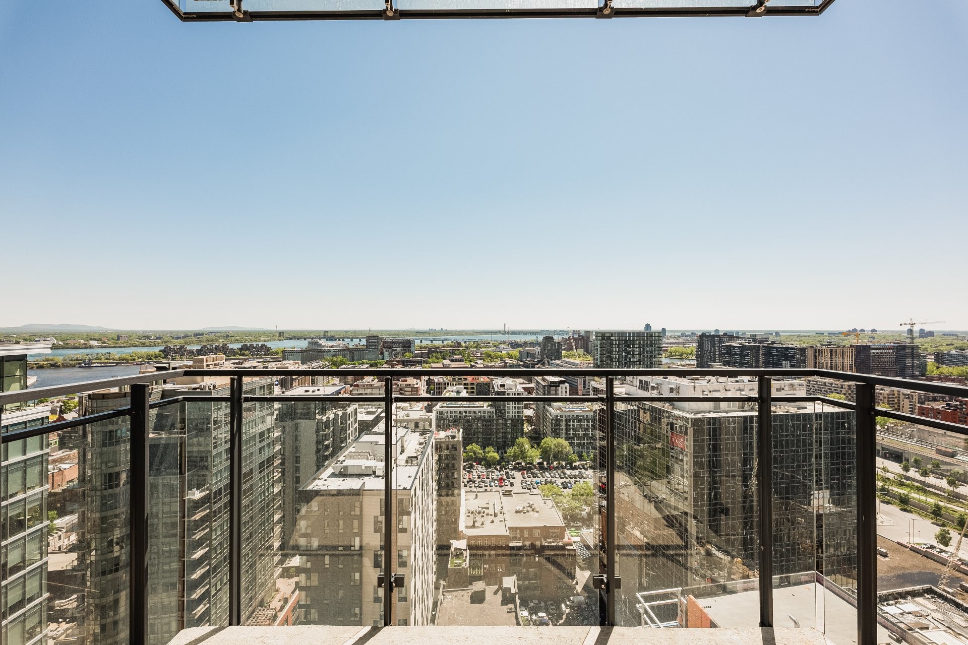 A fantastic opportunity to live in one of Montreal's newest condo projects. Situated on the 27th floor of 628 St-Jacques, this two-bedroom, two-bathroom corner residence is south-facing with unobstructed views and filled with natural light. Features high ceilings, central air conditioning, built-in appliances and plenty of in-suite storage. Enjoy access to the finest amenities such as a rooftop pool, fitness center, sauna, and lounge room. Steps away from restaurants, shops, bike paths, transit (metro Square-Victoria-OACI), and the Old Port. Comes with one parking and one storage.