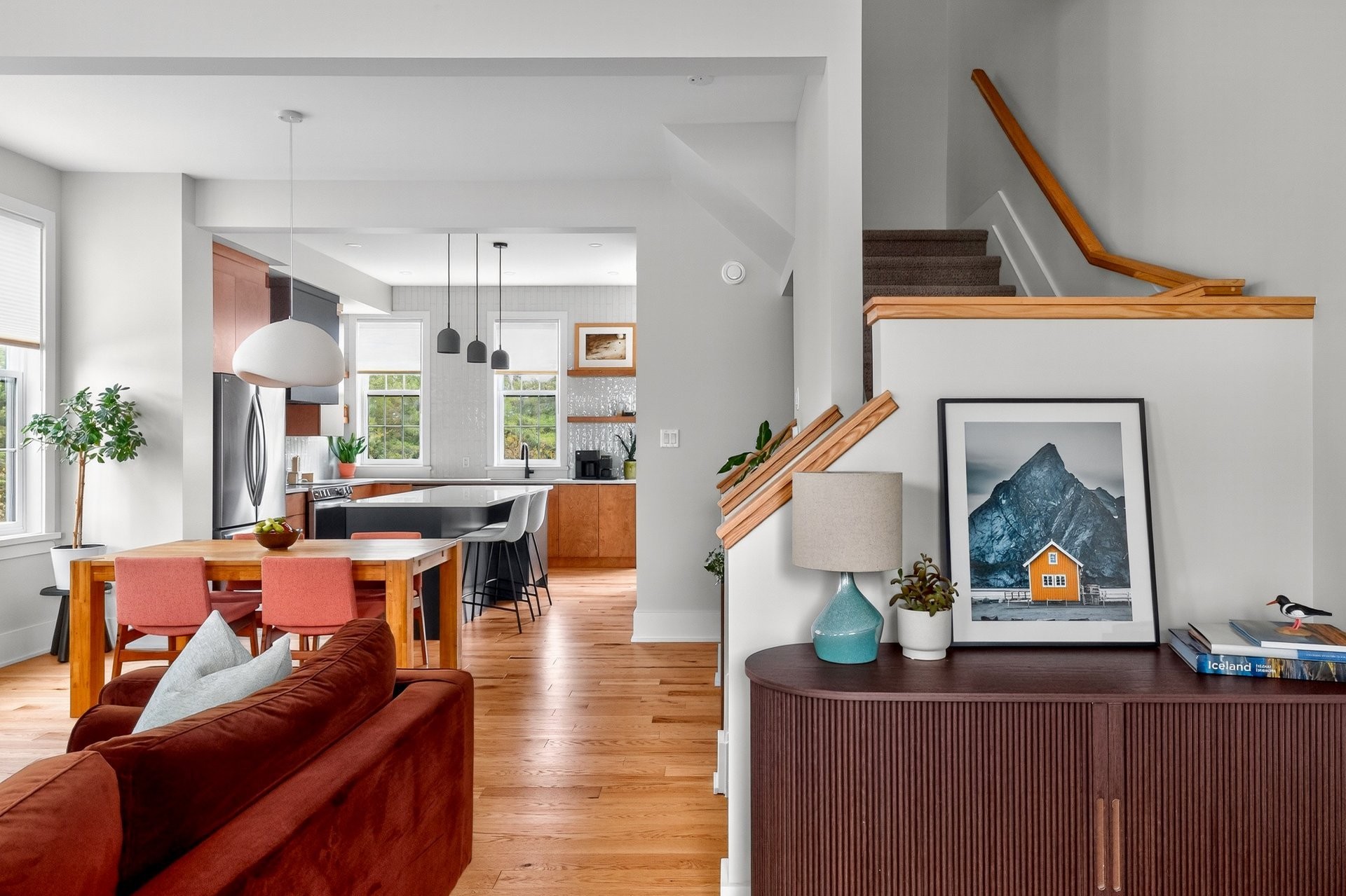 Up to $31,000 in rebates are available for eligible first-time homebuyers! Hendrick Farm - New construction: curate your interiors from a considered palette of exceptional finishes. French Colonial architecture: stacked porches oriented to the Gatineau Hills, with board-and-batten cladding and shiplap detailing for a warm, timeless silhouette. Main level (~1,460 sq ft): open-plan living with 10-ft ceilings and expansive glazing that bathes the space in light. High-spec finishes: wide-plank floors, bespoke cabinetry, quartz worktops, large-format tile, architect-grade fittings and designer lighting.