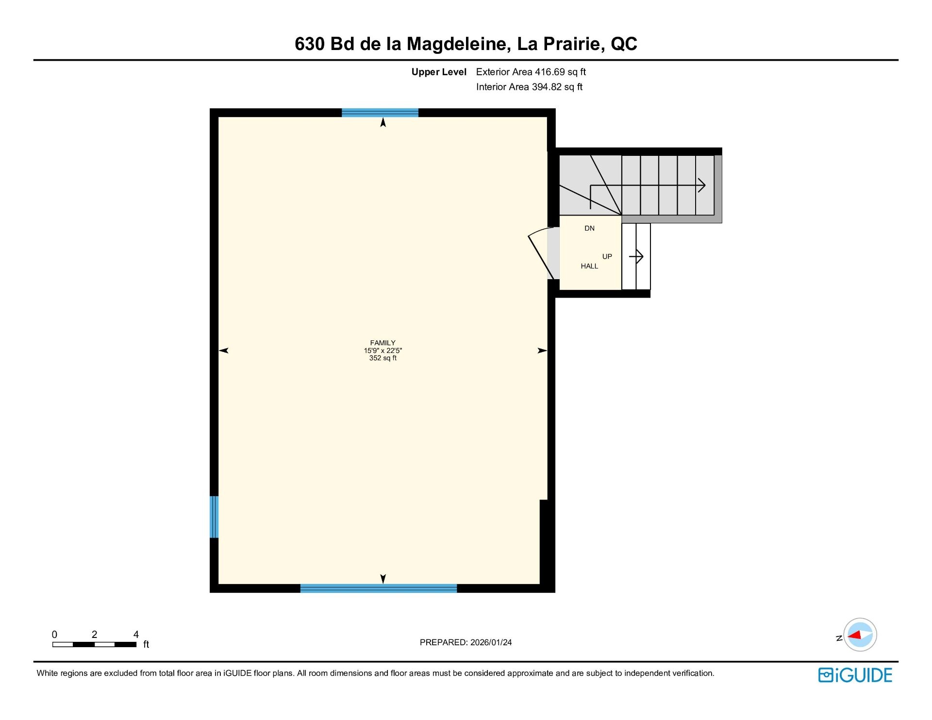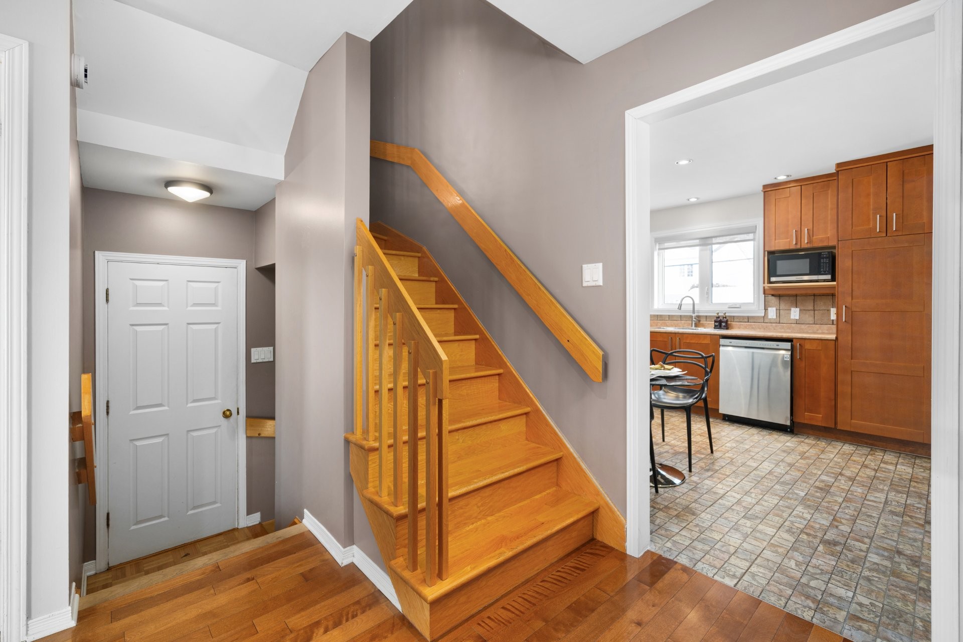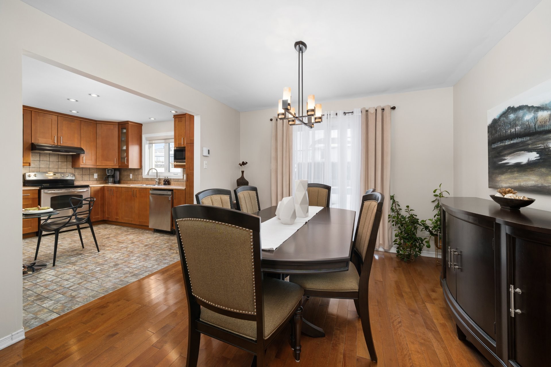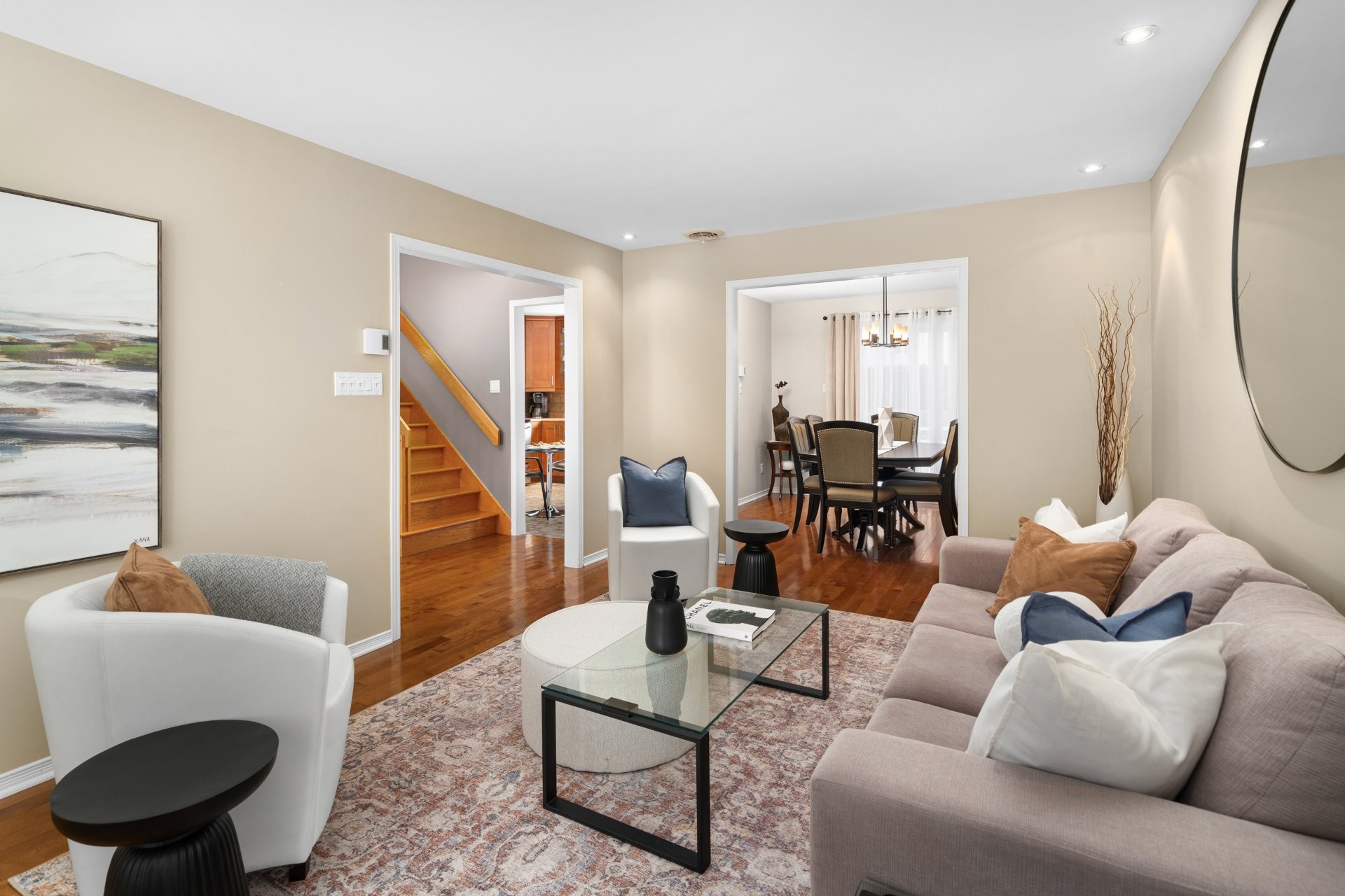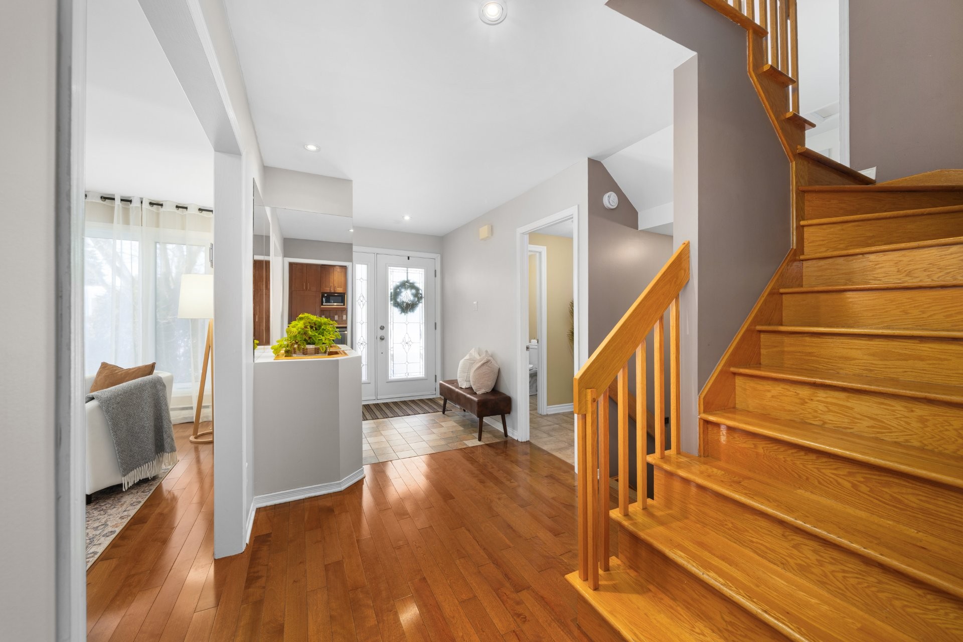 Bright two-storey single-family home located in the established La Magdeleine area of La Prairie. Beautiful open entrance leading to a spacious kitchen offering generous counter space and storage. Thoughtfully designed layout with a raised mezzanine ideal as a family room or home office, while three bedrooms and a full bathroom are located on the upper level. Fully finished basement with an additional bedroom, family room, and second full bathroom. Practical, versatile layout ideal for family living. Residential sector offering quick access to major roadways, daily services, schools, parks, and a short drive to the Quartier DIX30 and the REM