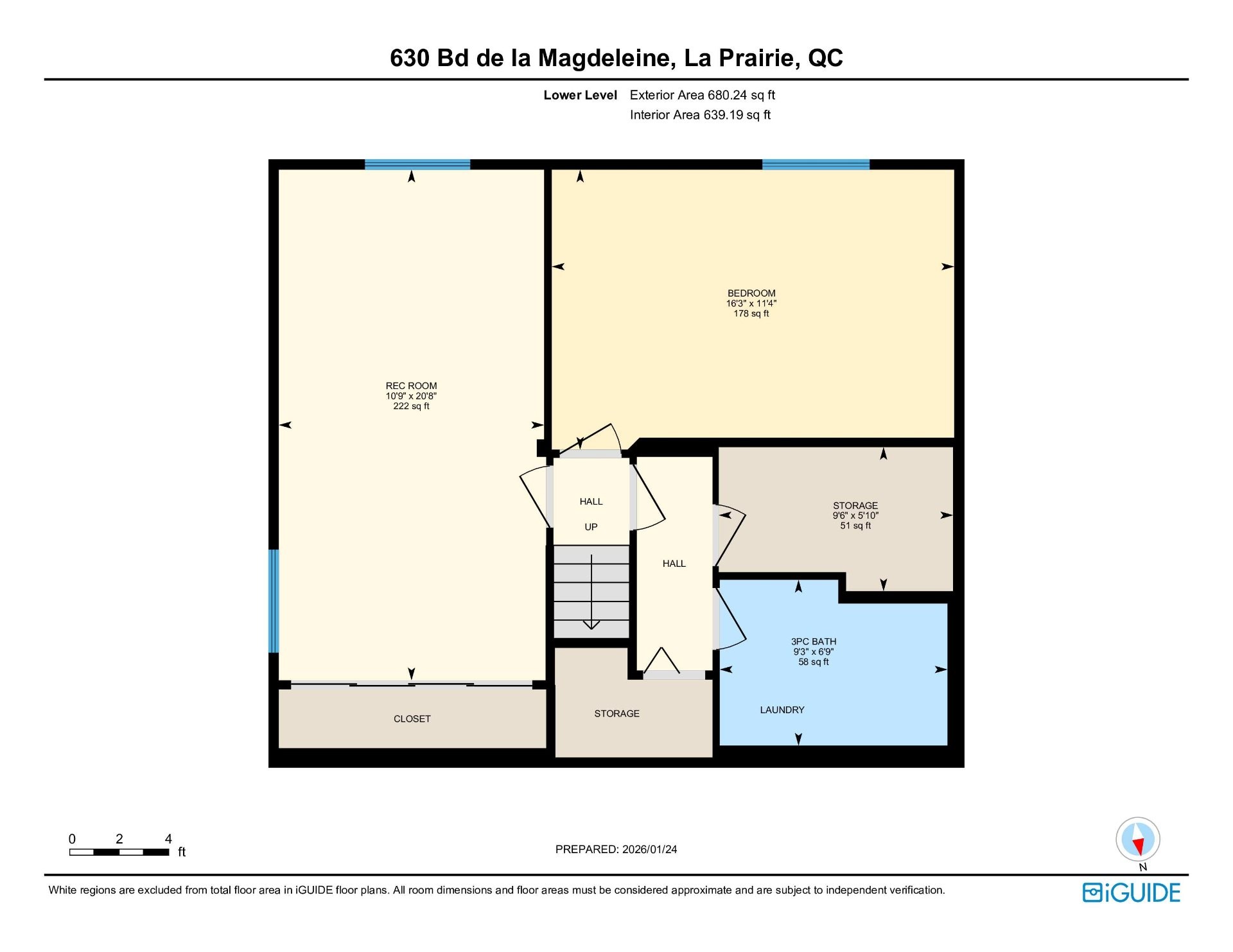 Fully finished basement featuring an additional bedroom, large recreation room, full bathroom, laundry area, and storage.