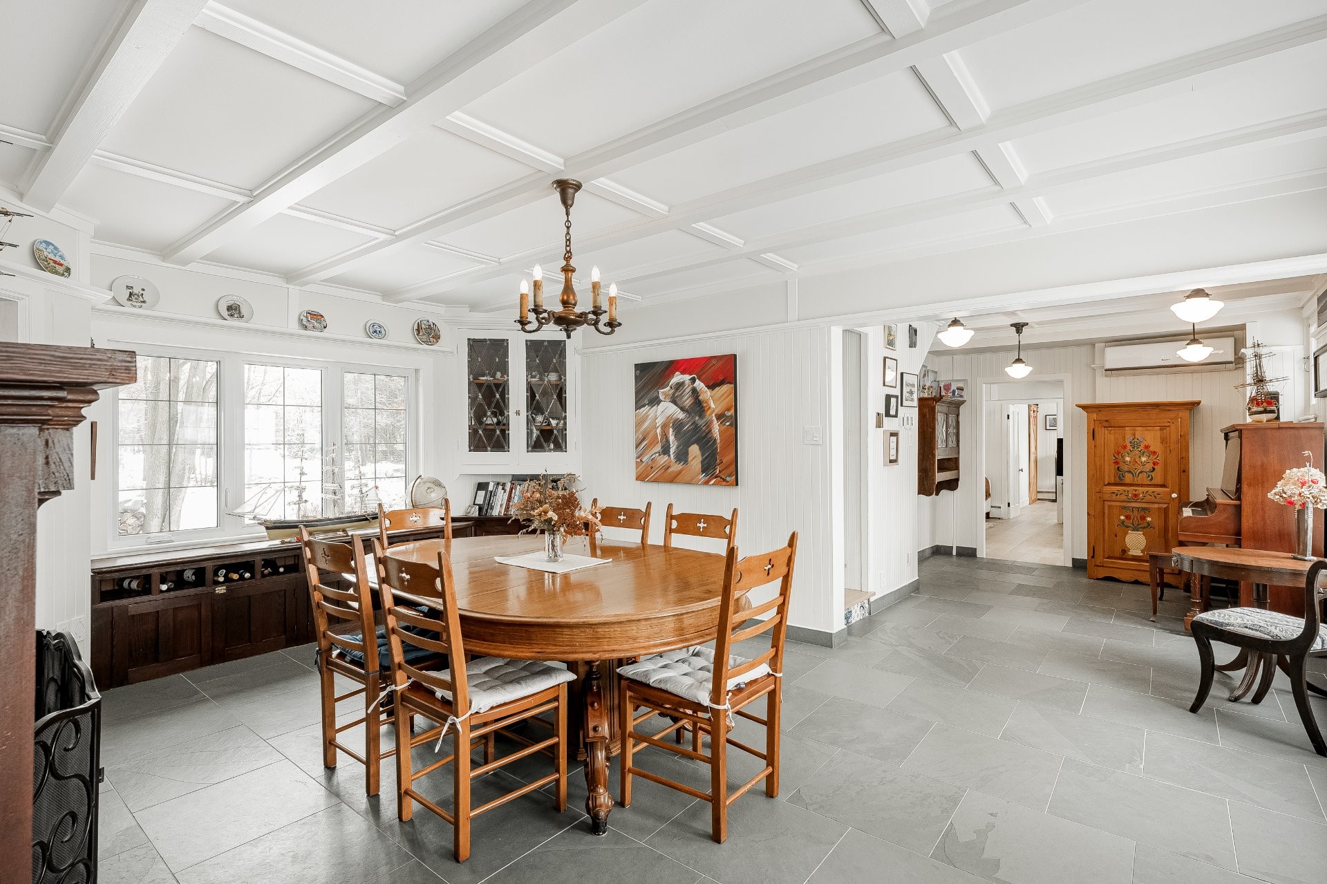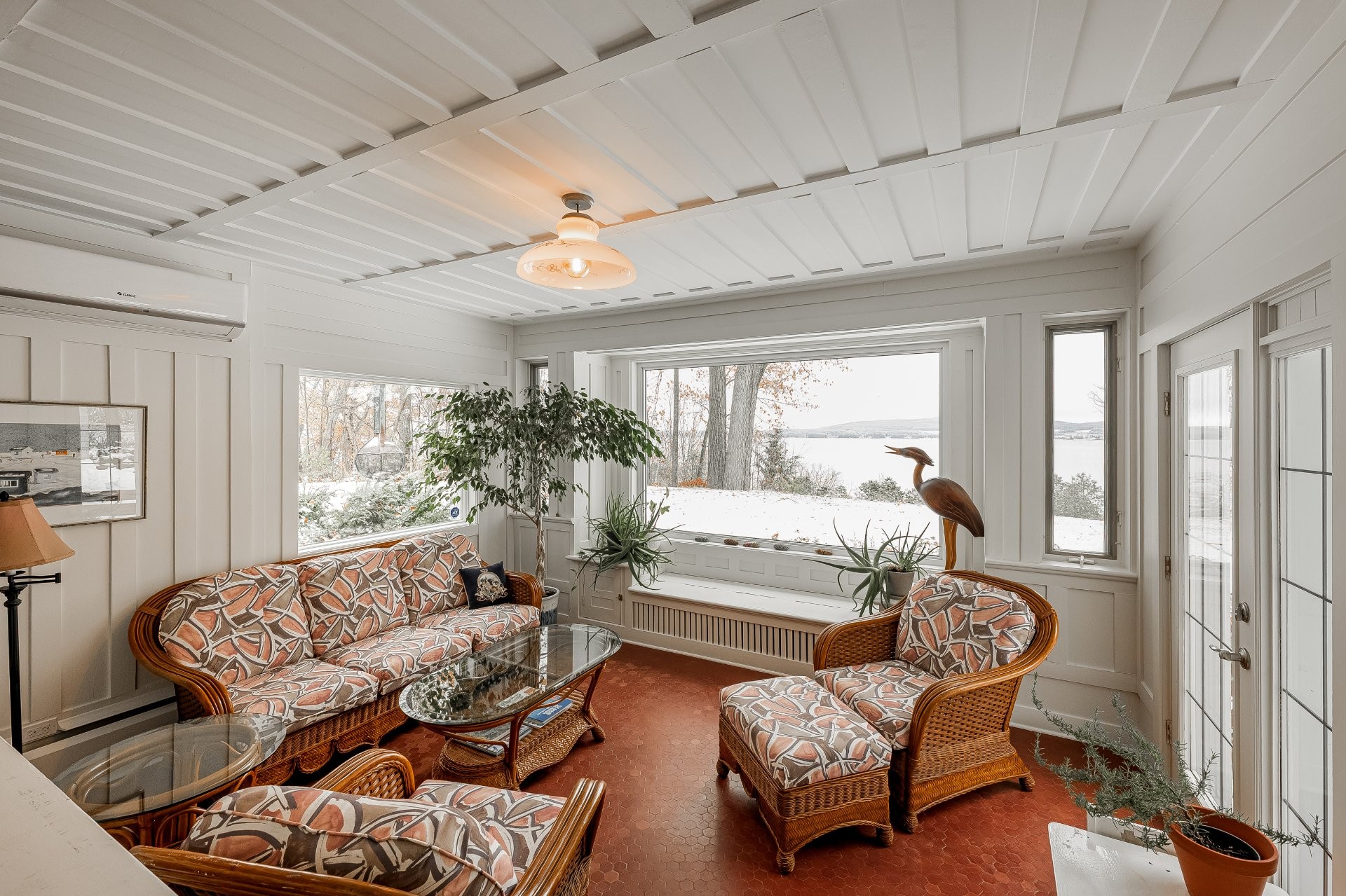 Inside, the spacious layout features four bedrooms and two bathrooms, with heated floors throughout most of the home for year-round warmth and luxury. Large windows frame the river from multiple vantage points, filling the home with natural light and stunning scenery.