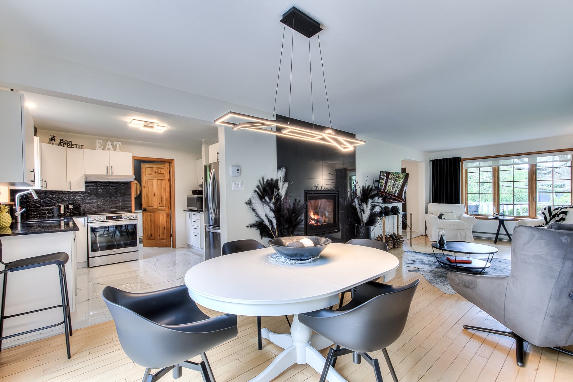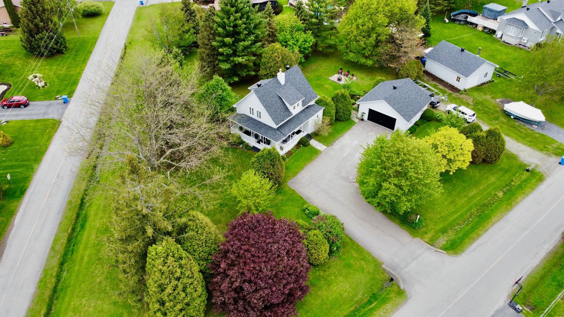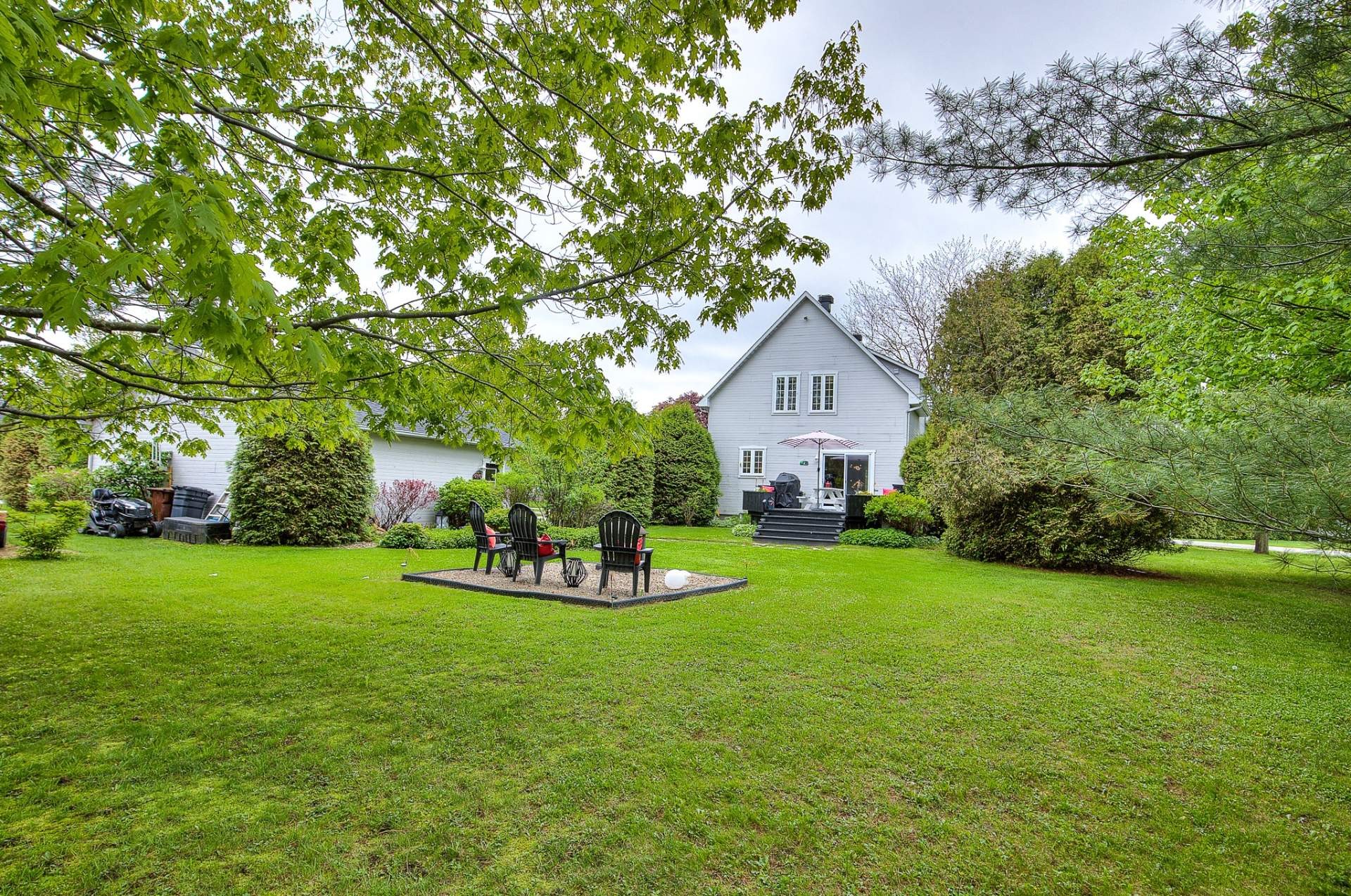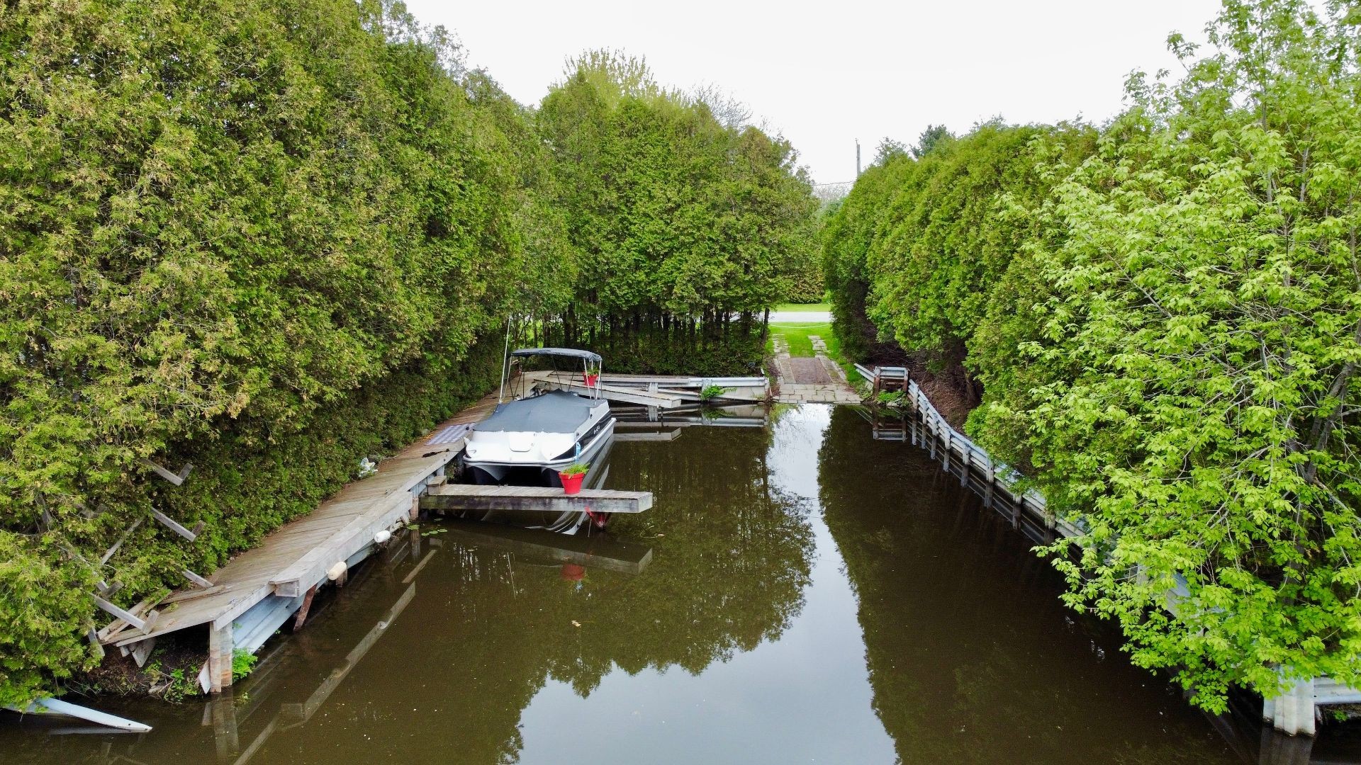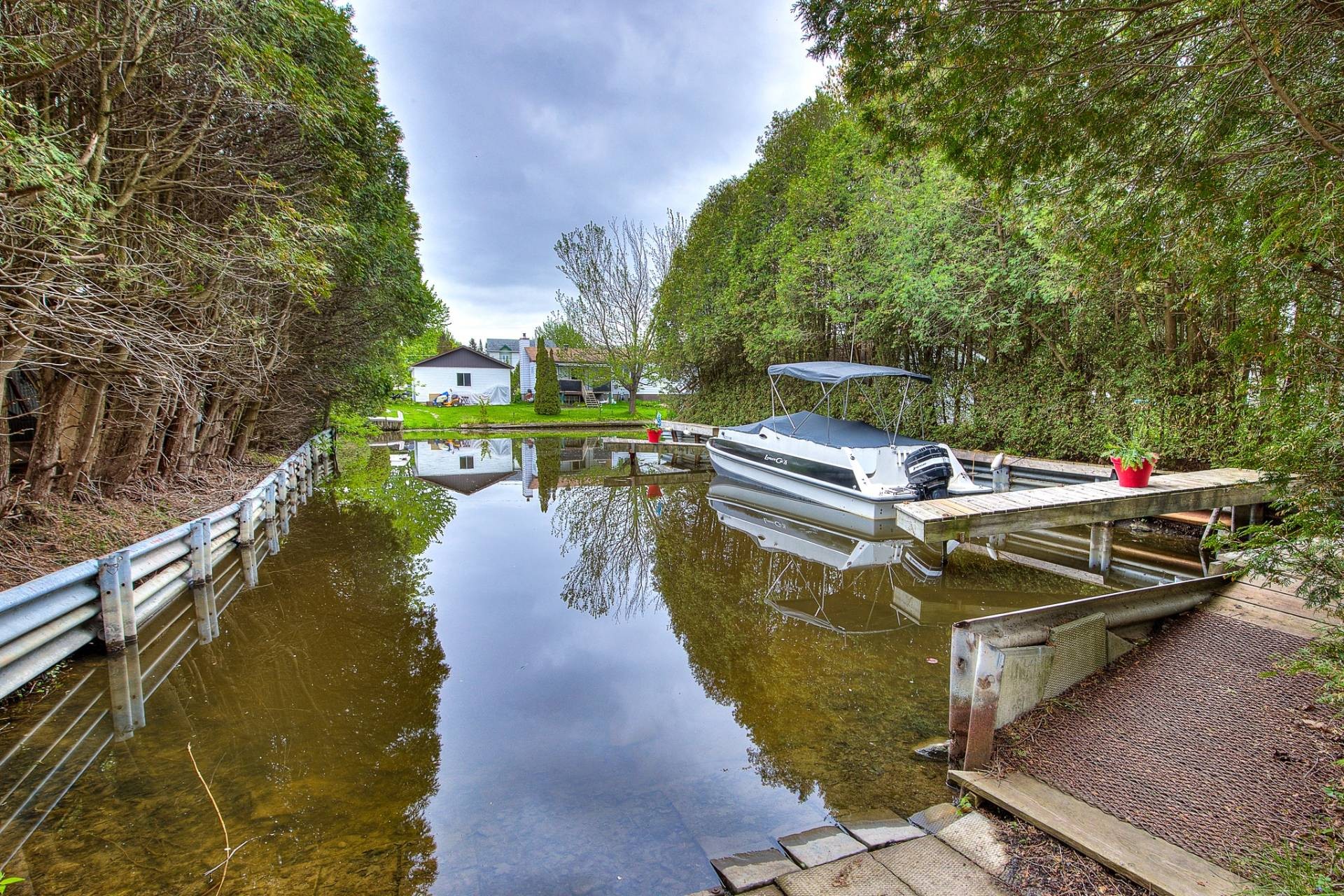 Extensively renovated quintessential country home, surrounded by beautifully landscaped, manicured and mature gardens, nestled along a tree-lined crescent, in a desirable family neighborhood, with its own dock, shared use of a boat launch and marina, and boasting: stylish and contemporary interiors, wood flooring, solid wood doors, a large open concept living and dining area, grand fireplace, fully renovated bathroom and powder room, 2 large bedrooms (both with walk-ins), deck, firepit , and a large double detached garage.