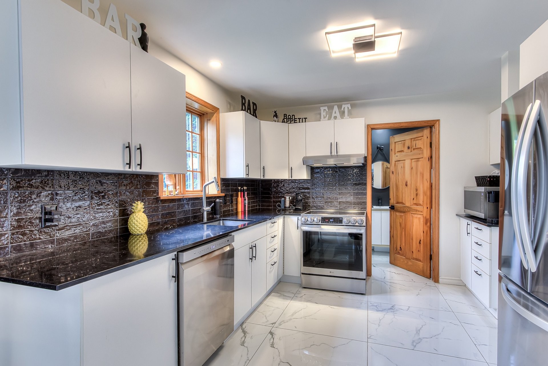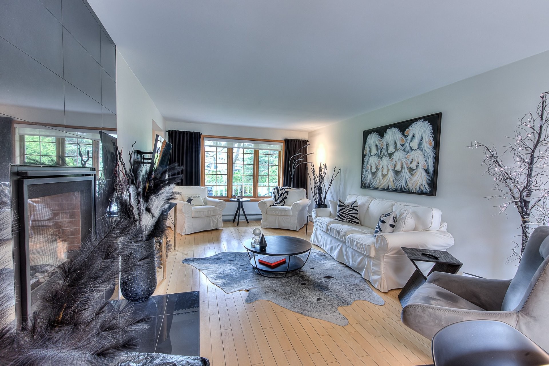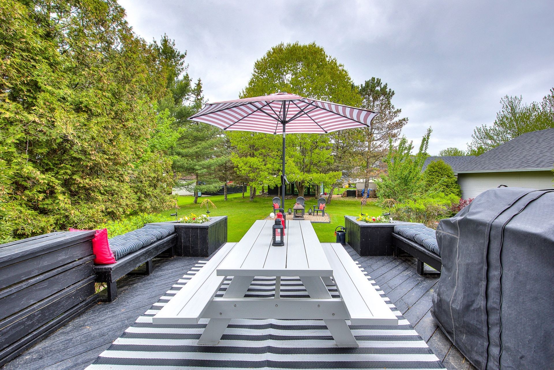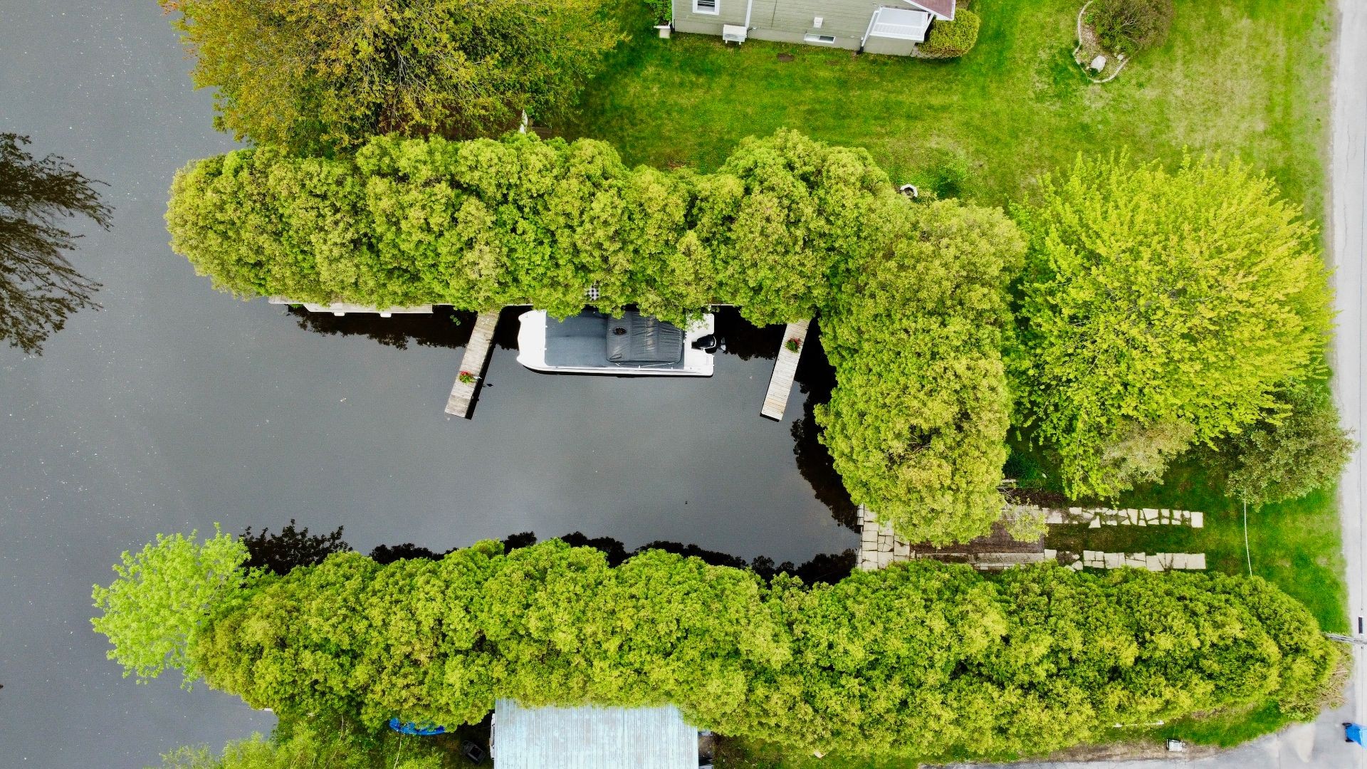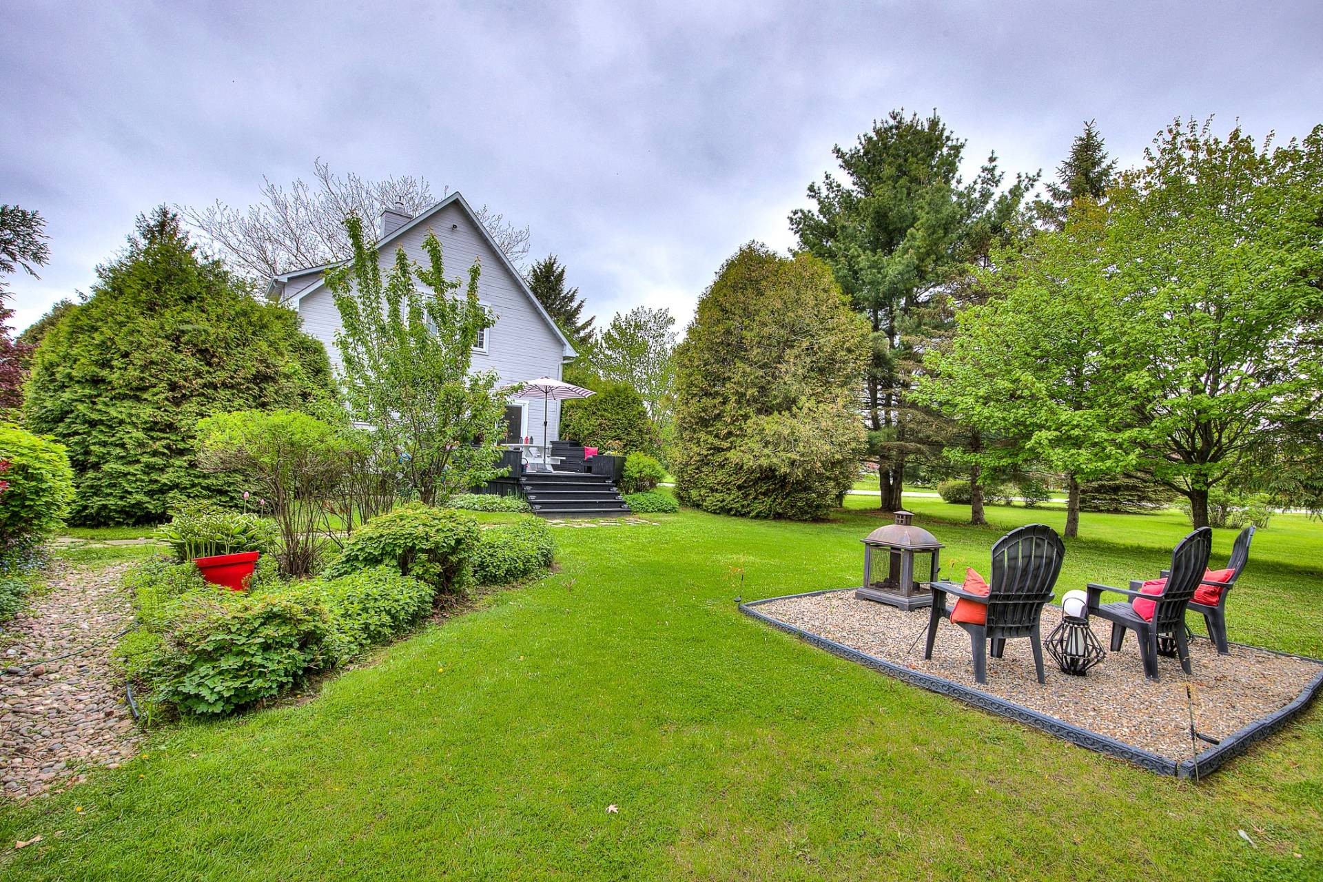 Extensively renovated quintessential country home, surrounded by beautifully landscaped, manicured and mature gardens, nestled along a tree-lined crescent, in a desirable family neighborhood, with its own dock, shared use of a boat launch and marina, and boasting: stylish and contemporary interiors, wood flooring, solid wood doors, a large open concept living and dining area, grand fireplace, fully renovated bathroom and powder room, 2 large bedrooms (both with walk-ins), deck, firepit , and a large double detached garage.