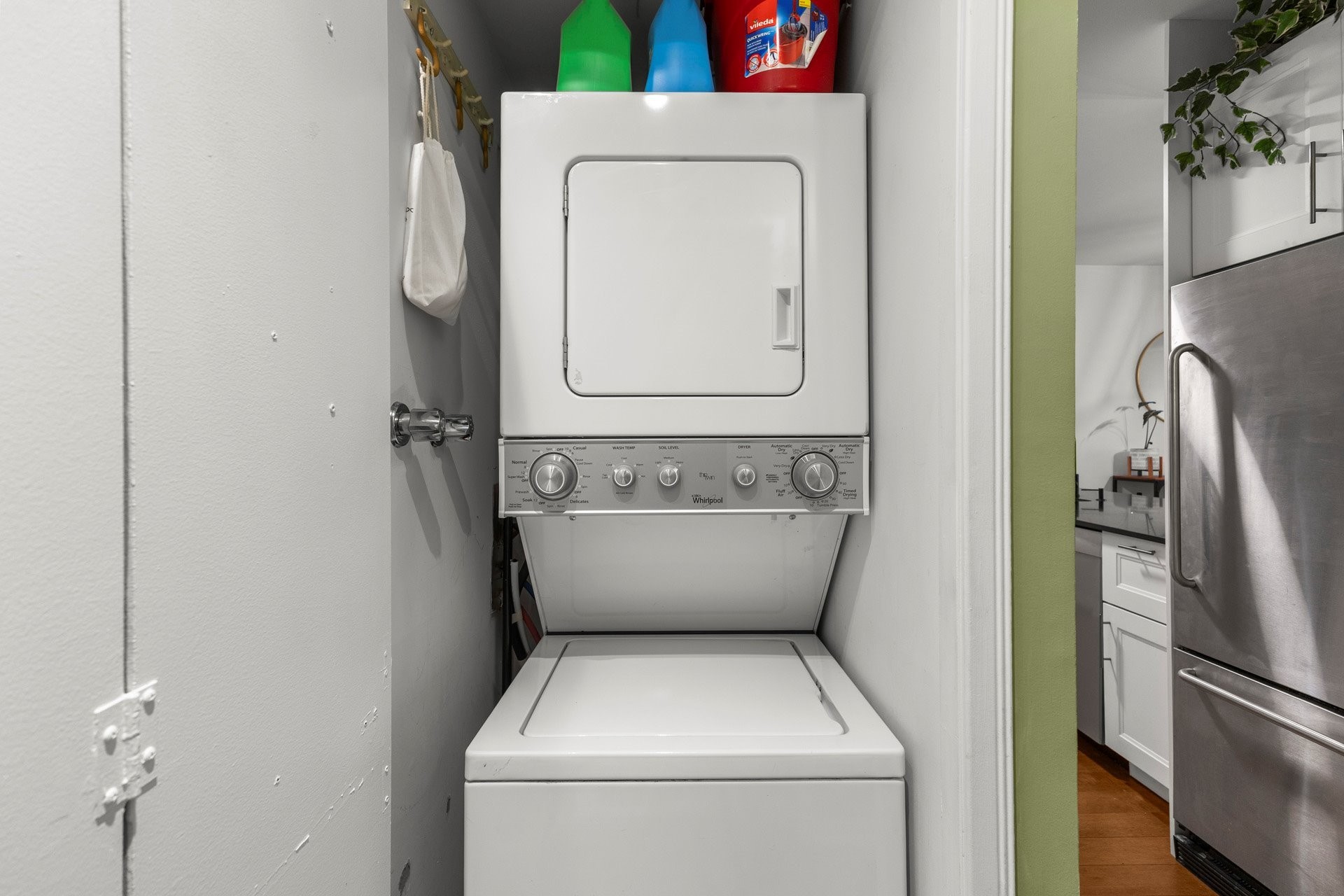 Refrigerator, stove, washer, dryer, blinds and rods.