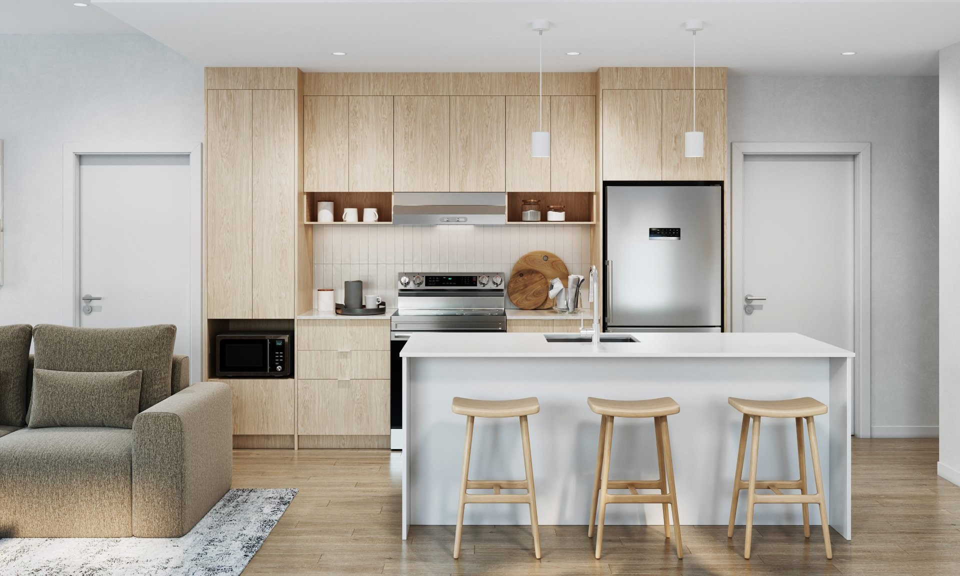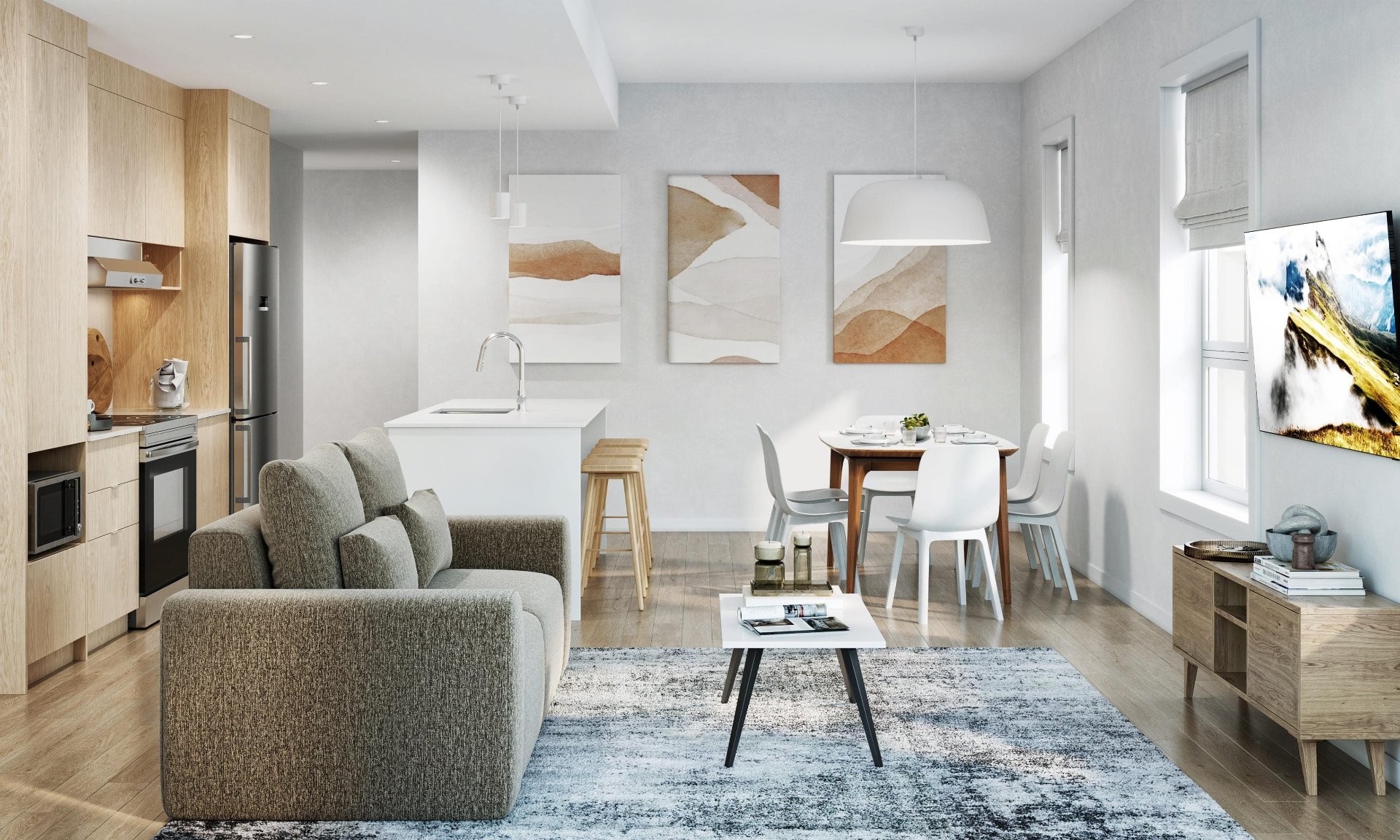 5 stainless steel appliances | Air conditioning | Unlimited Vidéotron 60/10 internet | D-Bolt Salto smart lock (1Valet) | Window coverings (blackout in bedrooms, 1% in living areas and patio door) | 1Valet app | Utilities | Exclusive community room