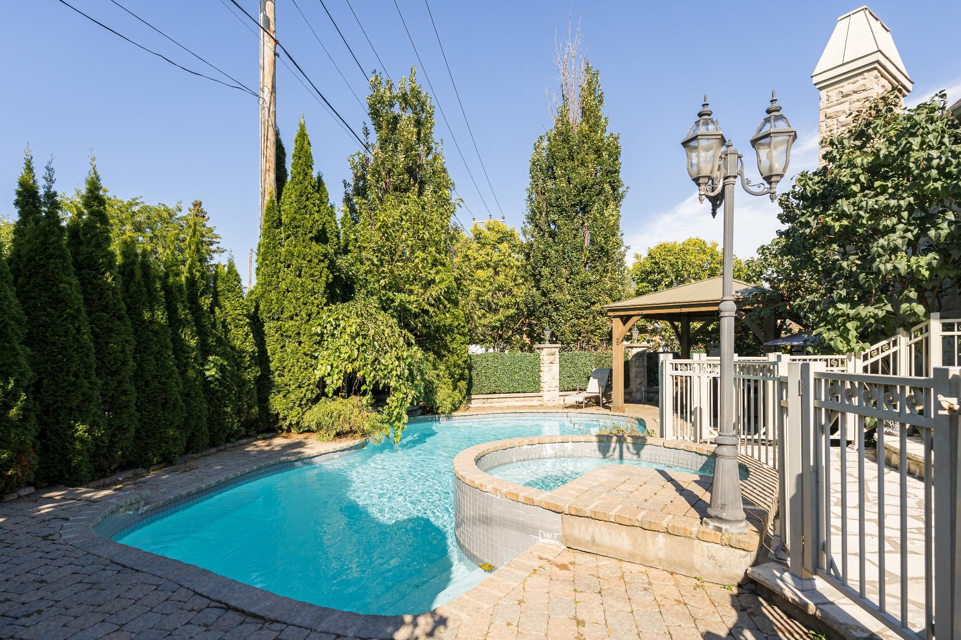 Outdoors, enjoy a private resort like settingPave-uni all throughout backyard with two seating areas, bbq area, dining area, inground salt water concrete custom pool with built-in hot tub and a full bathroom outside.