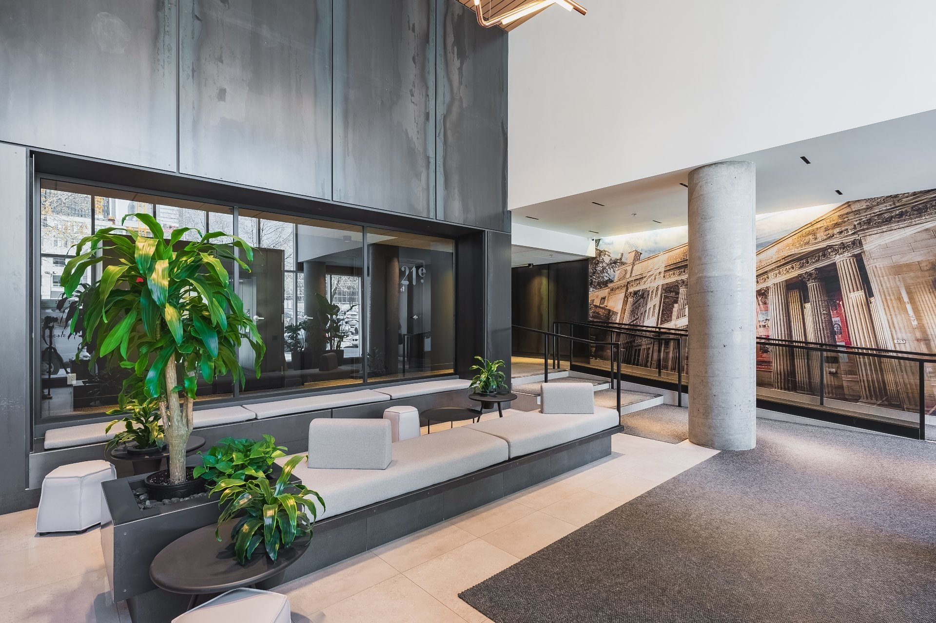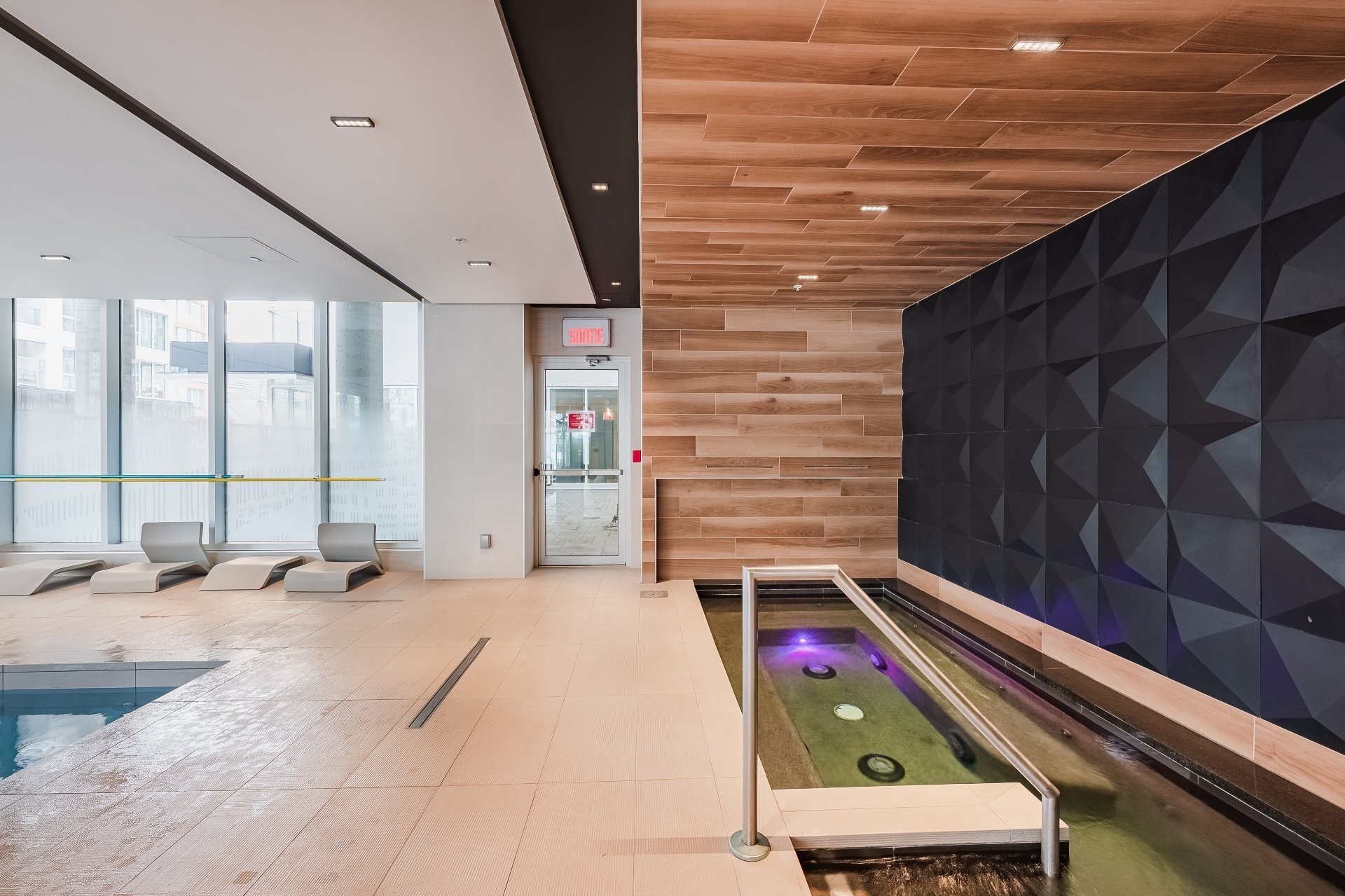 Stunning condominium ideally located between Old Montreal and Griffintown. The building offers upscale amenities, including indoor and outdoor pools, a spa, a sauna, and a fully equipped fitness center. Residents also benefit from an urban lounge designed for both work and relaxation, featuring panoramic city views. A rooftop terrace completes the offering, ideal for summer enjoyment and taking in the city's fireworks.