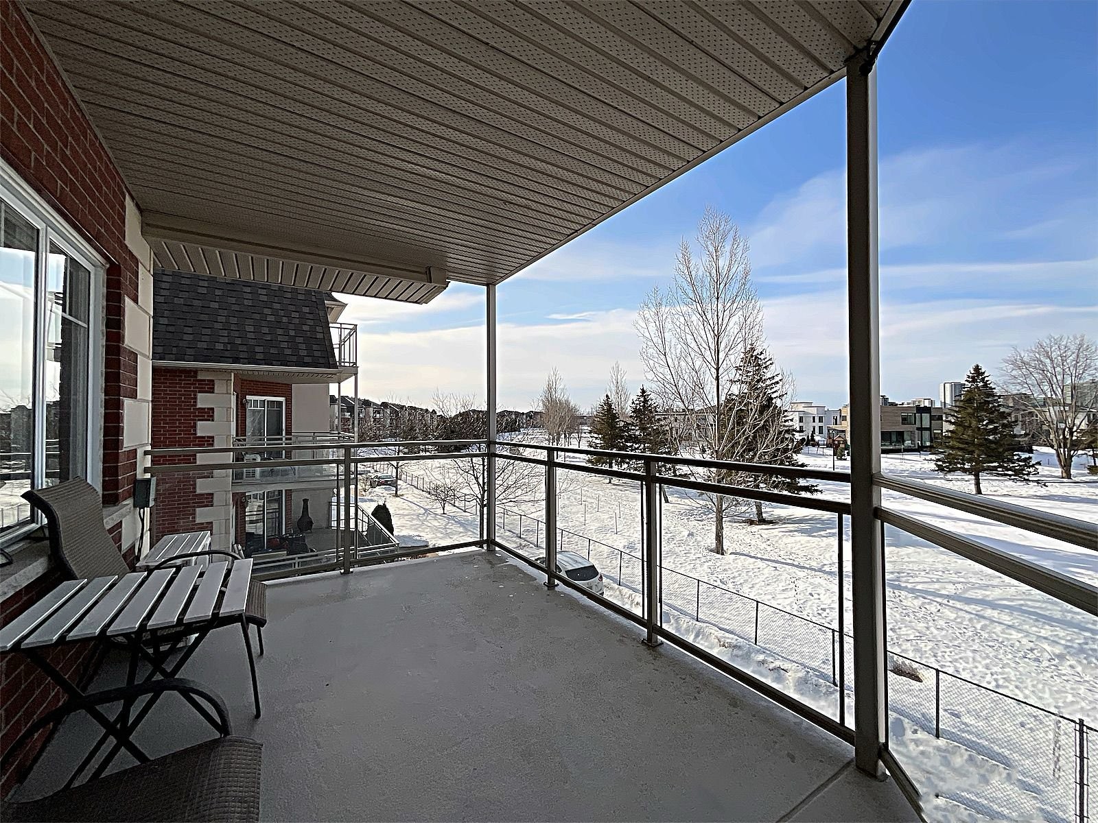 Discover this inviting 2-bedroom condo boasting 1,100 ft² of bright, open living space on the second floor of a contemporary 3-storey building constructed in 2010. Enjoy an efficient open-concept design with a generous living area, welcoming dining space, and updated kitchen full of storage. High 8-foot ceilings enhance the airy feel. Large windows flood the home with natural light, while a spacious balcony offers a perfect spot to unwind. Additional perks include wall-mounted air conditioning, basement storage, and two outdoor parking spots. Backing onto the former golf course ensures ultimate peace--no rear neighbours!