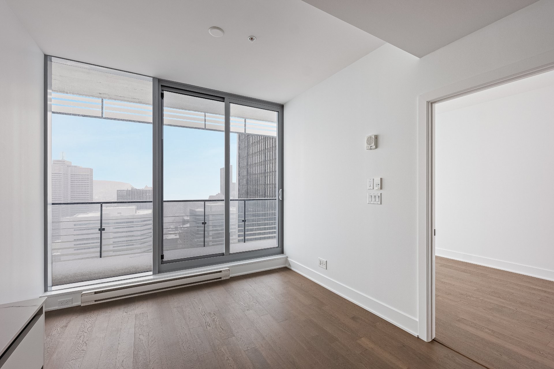 Pied-à-terre on the 49th floor with a view on the Mount Royal, ideally located in the heart of Montreal, close to Square Victoria, connected underground to the metro, the REM, and Place Bonaventure station. Enjoy an exceptional location just steps from gourmet restaurants, the Old Port, and all essential services. The unit features one bedroom, appliances, storage space, and an absolutely stunning view of Mount Royal, as well as a balcony with glass railings. The building offers numerous high-end amenities, including two in-ground swimming pools (indoor and outdoor), a rooftop terrace, a fitness room, and much more.