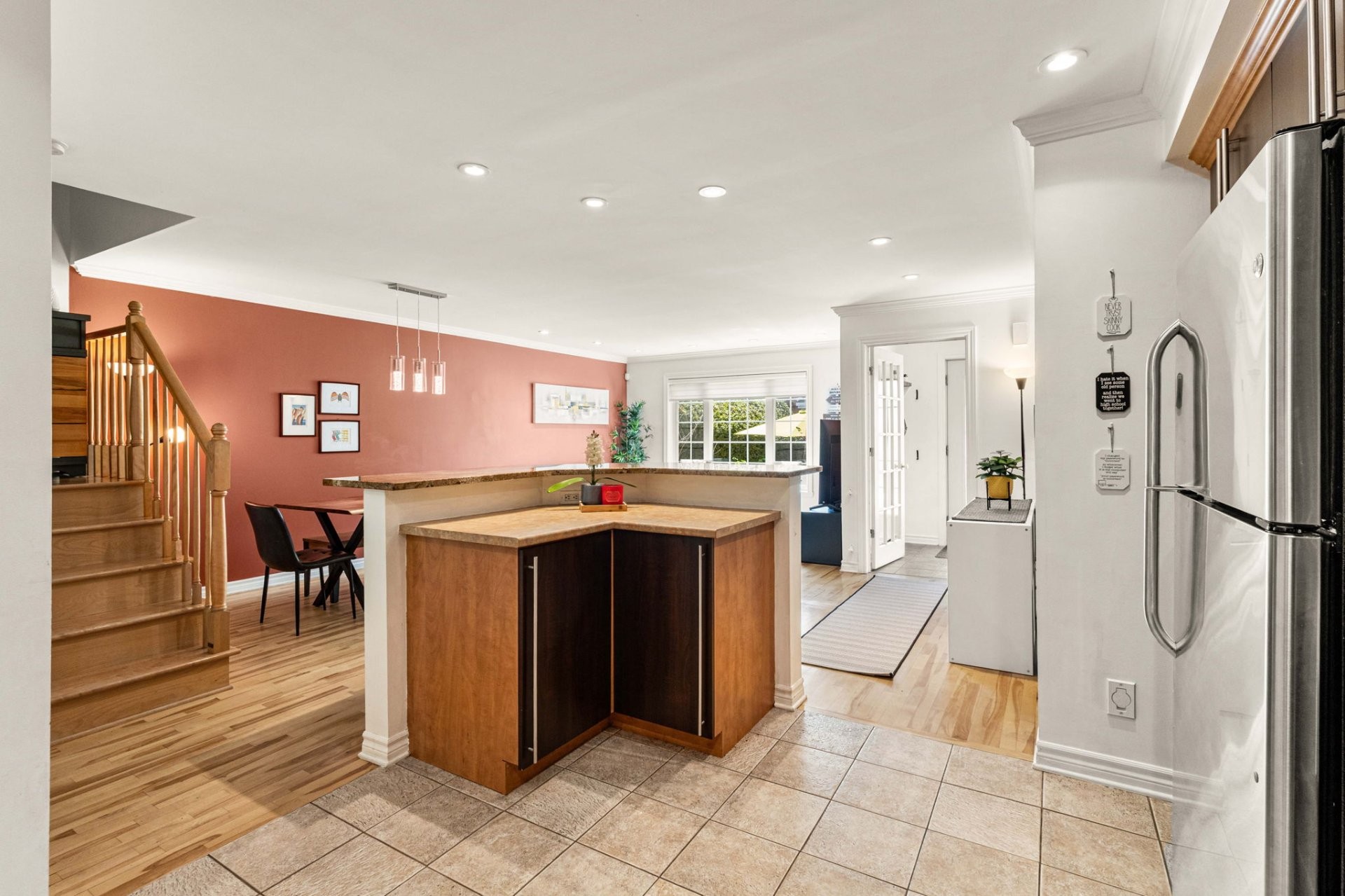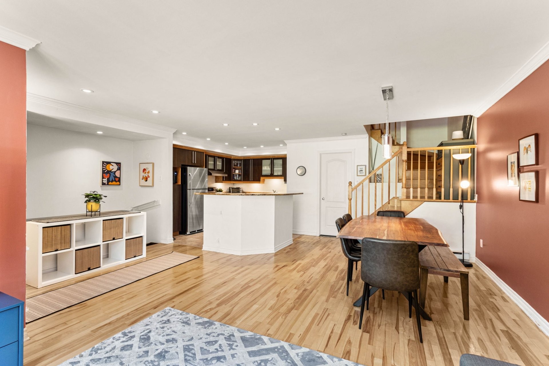 Tucked away on a quiet private area in the sought-after New St. Laurent, this beautifully maintained 3-bedroom, 1+1-bathroom townhouse offers the perfect balance of comfort and style. The bright, open-concept main floor flows effortlessly, creating an inviting space ideal for both everyday living and entertaining. Conveniently situated near major arteries, the home provides quick and easy access to transportation, with public transit just steps away. Enjoy the outdoors with Parc Dr Bernard Paquet and Parc Bois-Franc only minutes away--featuring a dog park, playground, splash pad, basketball courts, outdoor gym, and scenic walking trails.