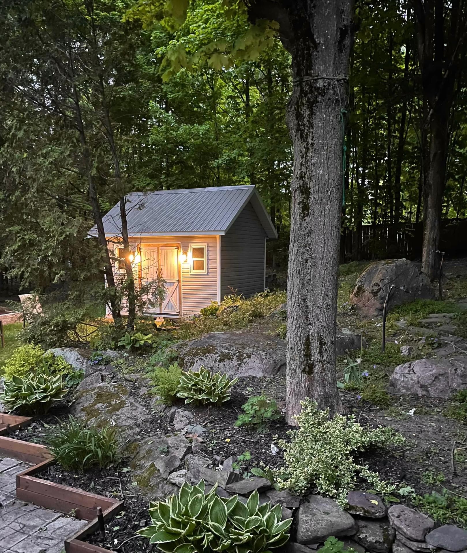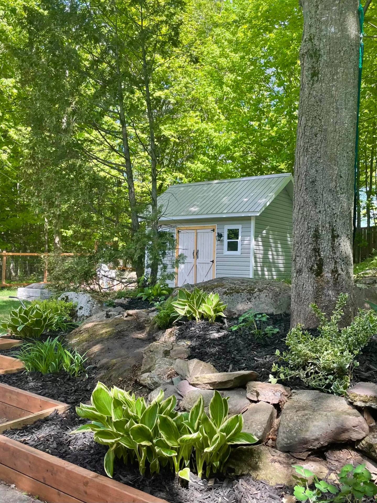 - Landscaping Fenced yard, Land / Yard lined with hedges, Landscape