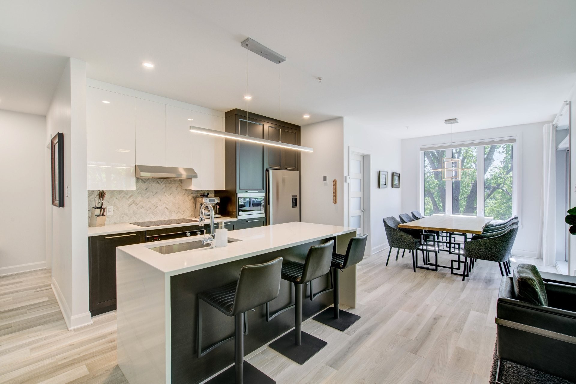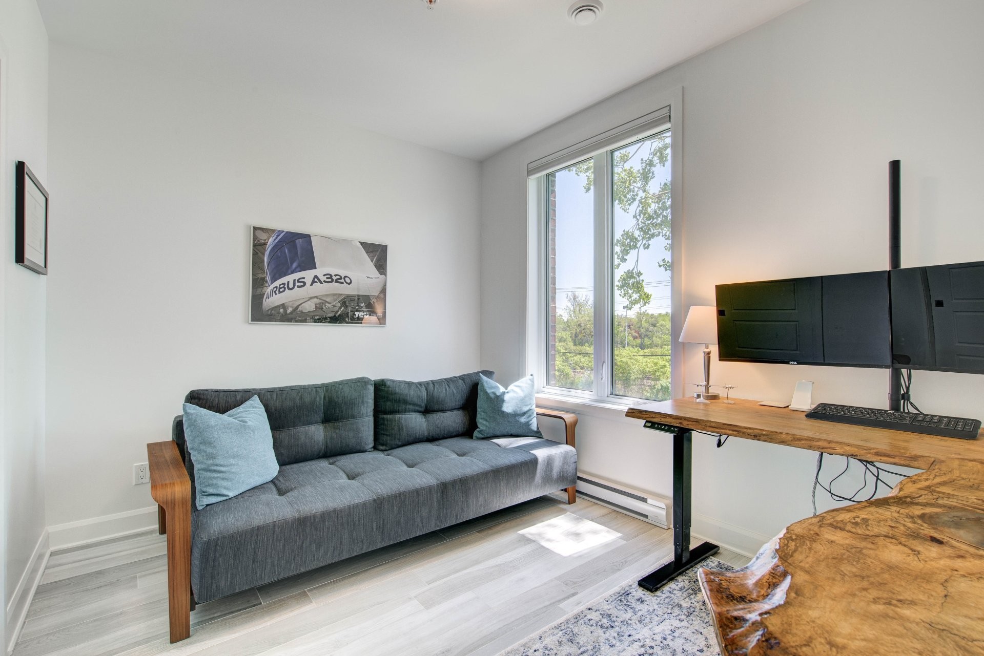 Discover modern elegance in this stunning 2-bedroom, 2-bathroom turn-key condo, built in 2019. South-facing corner unit located in Beacon Hill. Filled with natural light and encased by mature trees. Impeccably designed and upgraded with heated floors throughout, a high-end kitchen featuring top-tier appliances and a sleek waterfall island, custom motorized blinds, and sophisticated accents. Perfect for those downsizing or searching for effortless living. Ideally located, 5 min walk to Beaconsfield train station, Bord-Du-Lac Lakshore and fantastic amenities and services.
