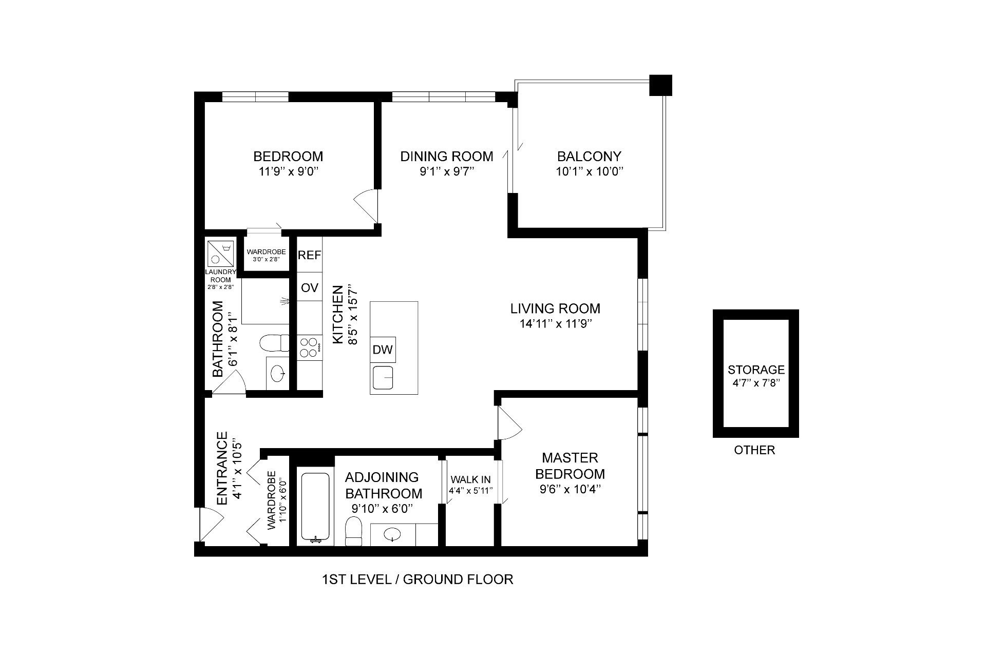 | Bathroom | 2nd floor | 8.1x6.1 P | Ceramic tiles | stackable washer dryer |