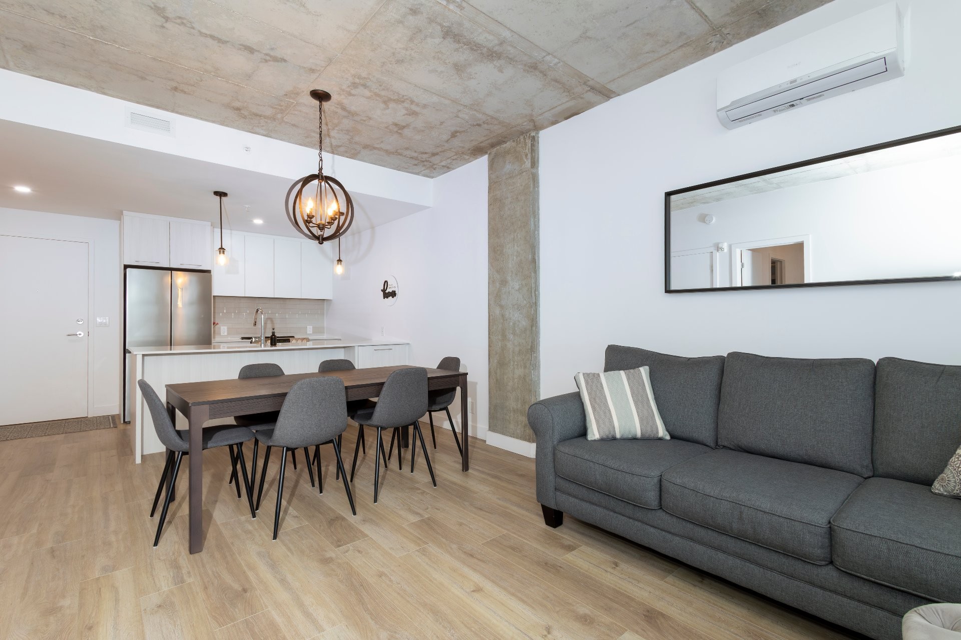 Discover luxury living at Kubik Condos, a stunning development in the heart of Pointe Claire. Built in 2020, this furnished 1 bedroom condo features a spacious layout including a beautiful modern kitchen with quartz counters, stainless steel appliances and a breakfast bar that seats 2. Building amenities include a well-equipped gym, rooftop terrace with heated pool, 2 BBQ's and a beautiful view of Lac-St Louis. Unit includes 1 indoor parking and a storage locker. Ideally situated near the Gare Valois train station, with quick access to downtown Montreal, as well as nearby shopping, schools, parks, and all essential services.