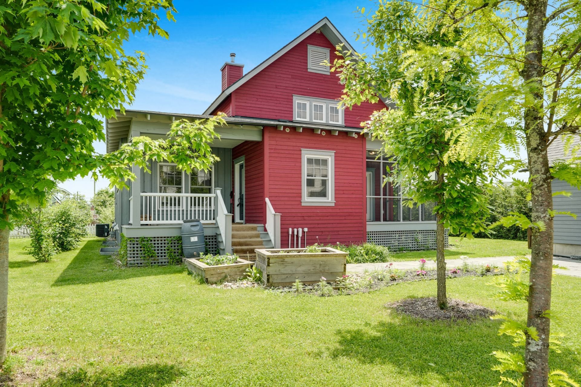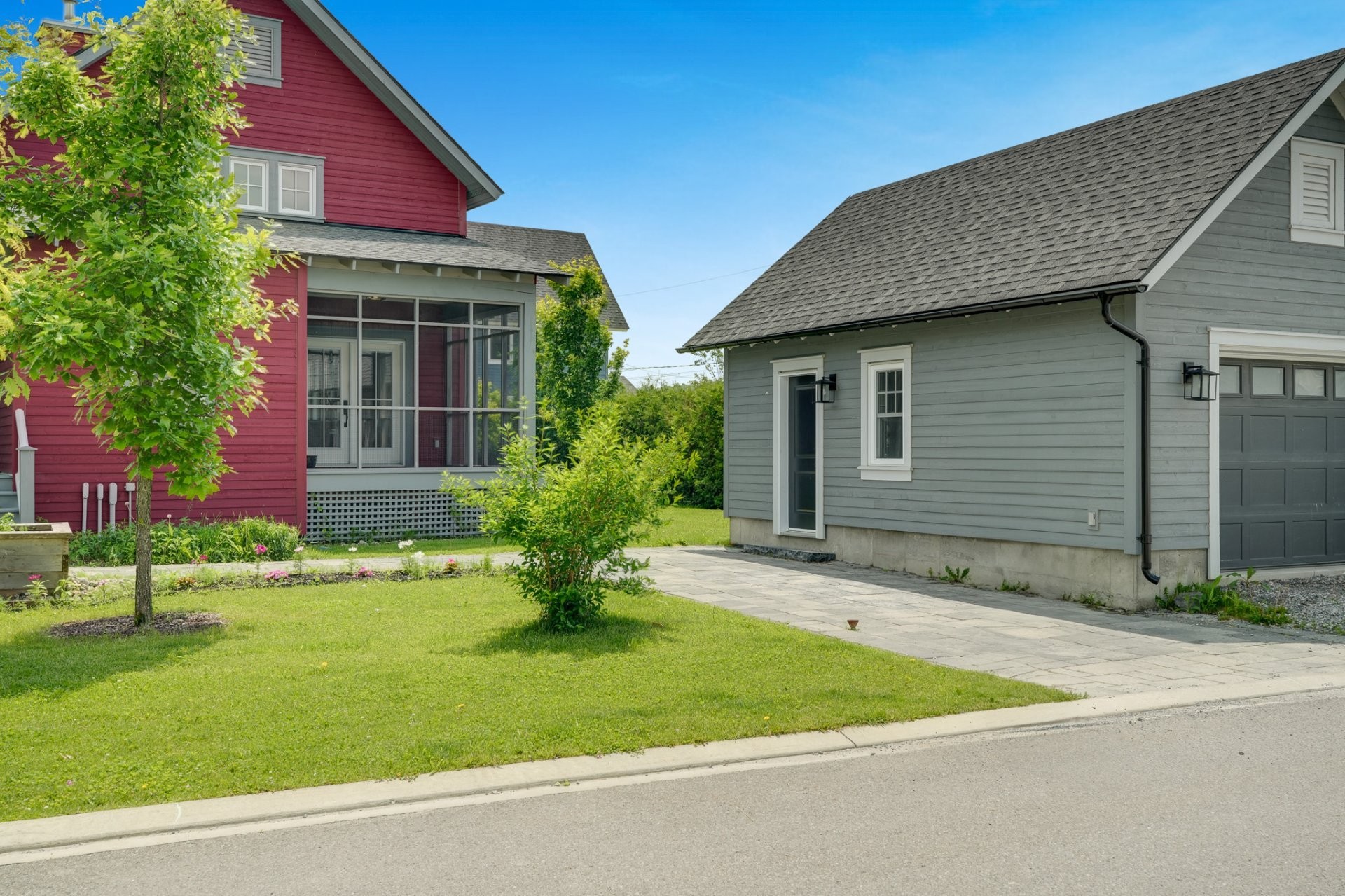 An exceptional opportunity to own a Hendrick Farm bungalow, rarely available and beautifully appointed. This sunlit, park-facing residence features soaring 17-foot cathedral ceilings, exposed pine beams and a wood-burning fireplace anchoring its airy open-plan design. Expansive windows frame serene views and three covered porches invite outdoor living in every season. The main level offers two well-proportioned bedrooms with shared bath and powder room, while the finished lower level provides generous additional space. Nestled on a scenic lot in a charming pocket neighbourhood, the home lies only steps from the shops and cafés of Old Chelsea!