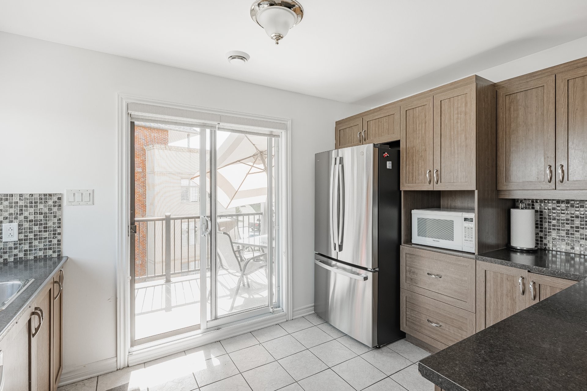 The living room is centered around a cozy gas fireplace, ideal for relaxing evenings at home. The kitchen opens directly to a private balcony, offering an inviting outdoor space for dining or leisure. A private garage adds both comfort and security, making day-to-day living even easier.