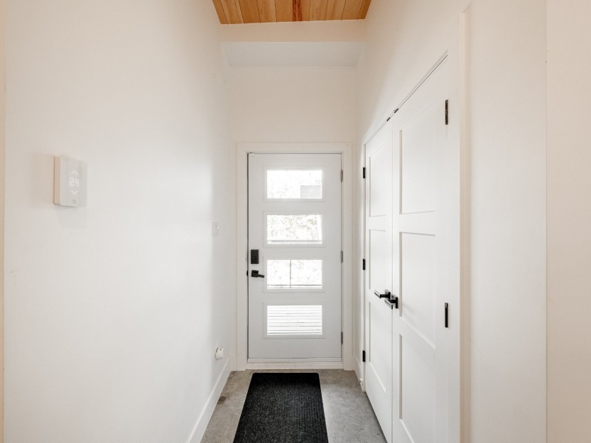 + 2 bedrooms + 1 bathroom+ Interior area: approx. 960 sq. ft.+ Contemporary design and high-end finishes (quartz countertops, heated concrete floors)+ Large windows offering abundant natural light+ Large wooden deck with outdoor jacuzzi+ Electric car charging station+ Can be customized to suit your tastes and needs