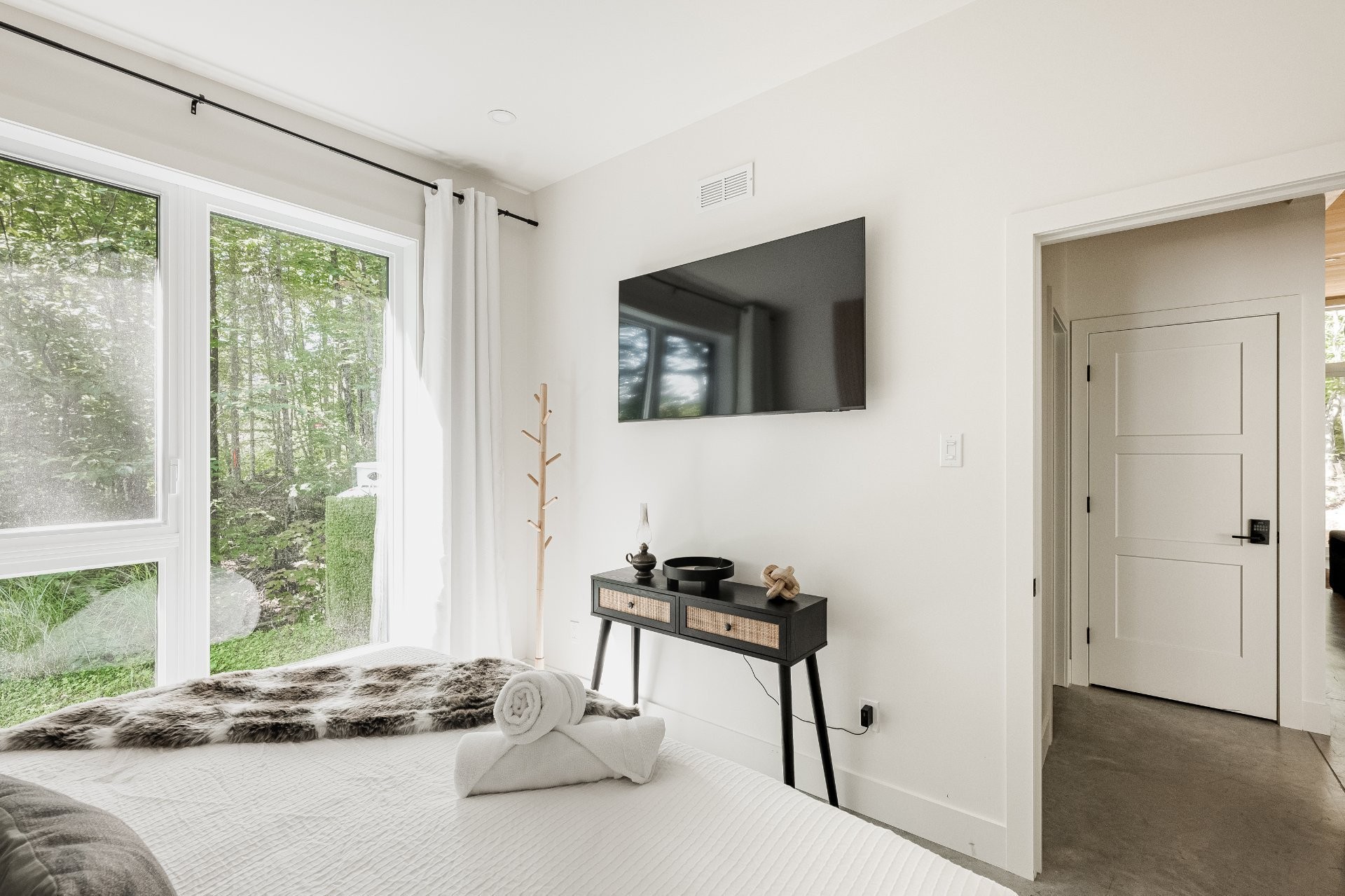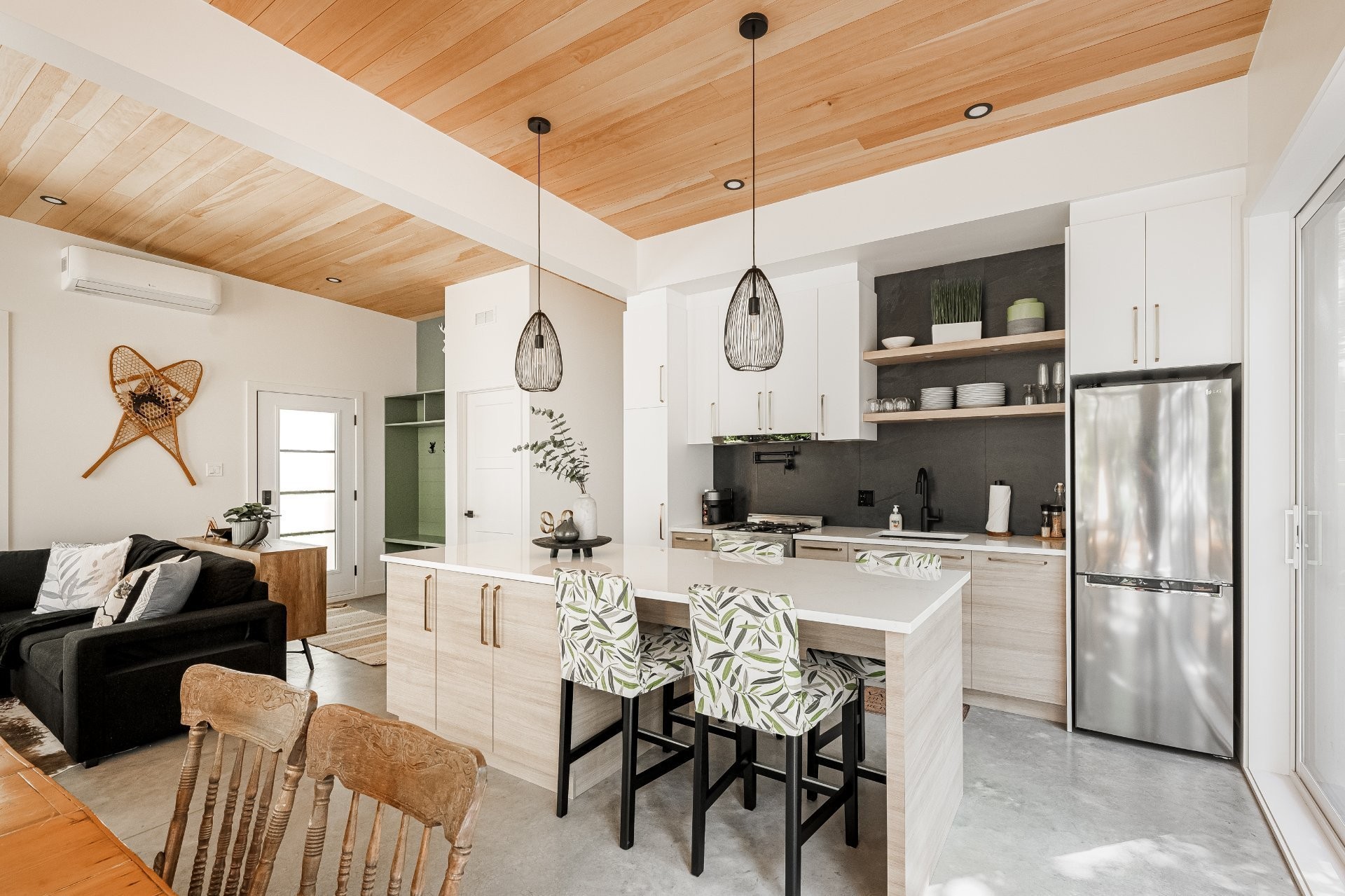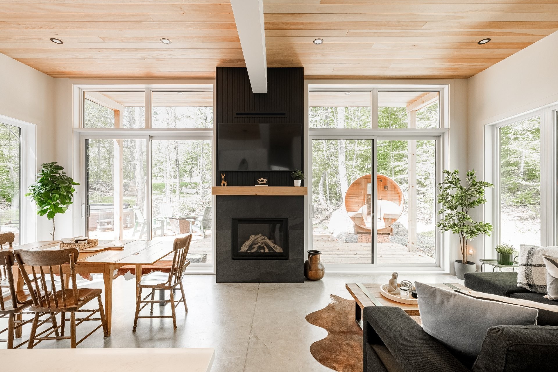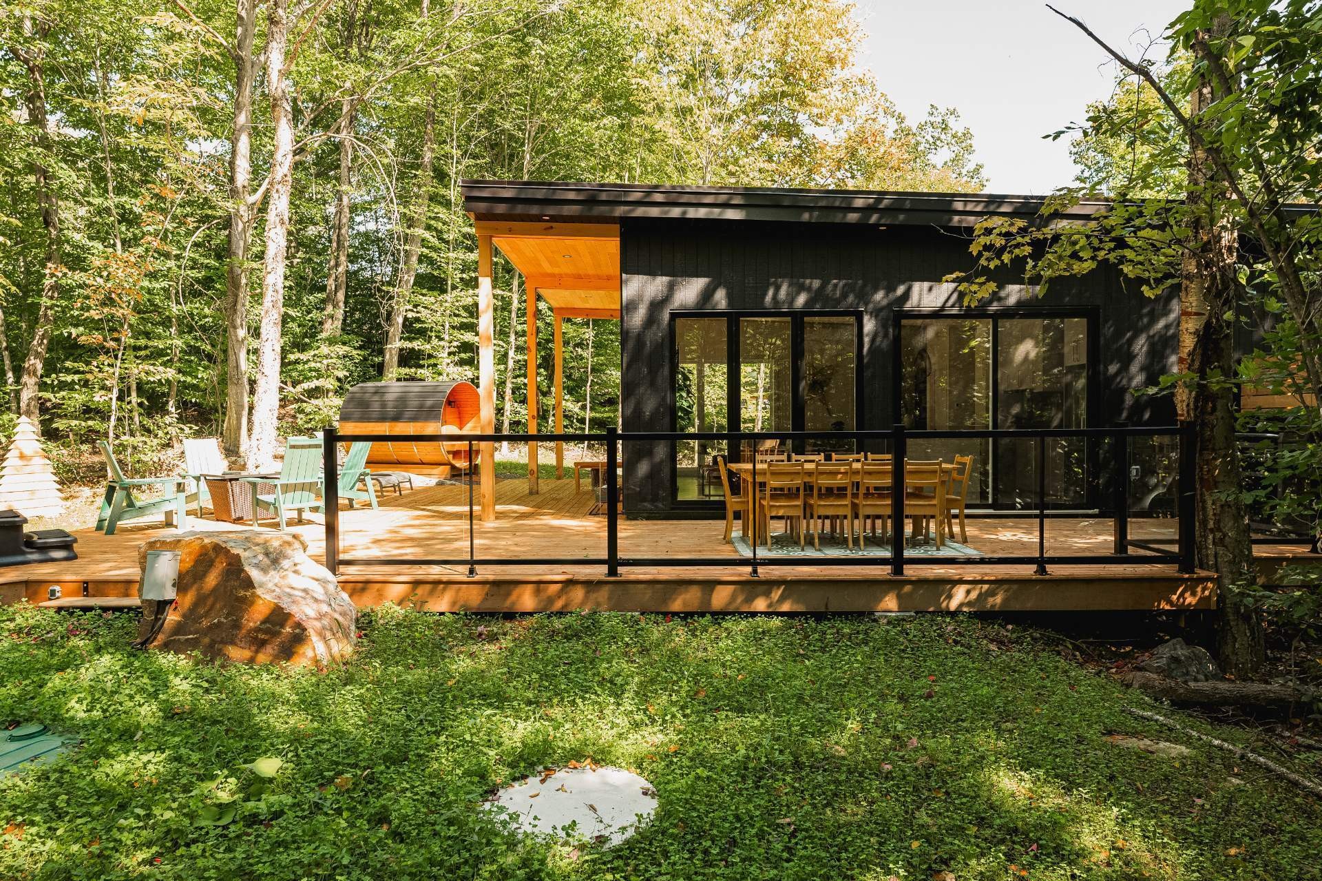 SHORT-TERM RENTALS PERMITTED! Stunning luxury cottage with 2 bedrooms and 1 bathroom, located just 12 minutes from Mont-Tremblant. Modern design, high-end materials, heated floors, large terrace with jacuzzi. A perfect balance between comfort, nature, and return on investment. A turnkey investment combining pleasure and profitability, in the heart of the ChicShack estate!
