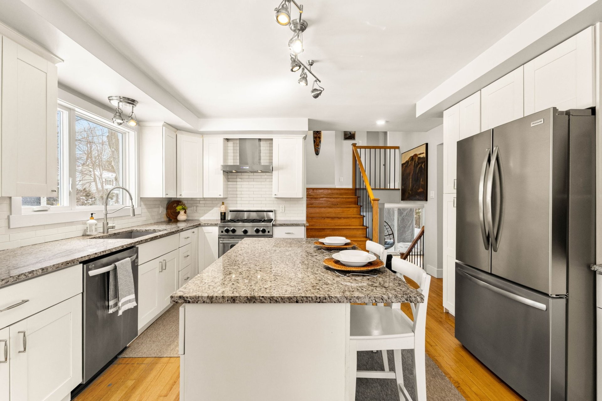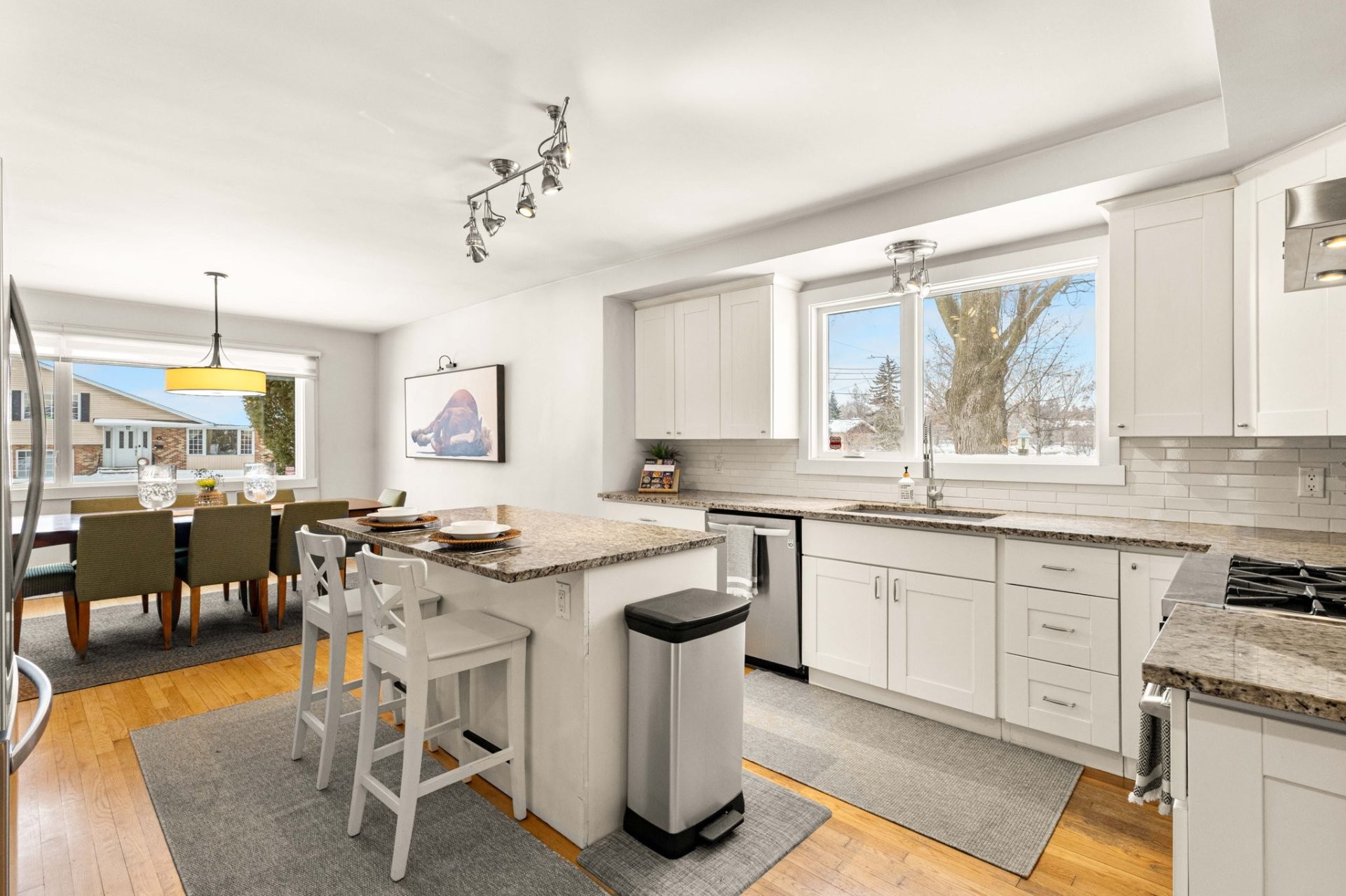 This bright and generously appointed split-level home unfolds gracefully across four well-designed levels, offering space and flexibility for modern living. Natural light pours in through the oversized windows, highlighting the home's thoughtful layout and well-proportioned rooms. Each level flows into the next, creating a sense of openness while still providing distinct areas for living, entertaining, working and relaxing. An ideal home for growing or multigenerational families! Ideally located close to all amenities, this home is just minutes away from shopping, supermarkets, great French and English schools, parks, public transit, train stations (REM and Beaconsfield train station), hospitals, medical clinics and major routes, making everyday living convenient and efficient!