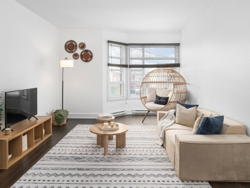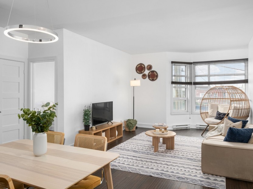 Condo rénové 1 chambre, 1 salle de bain, entièrement meublé, disponible immédiatement à Lachine! Inclus: électroménagers, lit, canapé-lit, t...