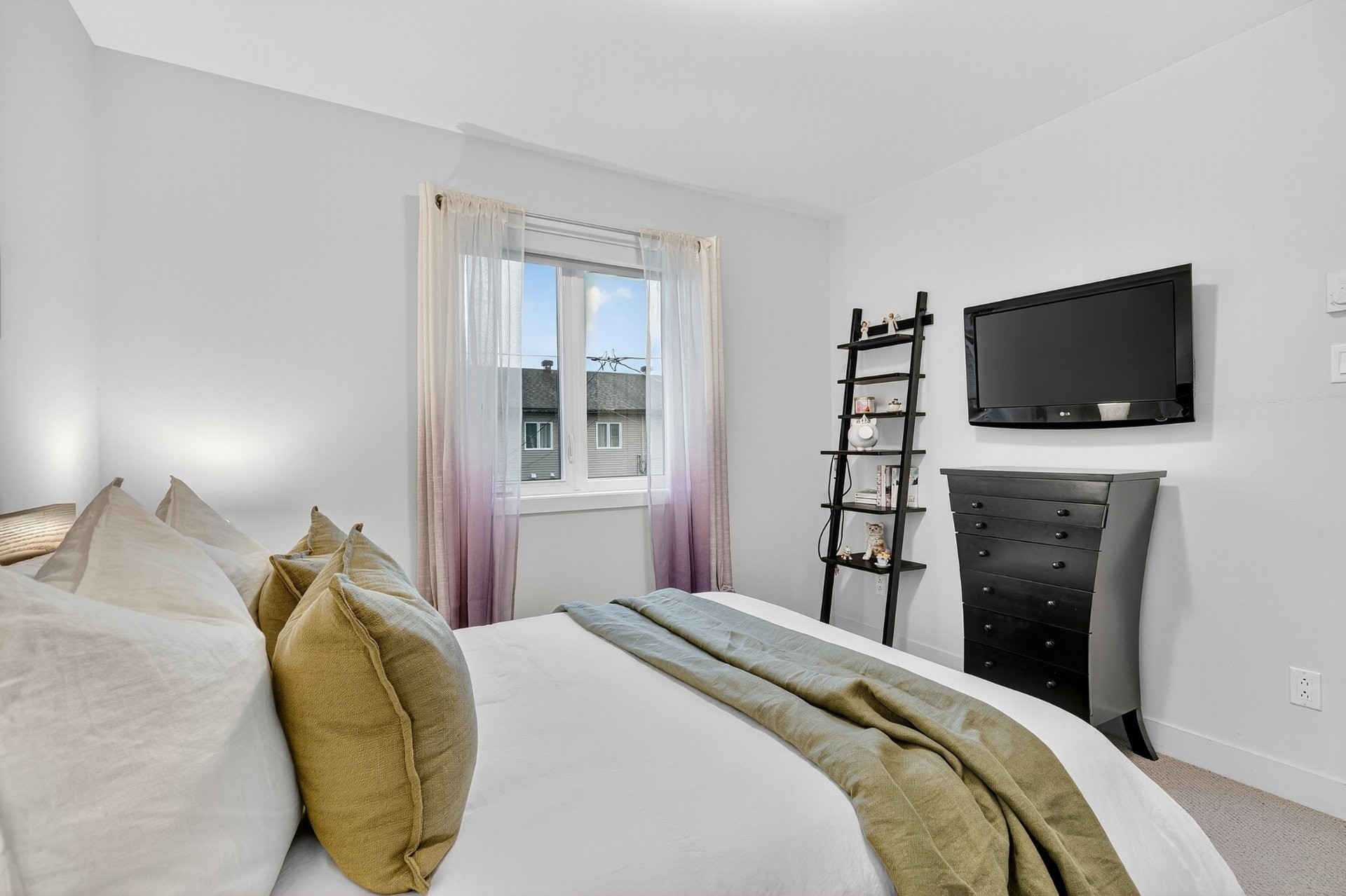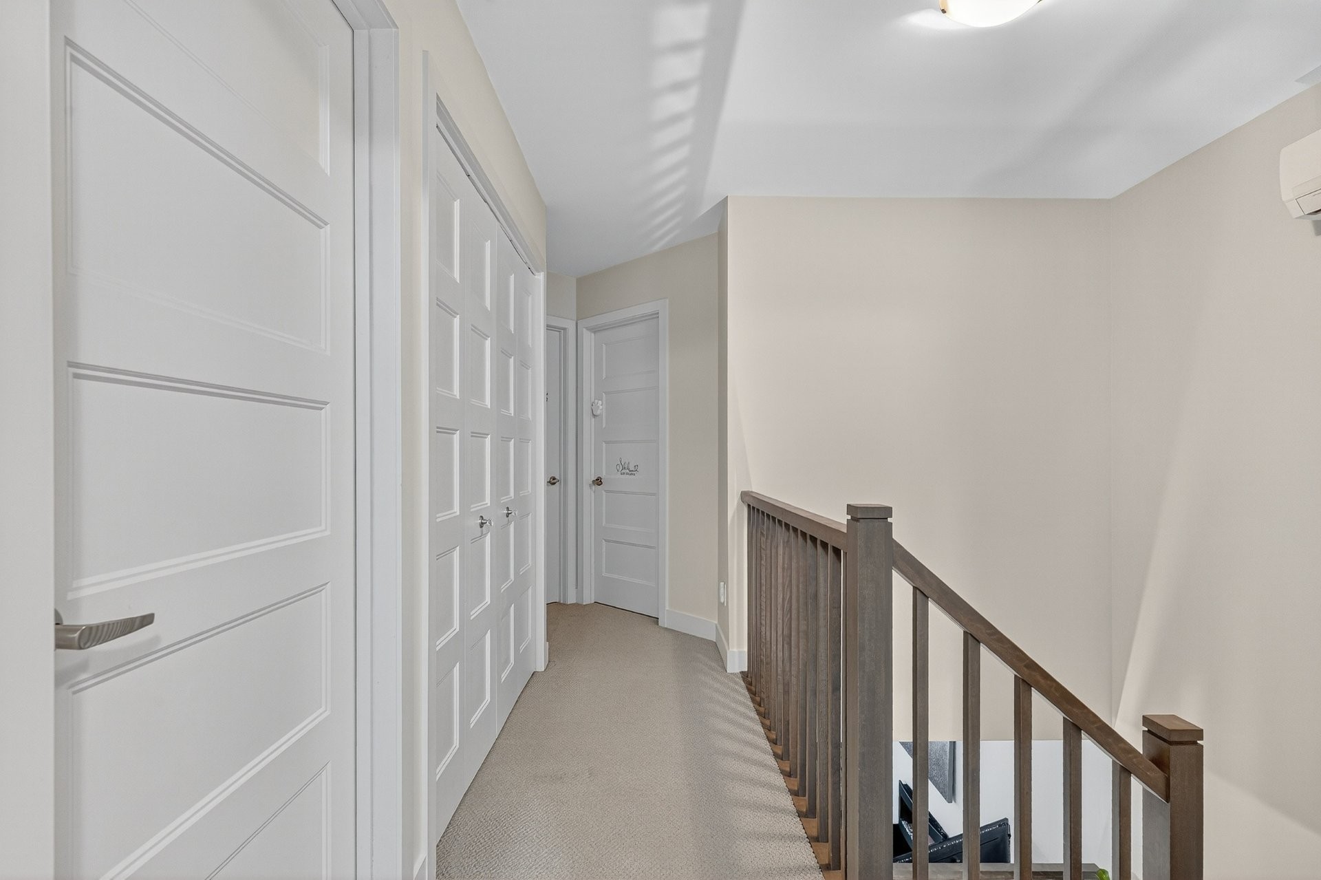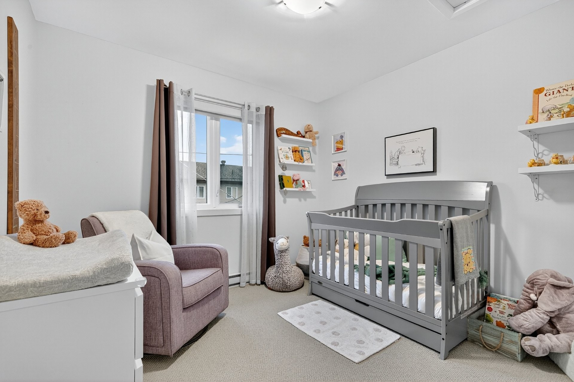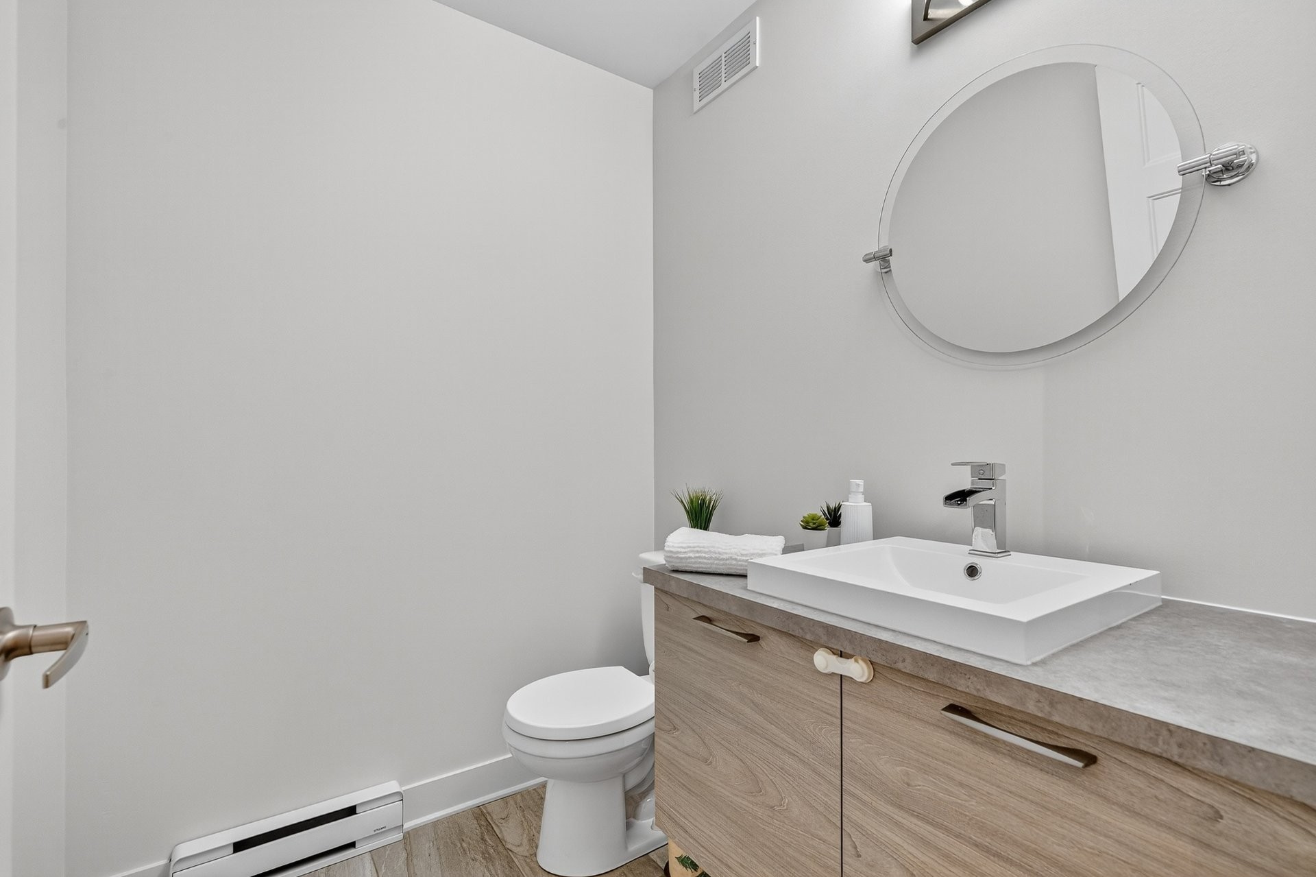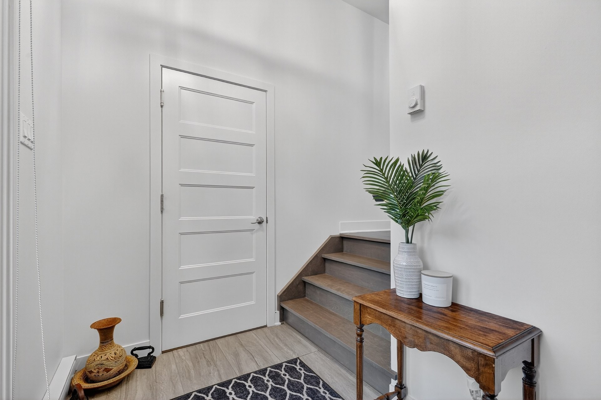 Spacious corner unit in Cité des Papillons on a private lot with a heated saltwater pool and direct gate to walking path. Modern open concept with granite island, two electric fireplaces, and garage access. Three large bedrooms upstairs with a stylish bath, separate laundry, and bright windows. The basement offers a sixteen-by-twenty-foot family room with storage. Updated lighting, window coverings, and finishes make this home turnkey. Prime location near highways, schools, daycares, and the new hospital--perfect for families or investors.
