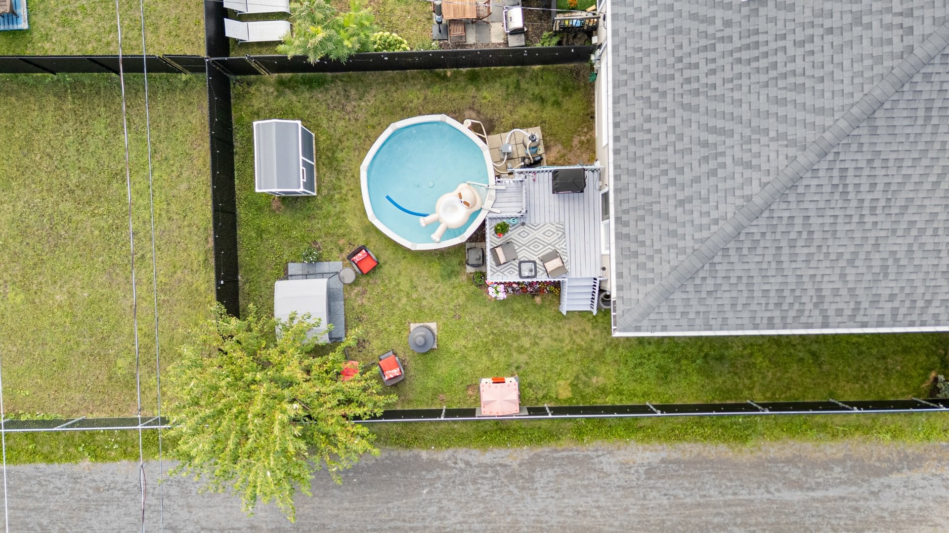 Pride of ownership shows throughout this impeccably maintained corner unit offering exceptional value for its size, condition, and location. Situated on a private lot, this property features a fenced backyard with privacy slats, an enlarged deck, a 2018 heated saltwater pool, a storage shed, and a mature cherry tree. A gate at the rear of the yard opens directly onto the walking path--ideal for families and dog owners.