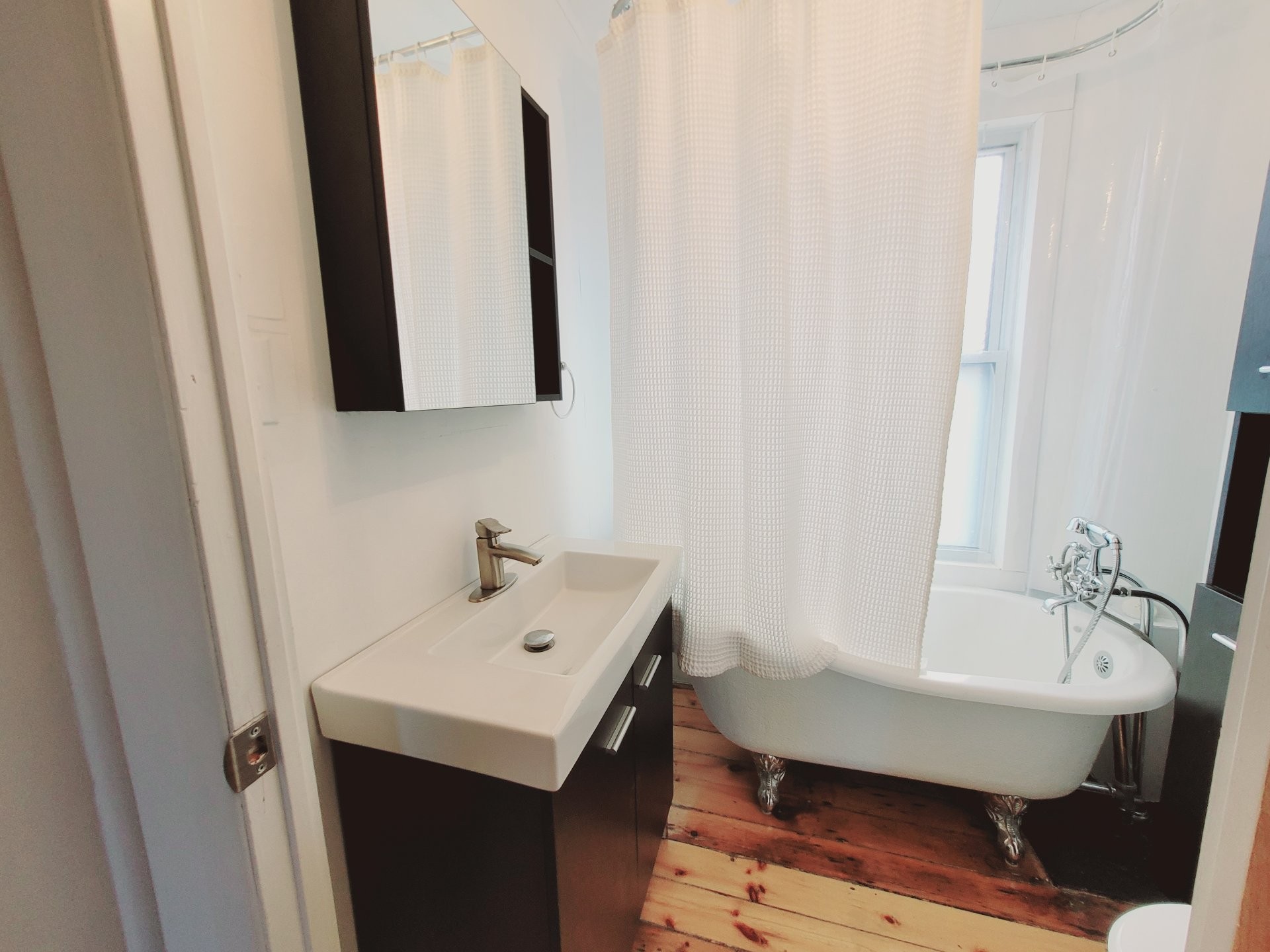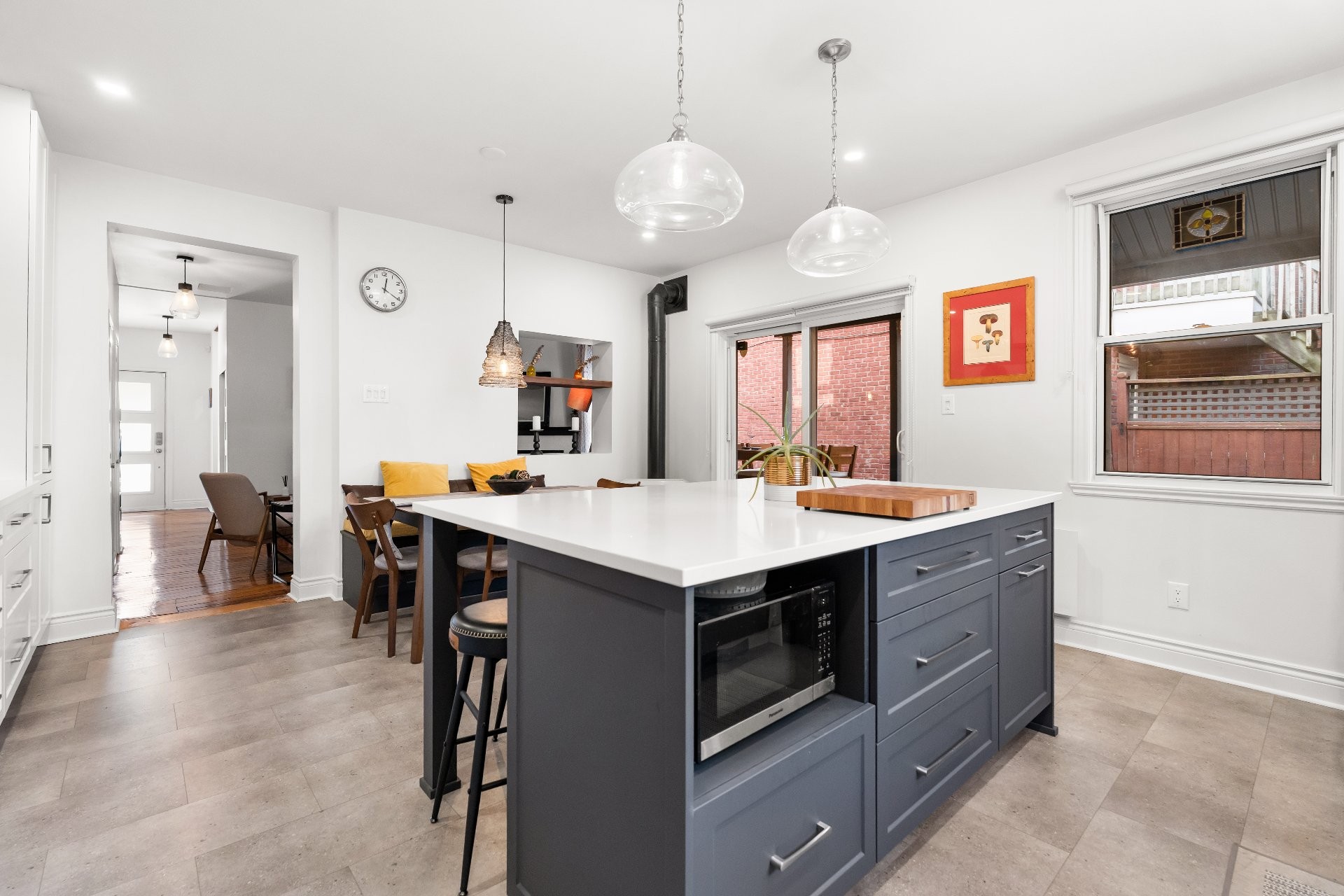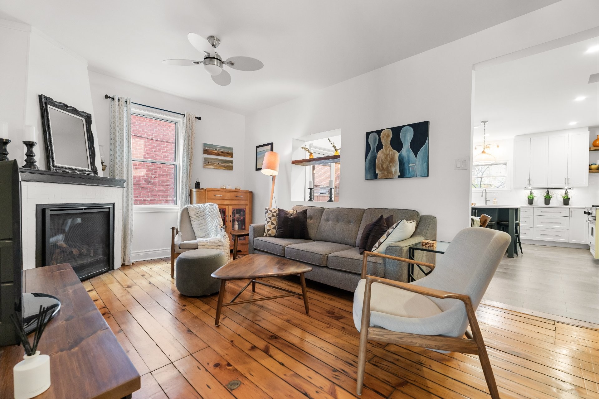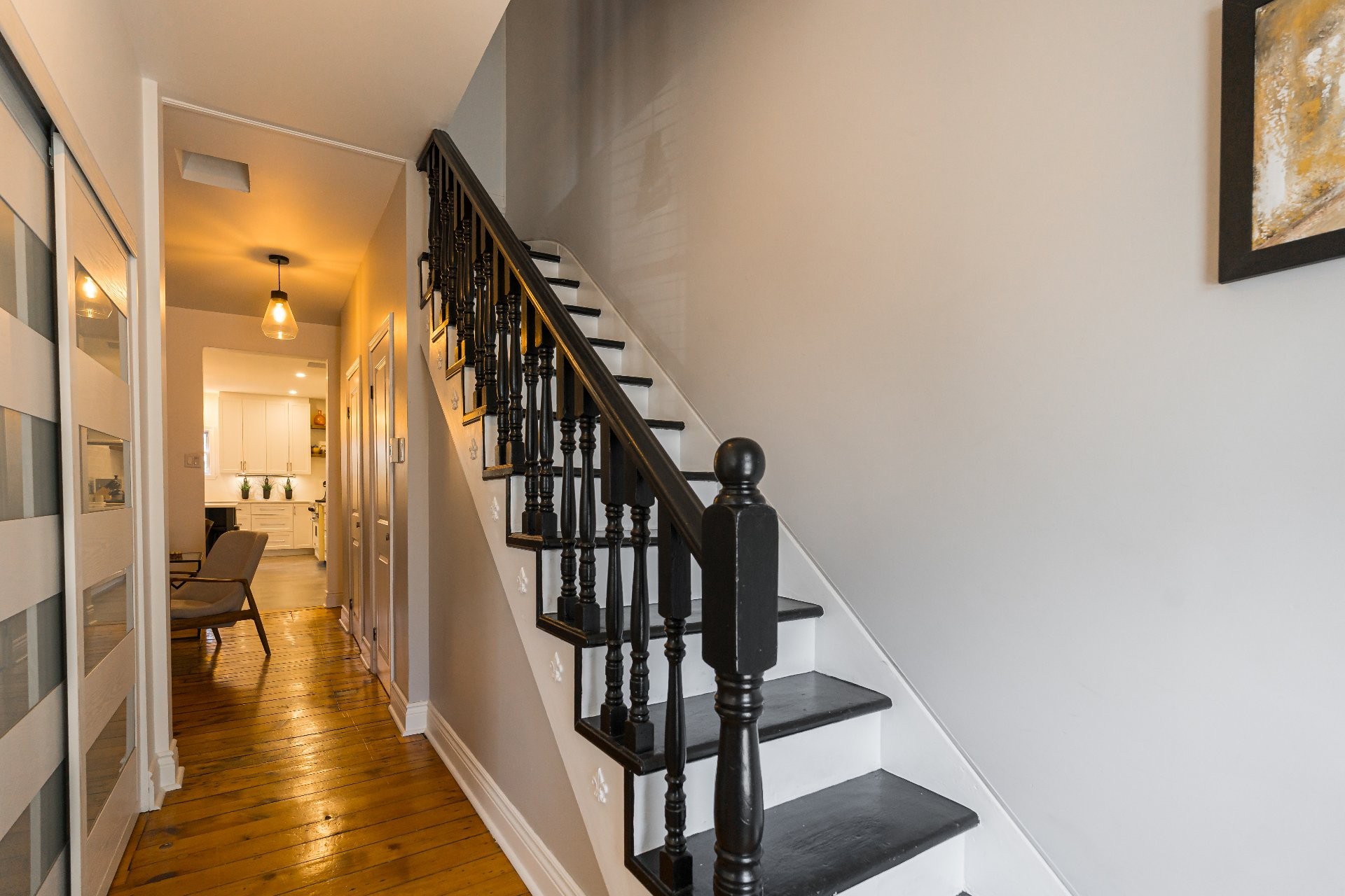 **The second townhome, 87 10e Avenue, is tenant-occupied and generates attractive rental income. This unit has also been well maintained and renovated over time, including a recent kitchen renovation, making it appealing and functional for long-term tenants. Both units retain a charming, cozy feel with their classic plank wood floors, combining modern renovations with old-world character.