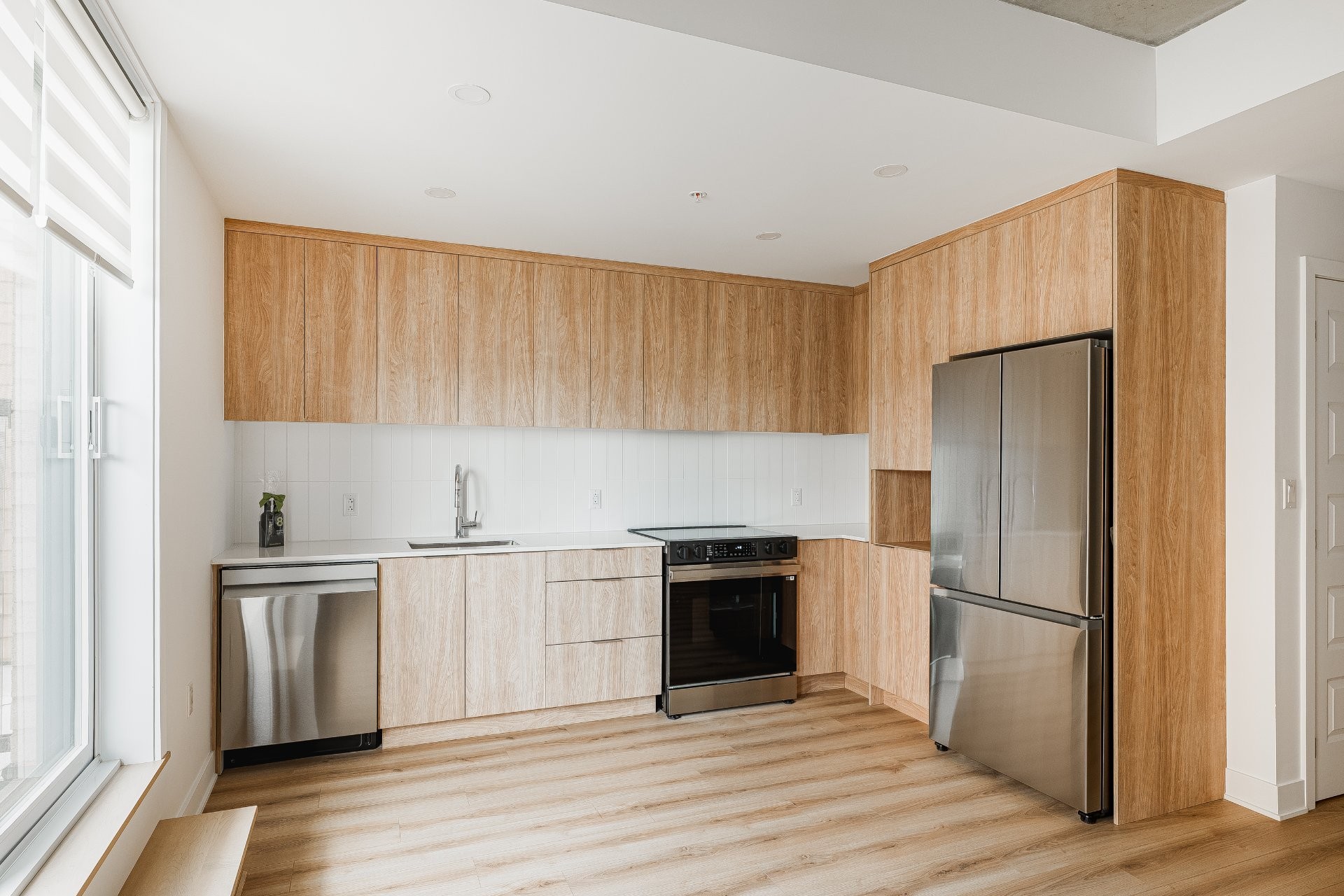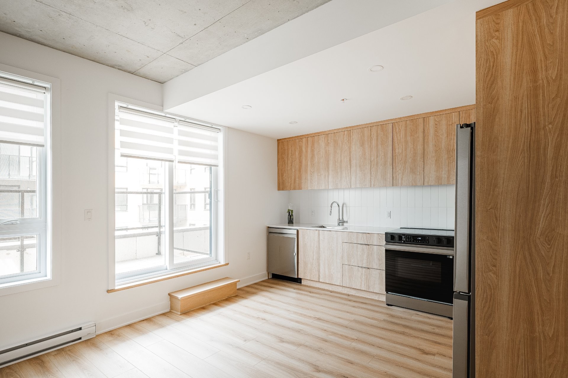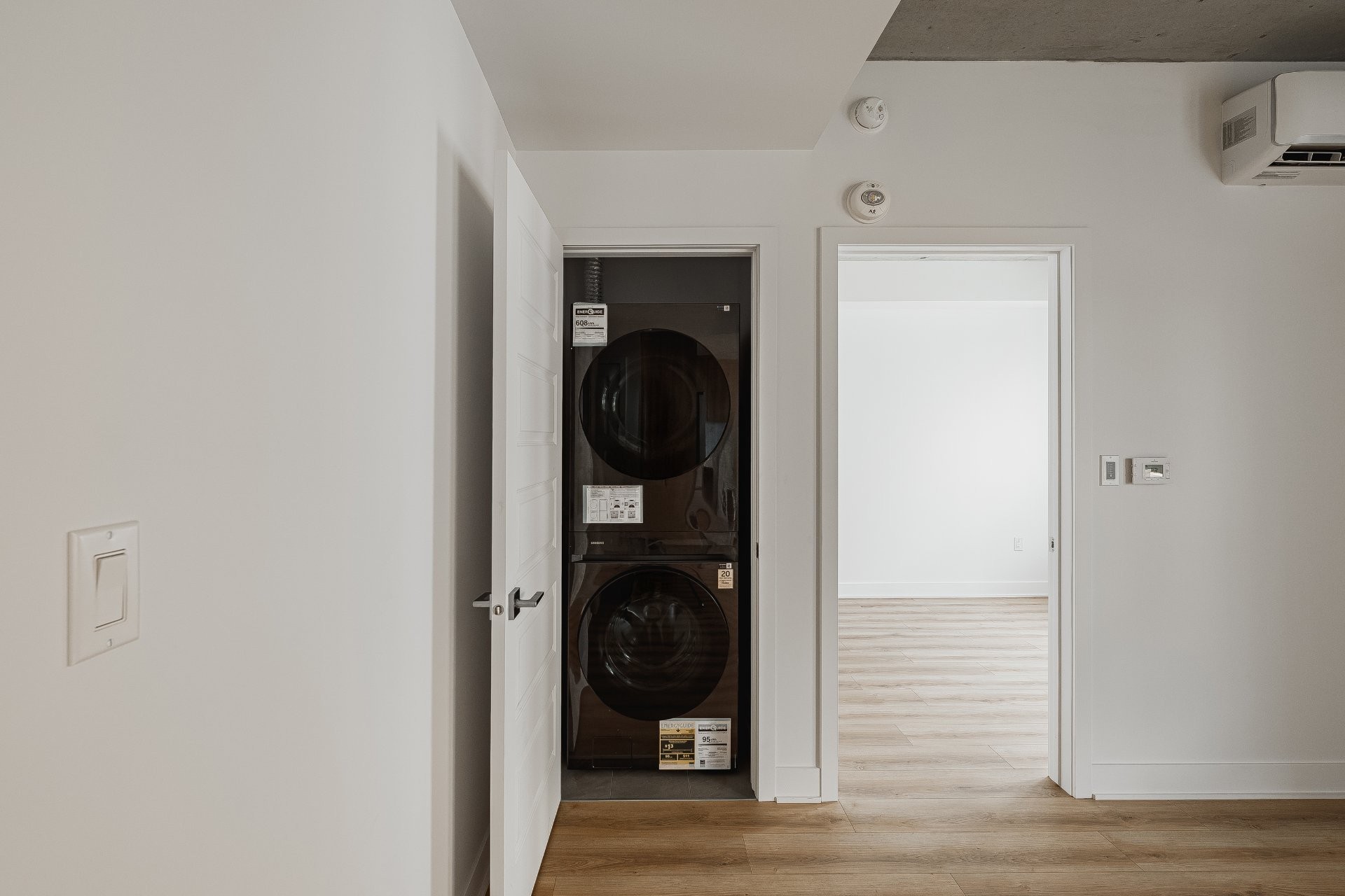 Spacious and modern condo for rent in the prestigious Città project in Saint-Léonard. Includes all appliances, air conditioning, private balcony, parking space, and private storage. Enjoy high-end amenities: rooftop pool, fully equipped gym, co-working space, urban chalet, secure bike storage, and more. The structure is concrete so soundproofing is strong. Located near the future metro station, major highways (A25, A40), schools, parks, restaurants, and shops. Quiet, well-connected neighbourhood. Available now--schedule your visit today!