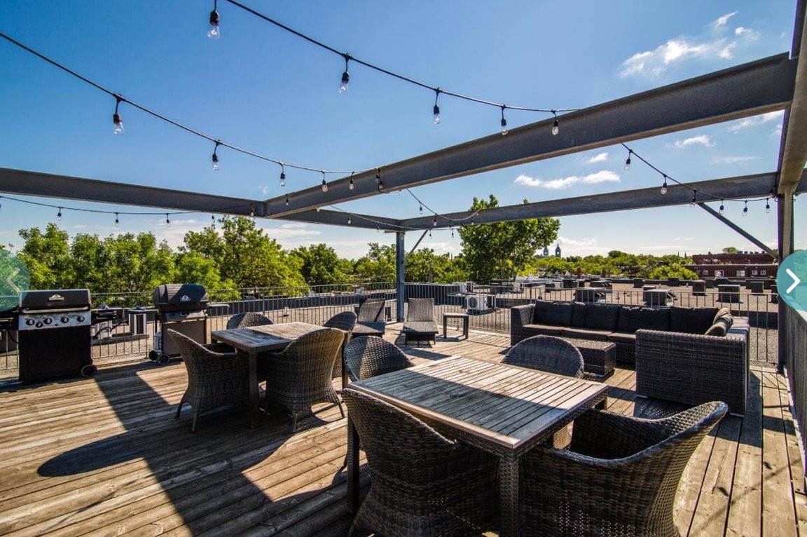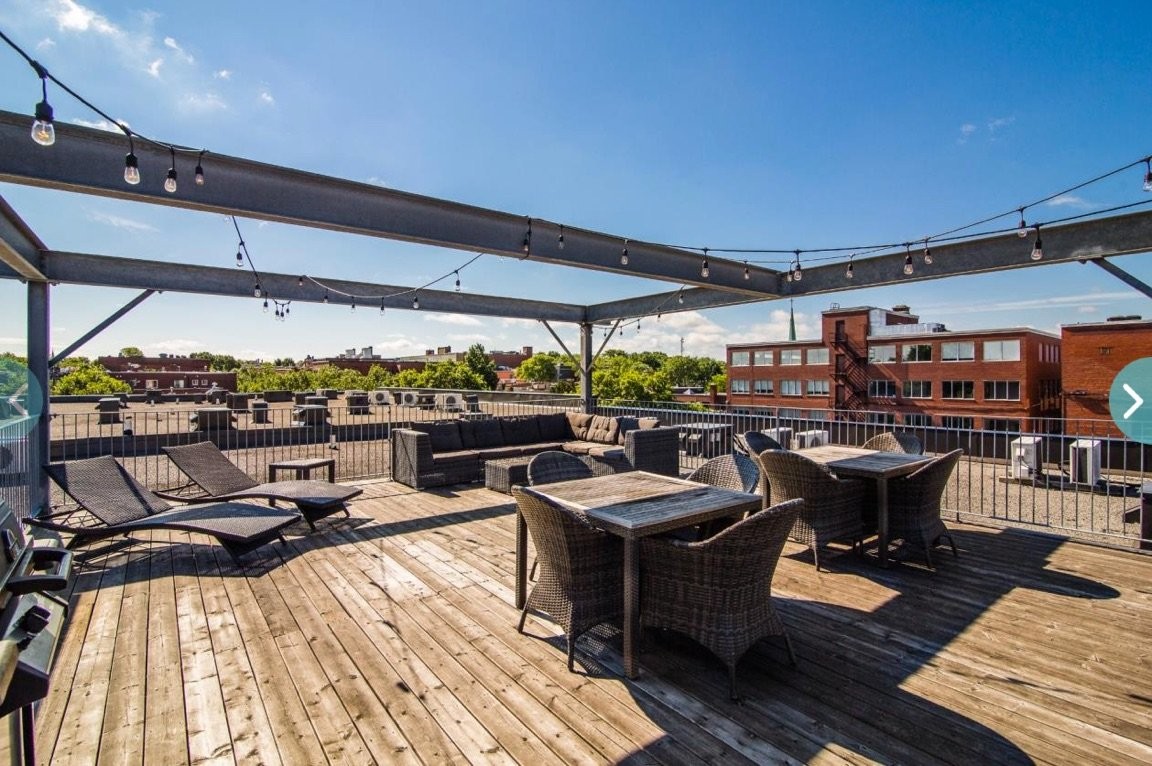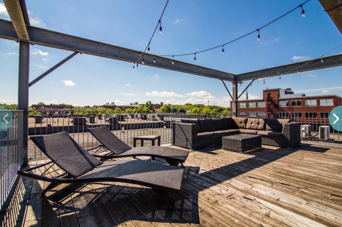 Top floor industrial loft. High ceilings with lots of natural light. Excellent location, low condo fees, close to all amenities and services, public transport, Metro Cremazie, Jarry Park, and immediate access to the Metropolitan Highway. Basement storage includes a convenient bike rack. Shared rooftop terrace overlooking Montreal's skyline. Exceptional value and location!
