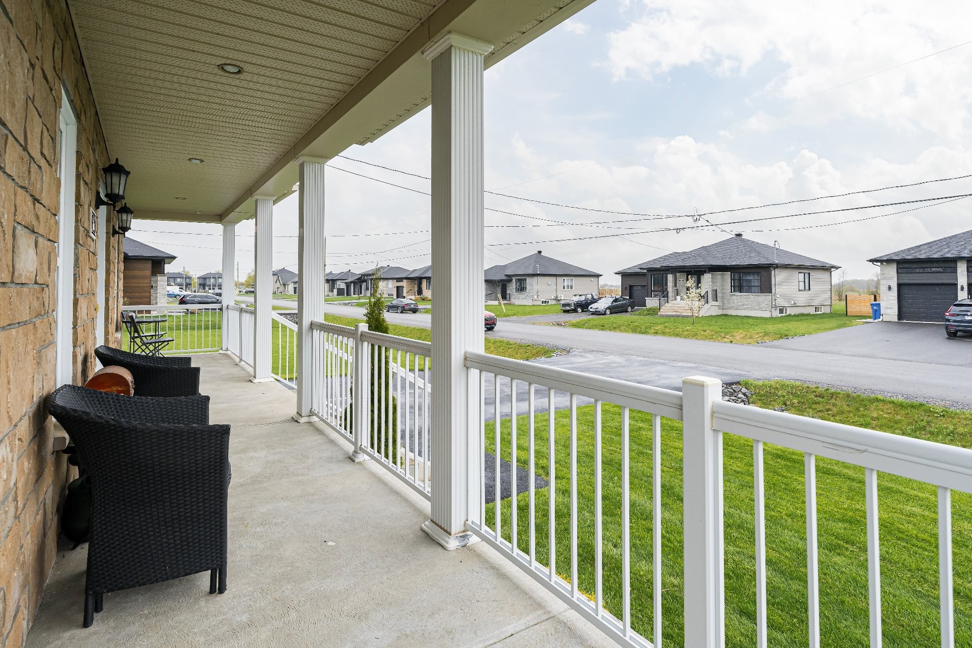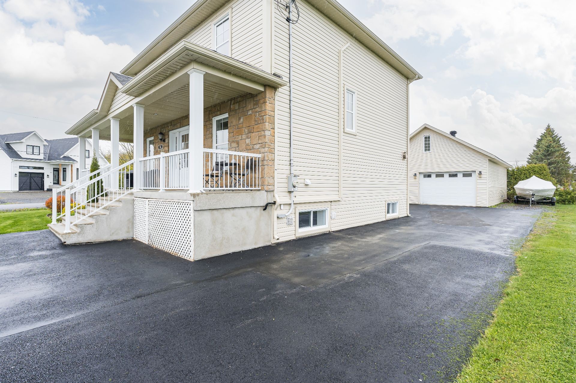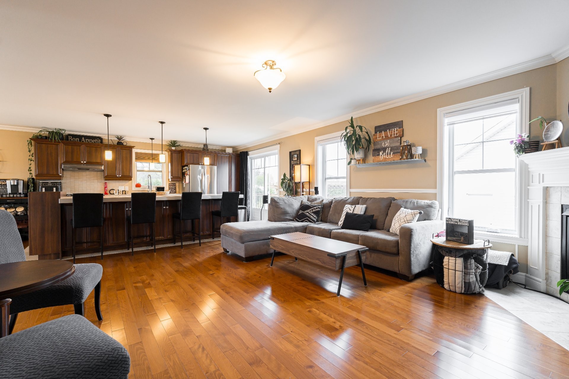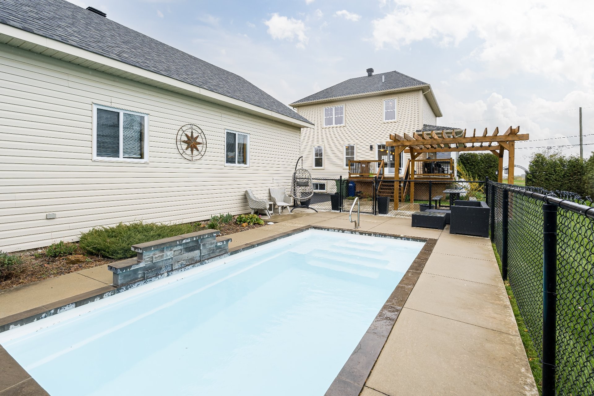 Welcome to 86 rue des Prés, a turnkey country-style home with a wrap-around porch and beautifully landscaped backyard. The central kitchen features a 10-ft island, perfect for gatherings. Upstairs are three bedrooms, including a main with walk-in and bathroom access. The basement offers a fourth bedroom, bathroom, and large family room. Enjoy a heated in-ground pool, pergola, and green space. The heated double garage has a second floor for extra storage, and the paved driveway fits six cars. A spacious, well-designed home offering comfort, space, and tranquility.