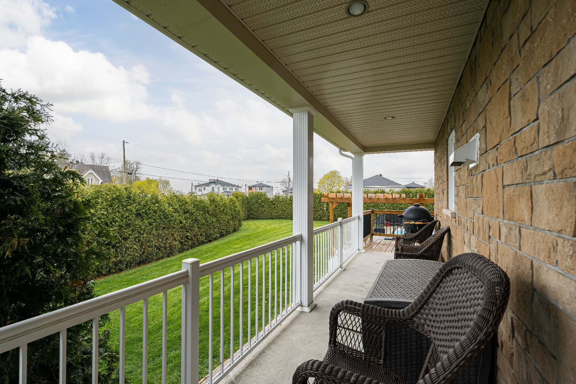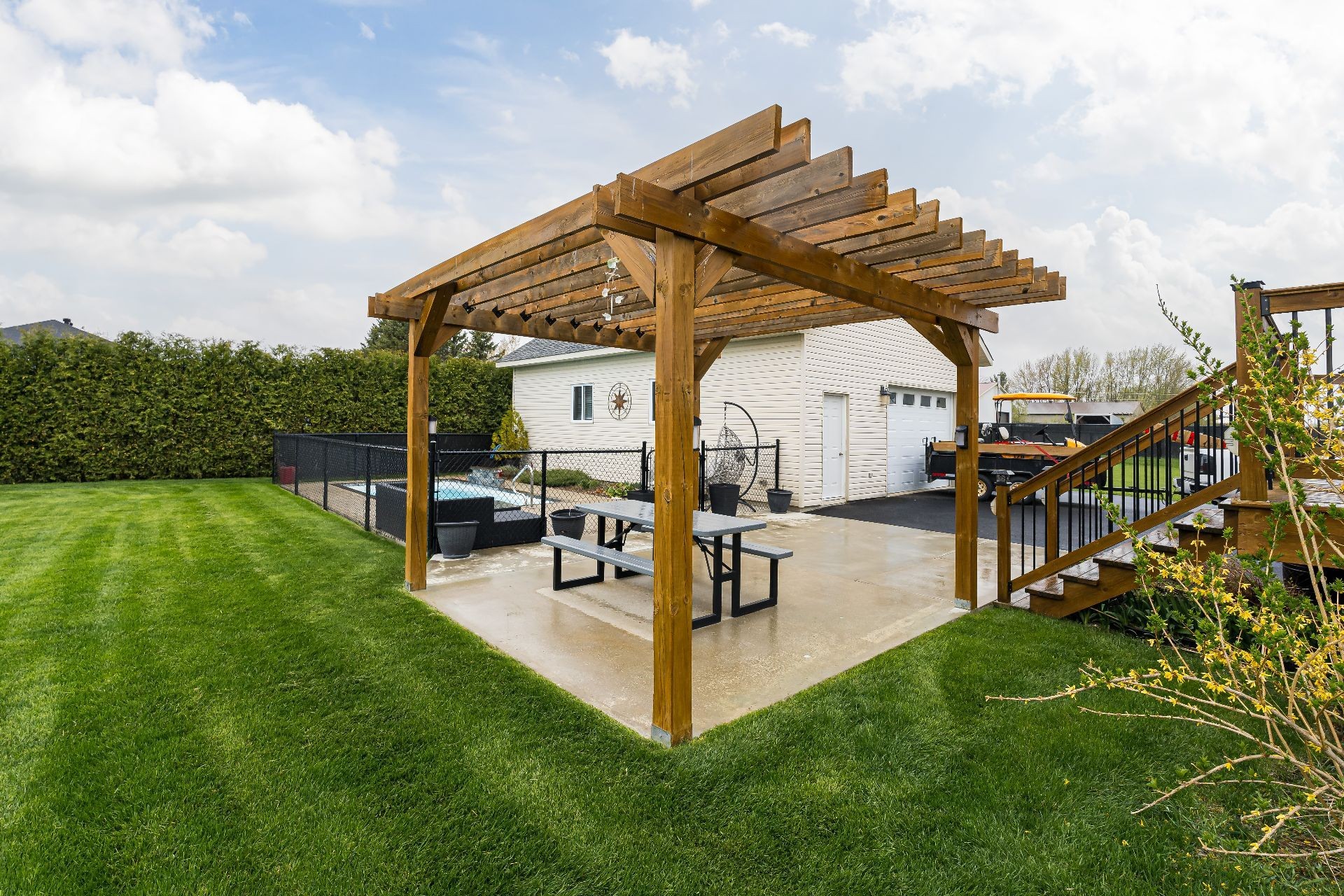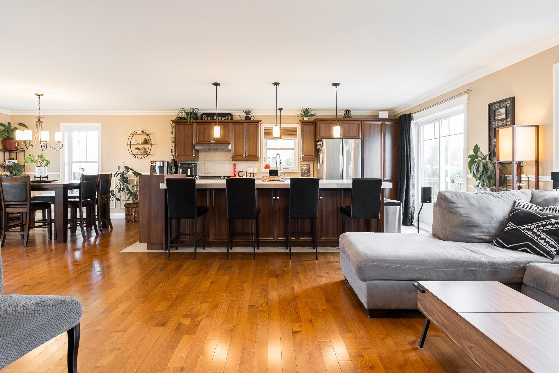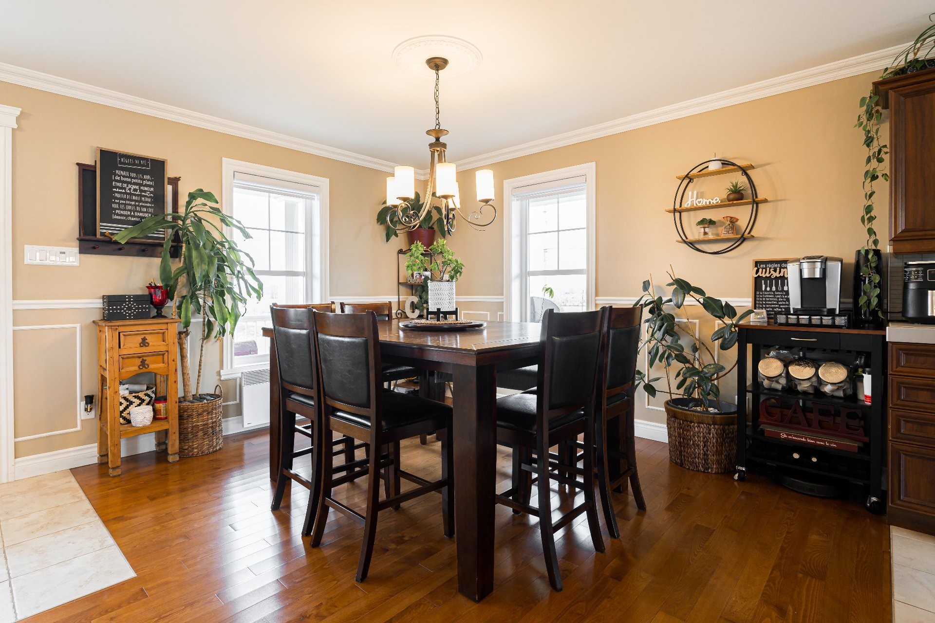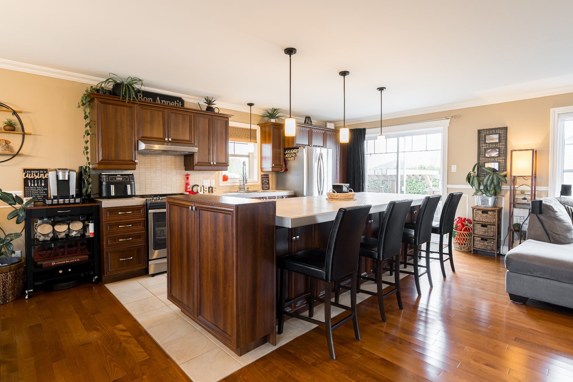 Welcome to 86 rue des Prés, a turnkey country-style home with a wrap-around porch and beautifully landscaped backyard. The central kitchen features a 10-ft island, perfect for gatherings. Upstairs are three bedrooms, including a main with walk-in and bathroom access. The basement offers a fourth bedroom, bathroom, and large family room. Enjoy a heated in-ground pool, pergola, and green space. The heated double garage has a second floor for extra storage, and the paved driveway fits six cars. A spacious, well-designed home offering comfort, space, and tranquility.