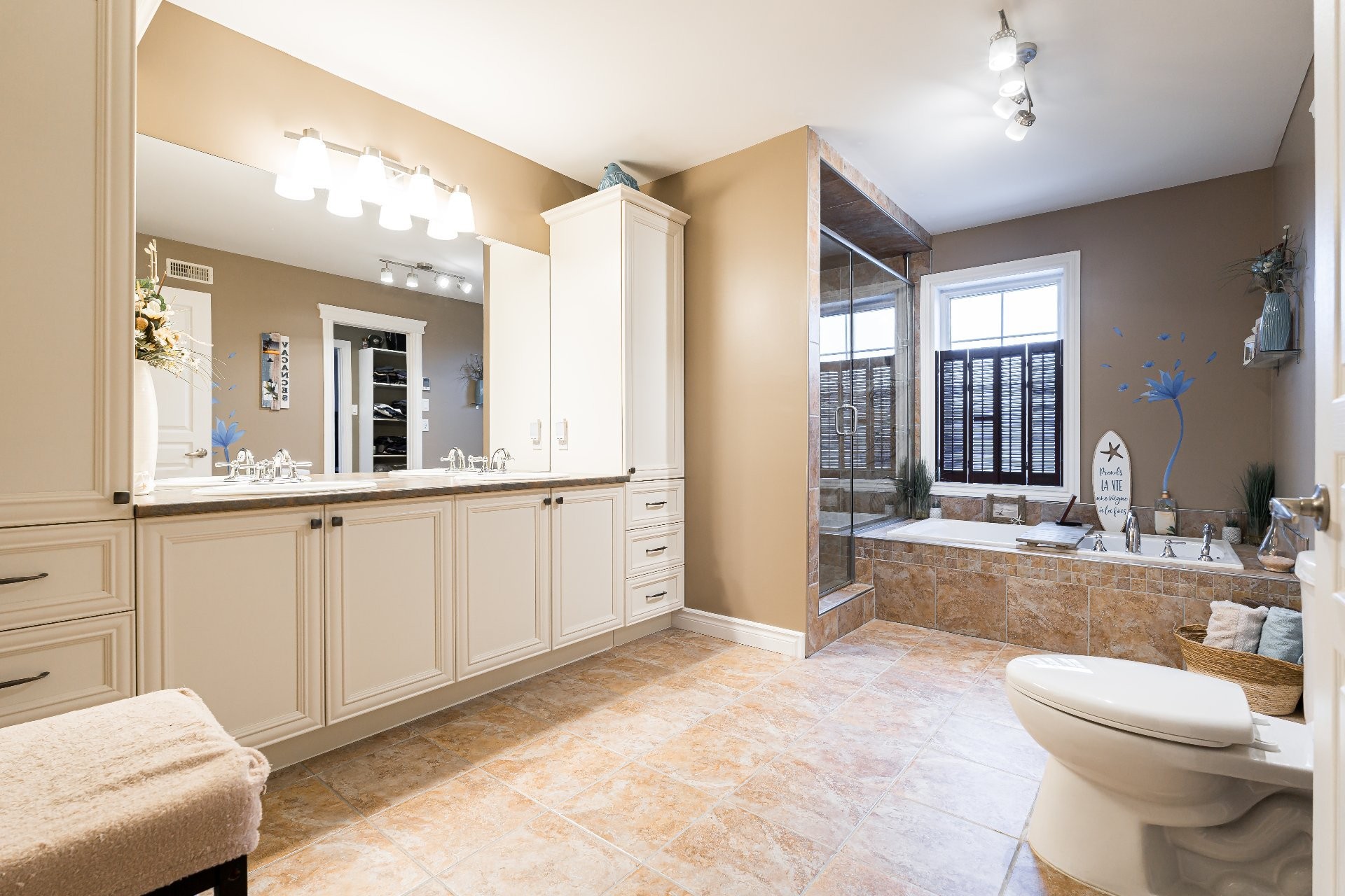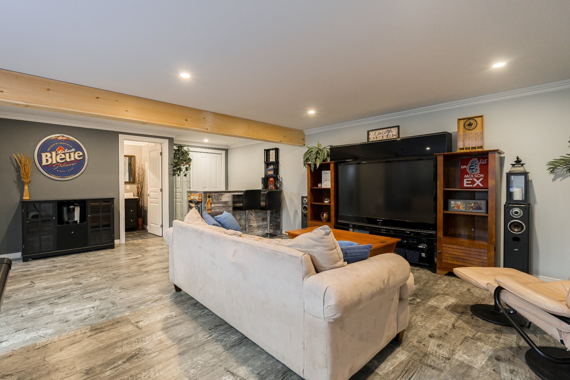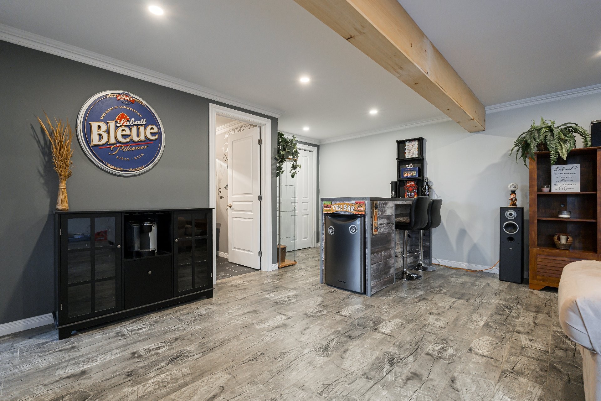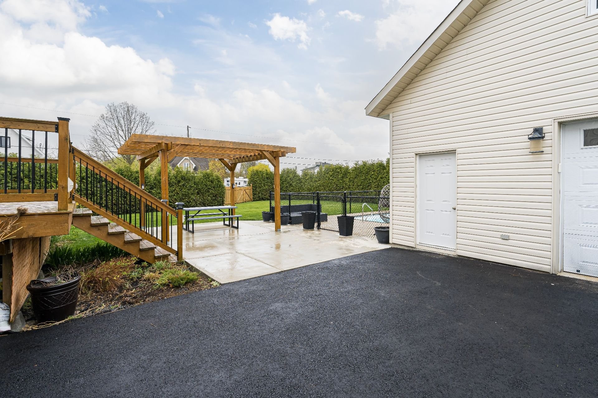 Welcome to 86 rue des Prés, a turnkey country-style home with a wrap-around porch and beautifully landscaped backyard. The central kitchen features a 10-ft island, perfect for gatherings. Upstairs are three bedrooms, including a main with walk-in and bathroom access. The basement offers a fourth bedroom, bathroom, and large family room. Enjoy a heated in-ground pool, pergola, and green space. The heated double garage has a second floor for extra storage, and the paved driveway fits six cars. A spacious, well-designed home offering comfort, space, and tranquility.