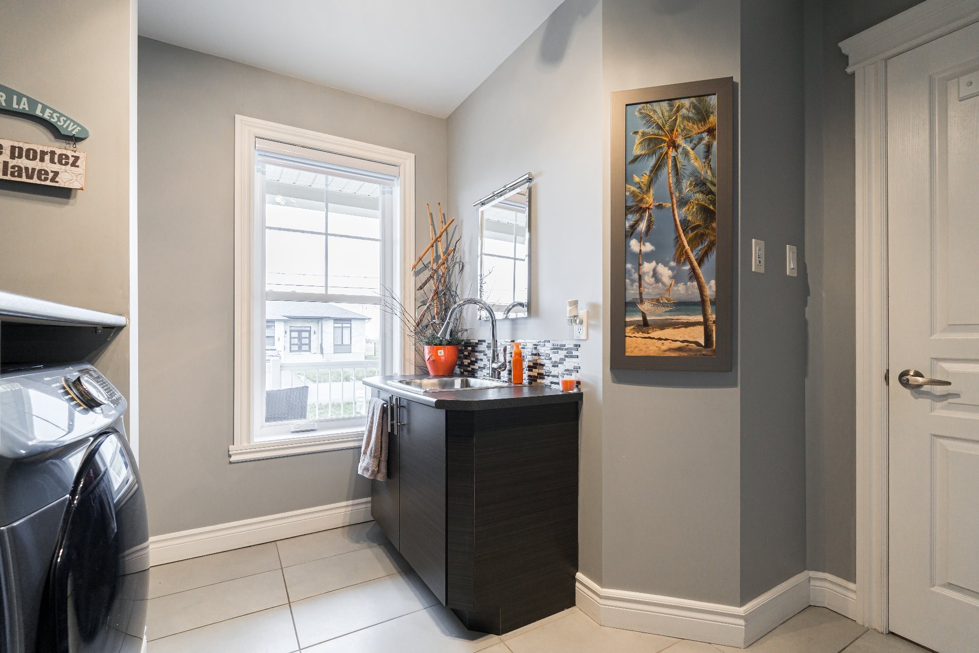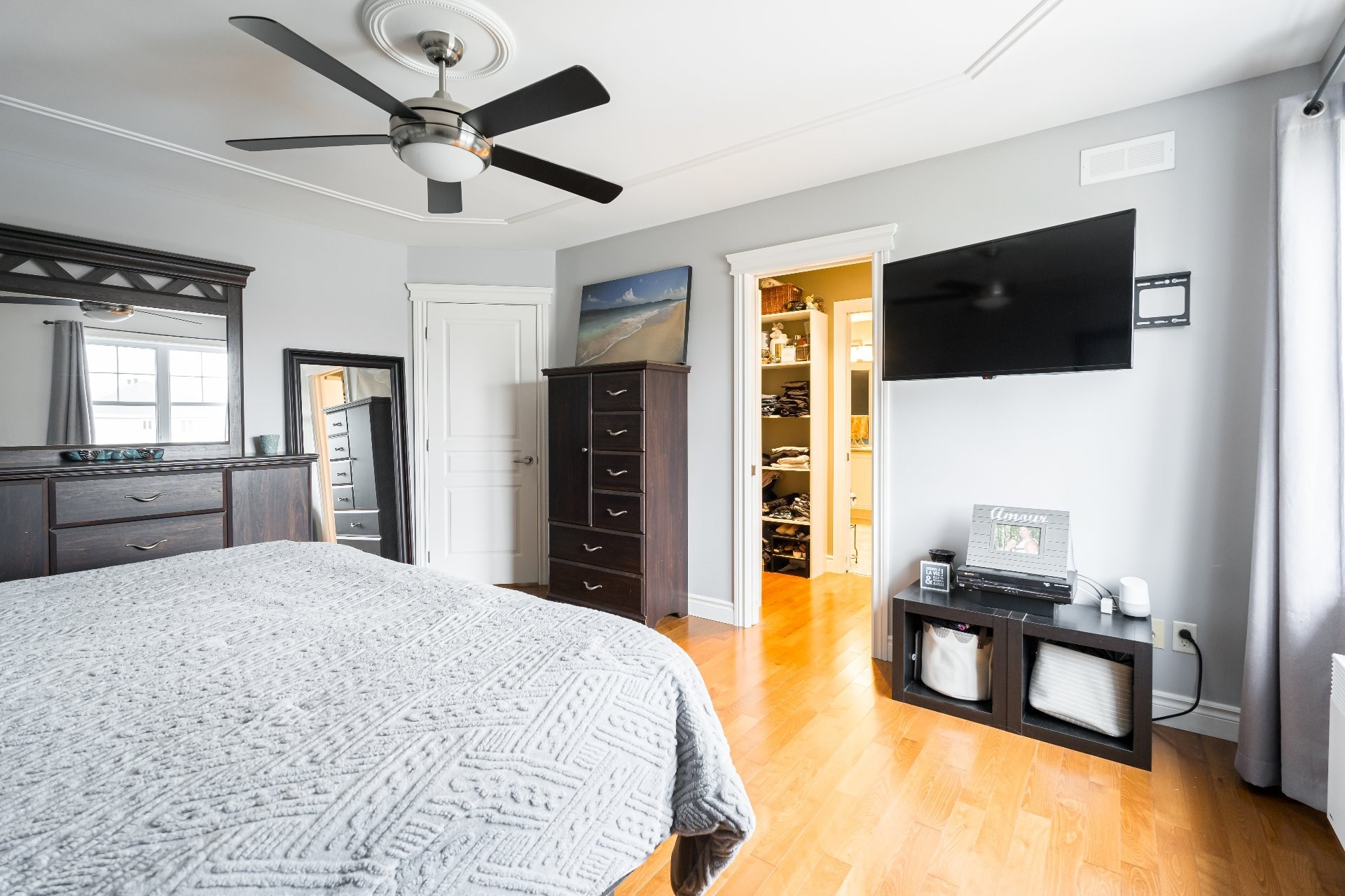 The kitchen is in the heart of the house, equipped with a 10-foot central island, ideal for meals with family or friends. It also provides ample storage with built-in cabinetry on both sides. Upstairs, you will find three bedrooms. The main bedroom includes a walk-in wardrobe with direct access to the bathroom.