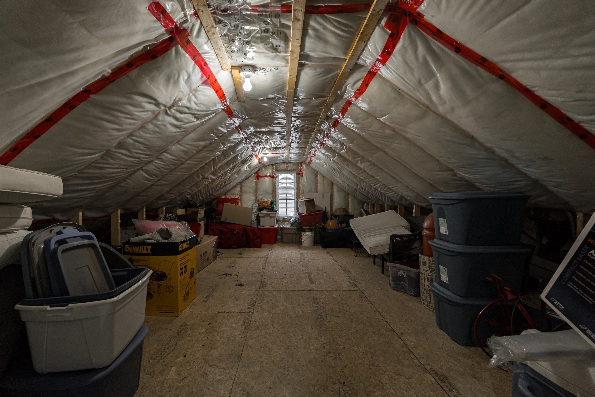 The heated double garage includes a second floor offering convenient additional storage. The paved driveway leads right up to the garage and offers room to park at least six cars outside.