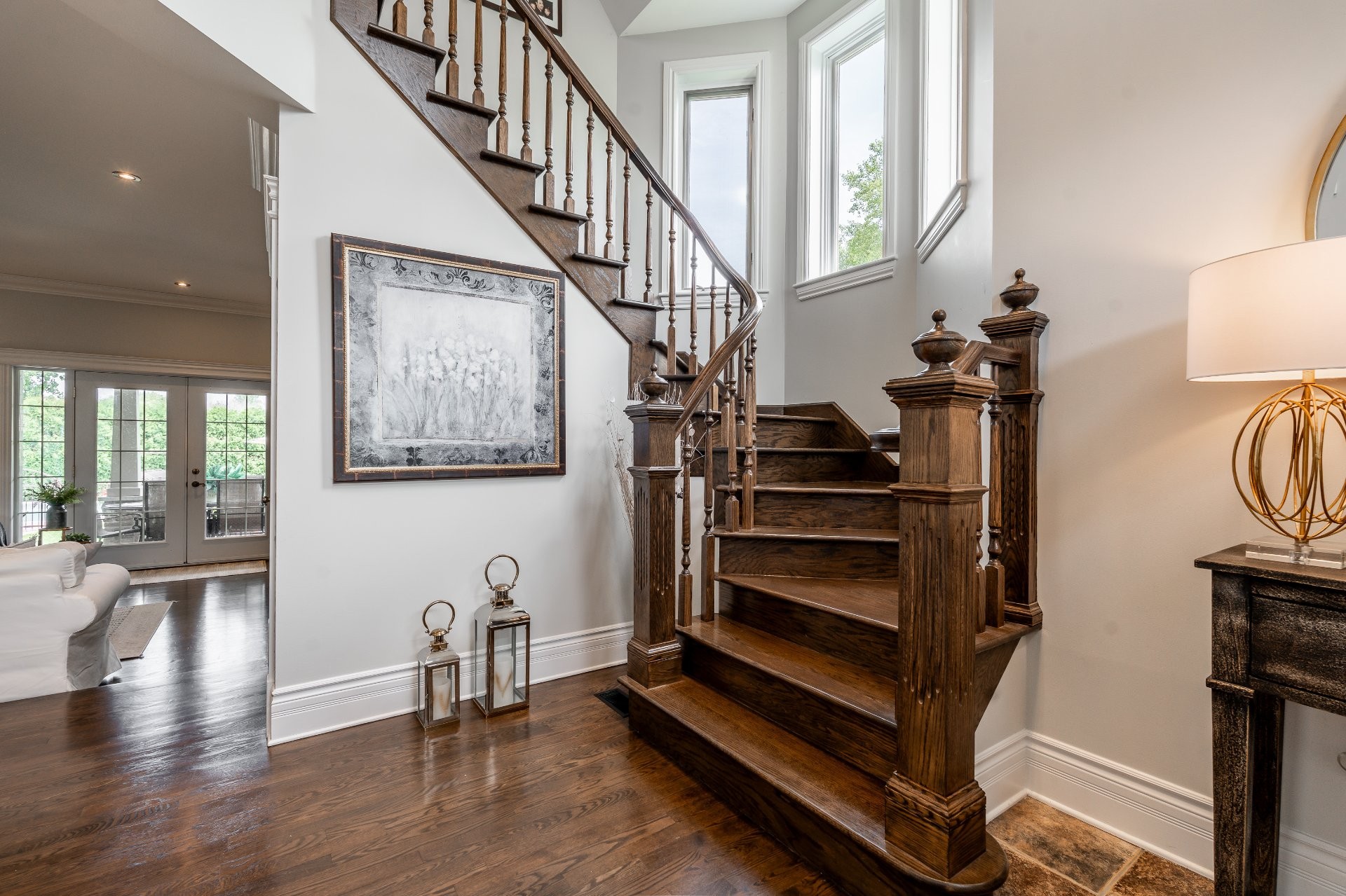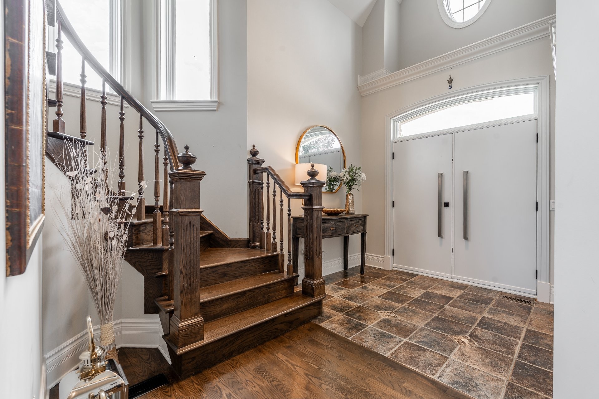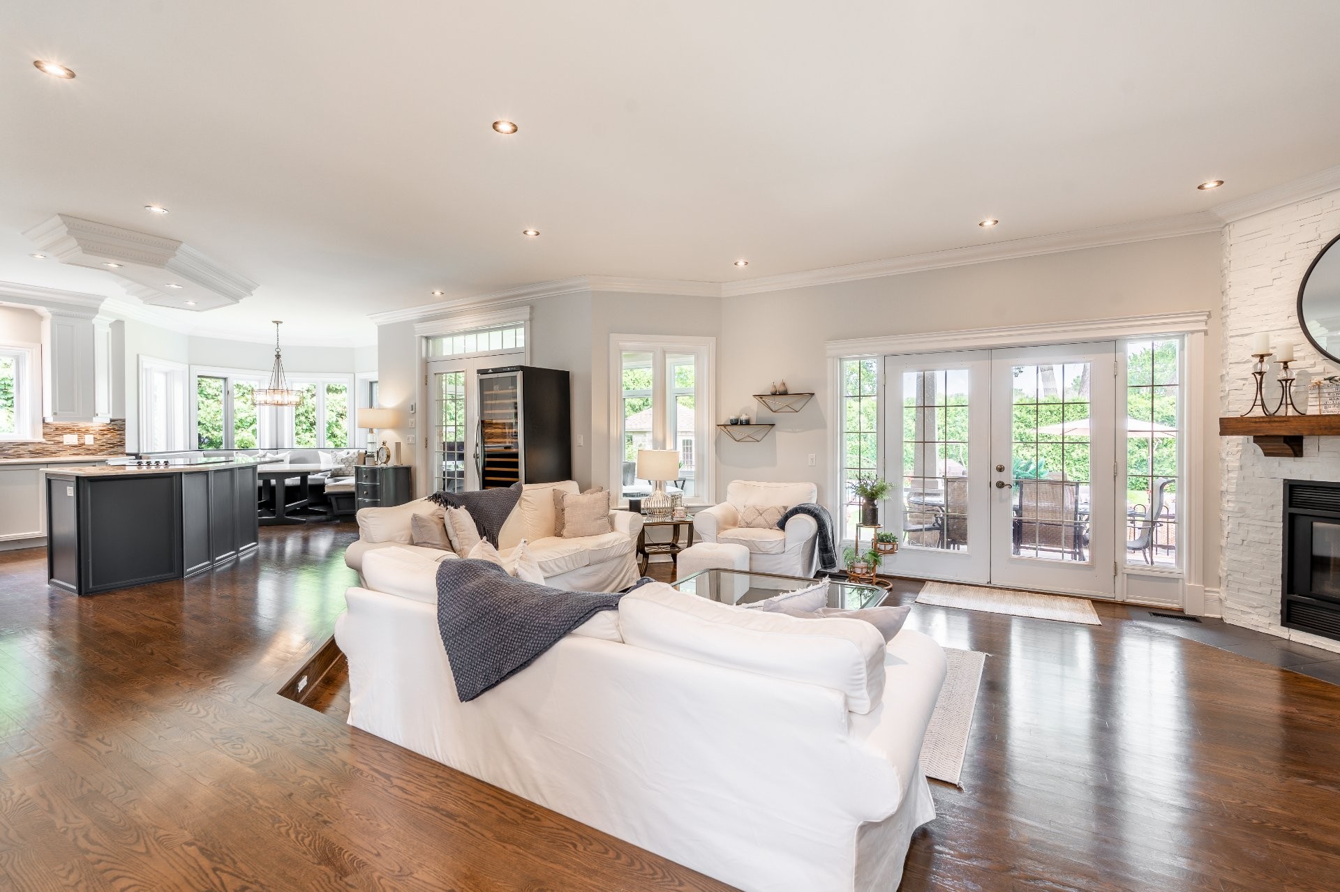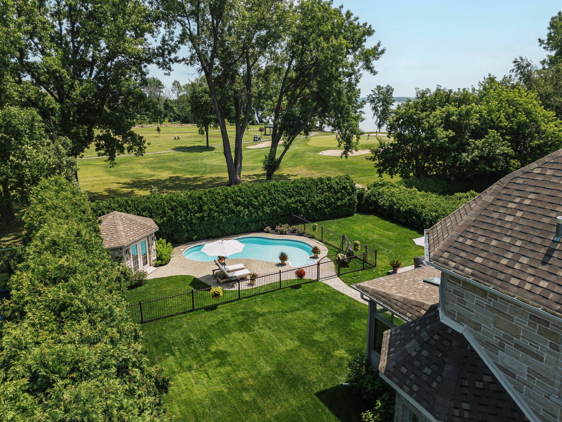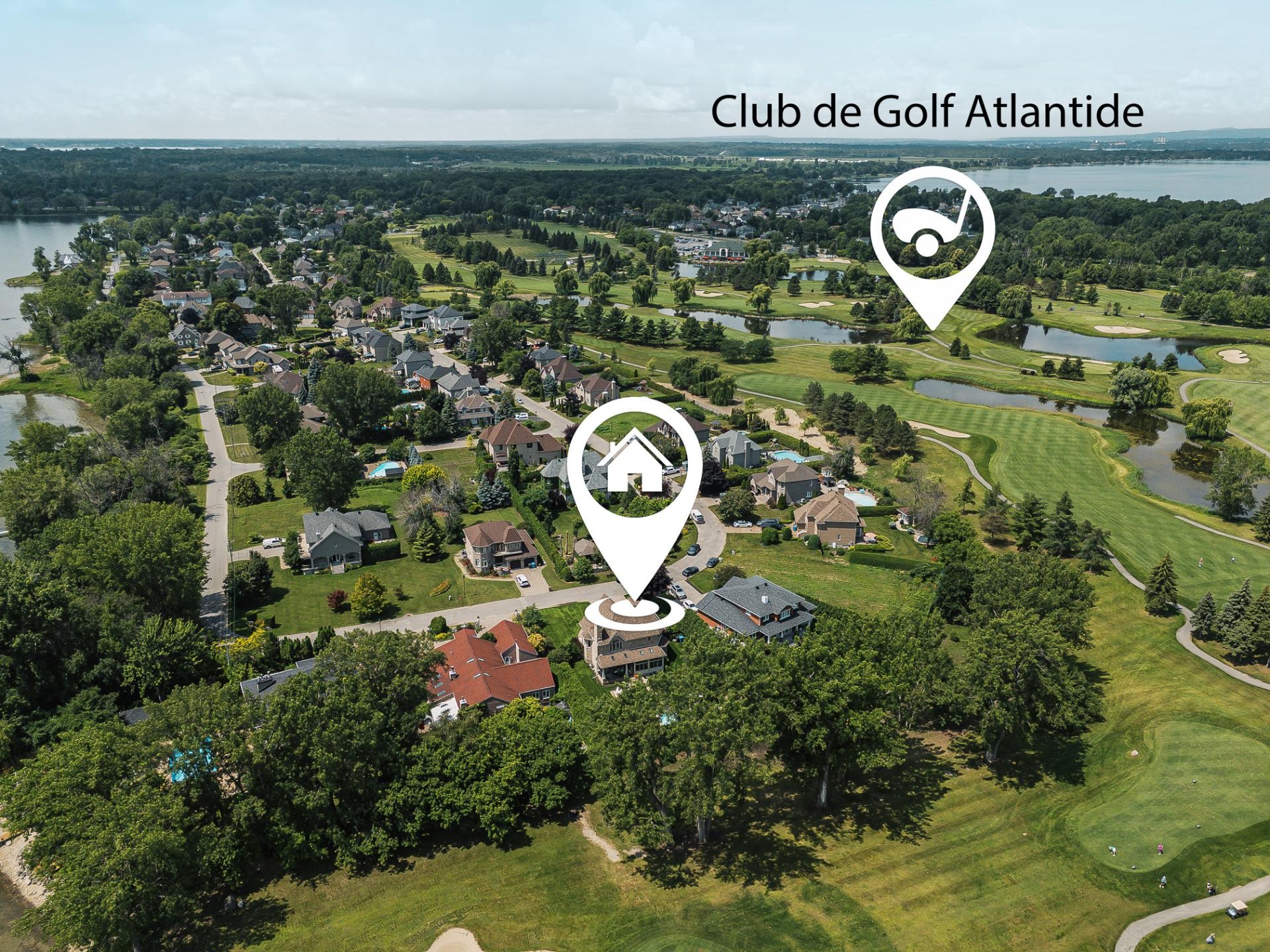 Imposing and timelessly elegant 5-bed residence with the ultimate open floorplan, set on a crescent backing the 7th hole of renowned Atlantide Golf Course,with partial water views and boasting:grand oak staircase & floors,9-18 ft ceilings (1st fl), oversized baseboards/moldings, wood & propane fireplaces, large formal dining room and living room (overlooking the garden),solarium/2nd dining room,custom wood kitchen (quartz) with luxury dinette,spacious primary suite,renovated basement with garage access,oversized double garage (epoxy),a private backyard oasis with fenced salt inground pool,patio,veranda,shed,and municipal boat-launch access.