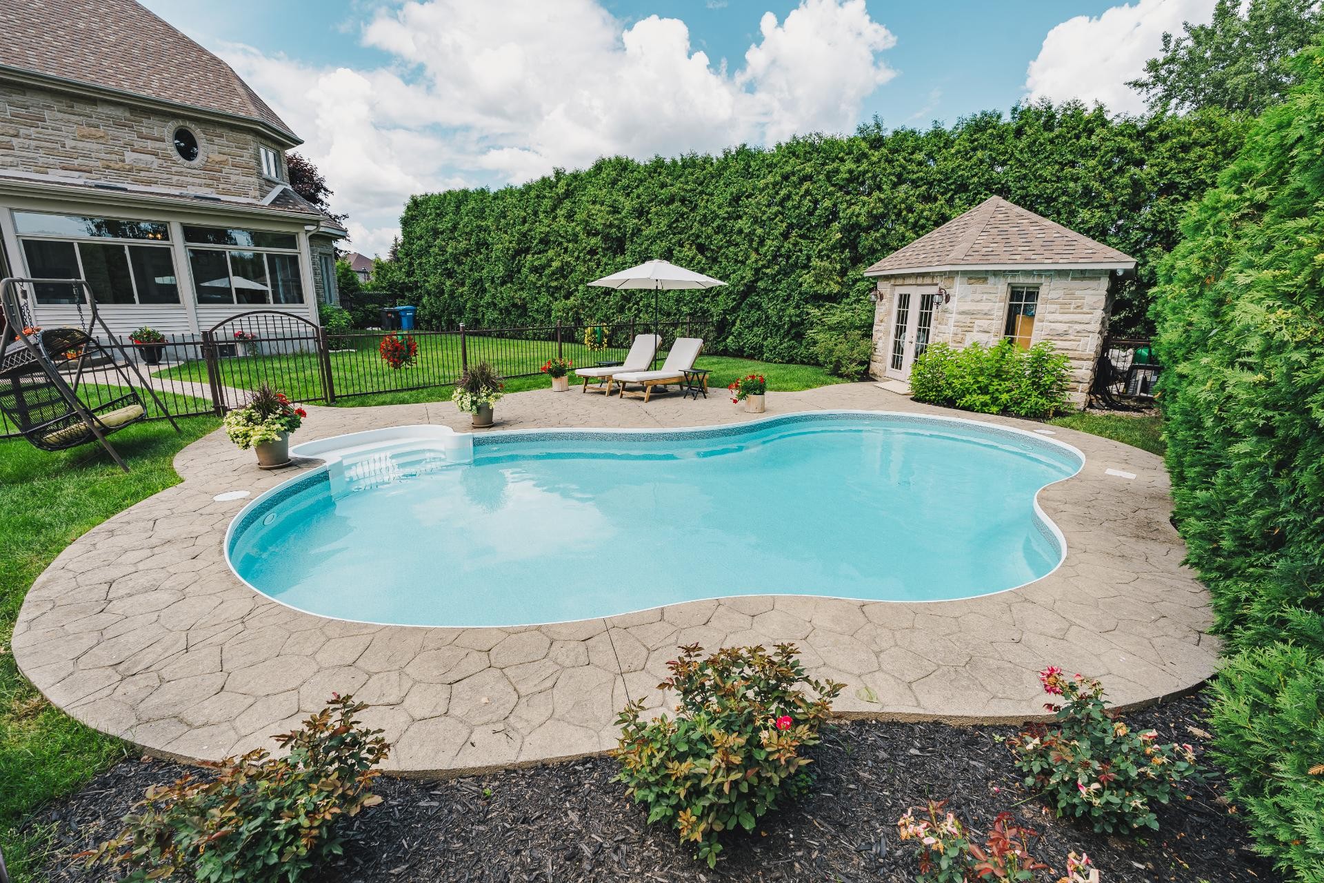 Permanent light fixtures,blinds,refrigerator(Frigidaire Gallery,SS), microwave (Panasonic,SS),wall mounted oven(Bosch,SS),dishwasher(Bosch,SS),stove top(Frigidaire),washer and dryer (Maytag,grey,top load),alarm system w/surveillance (cameras),2 Garage door remotes,in ground pool,pool pump(Hayward),pool acc,pool gaz heat pump,house heat pump,air exchanger,, bathroom mirrors,central vacuum & acc,garage shelving ,water hose, wood fire pit, shed, BBQ (Napoleon),and car charger (EV level 2).