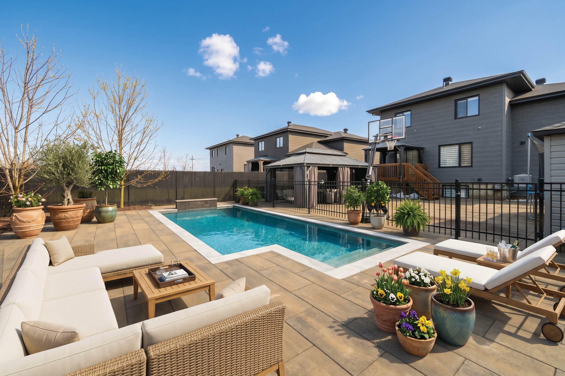 Beautiful property located in the sought-after family-friendly area of Cité des Papillons. Former model home offering many upgrades, bright and spacious living areas. Hardwood floors, central heating and air conditioning. Ideal for a large family, it offers 5 bedrooms in total (including a family room that can be converted into a closed bedroom), a modern kitchen with island, and open-concept living spaces. Fully finished basement with a bedroom and full bathroom. Landscaped backyard with an in-ground pool and full paving. Close to highways, schools, parks, shops, and the new hospital.