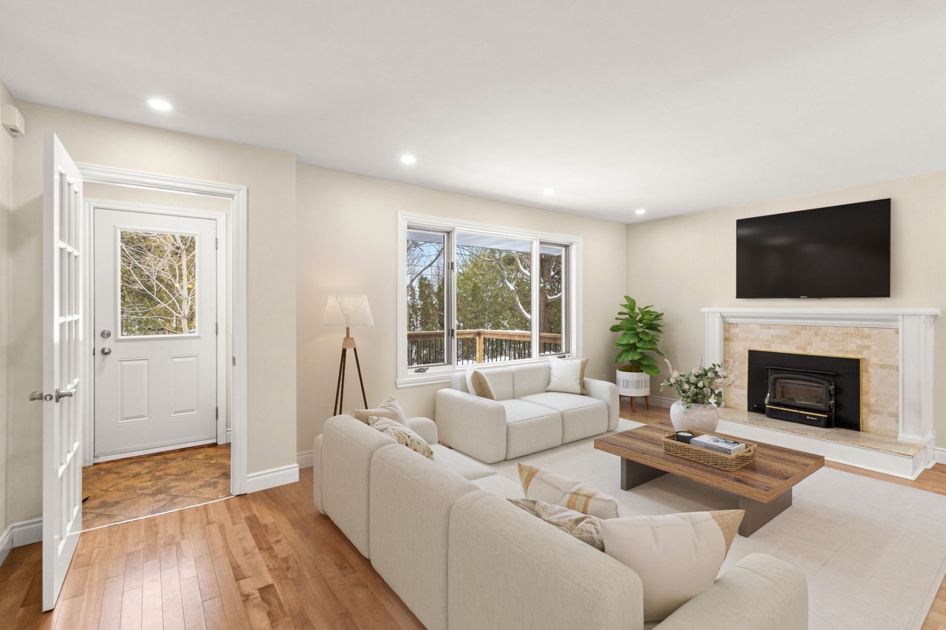 Welcome to this beautifully maintained split-level home in the sought-after community of Baie-D'Urfé, offering generous living space, privacy, and an exceptional lifestyle. Set on a nearly 15,000 sq. ft. lot with no rear neighbours, the property backs onto a municipal green space, providing a peaceful and private outdoor setting.