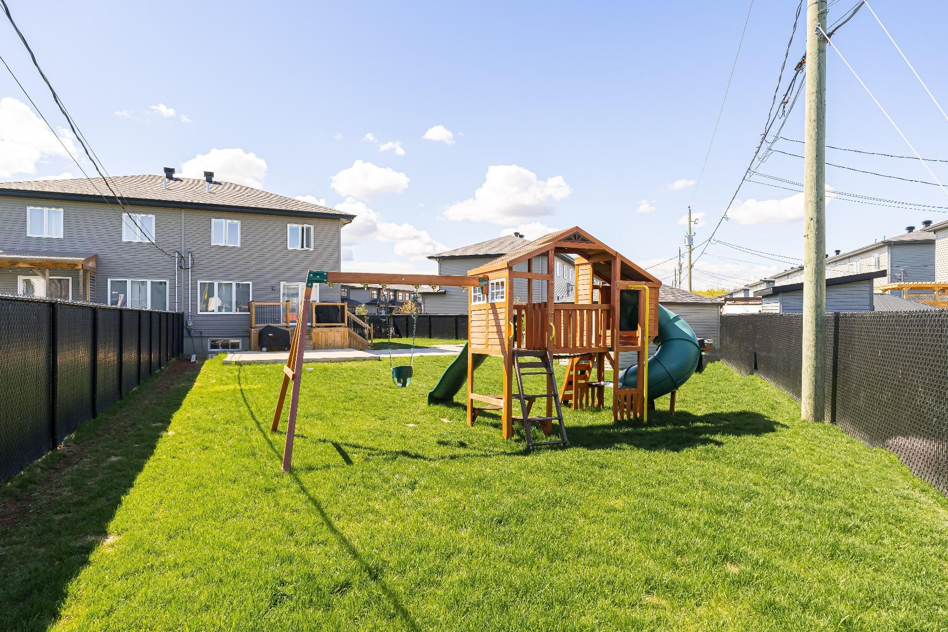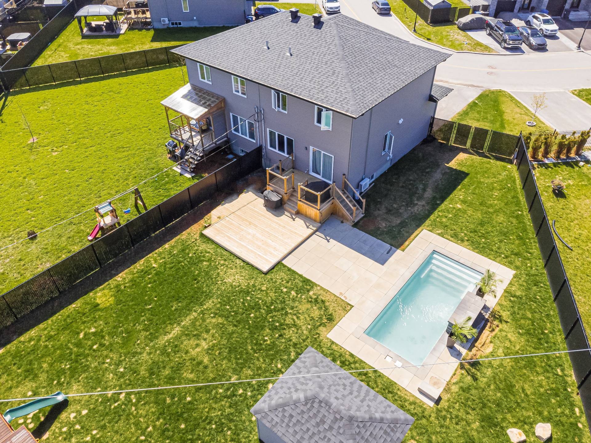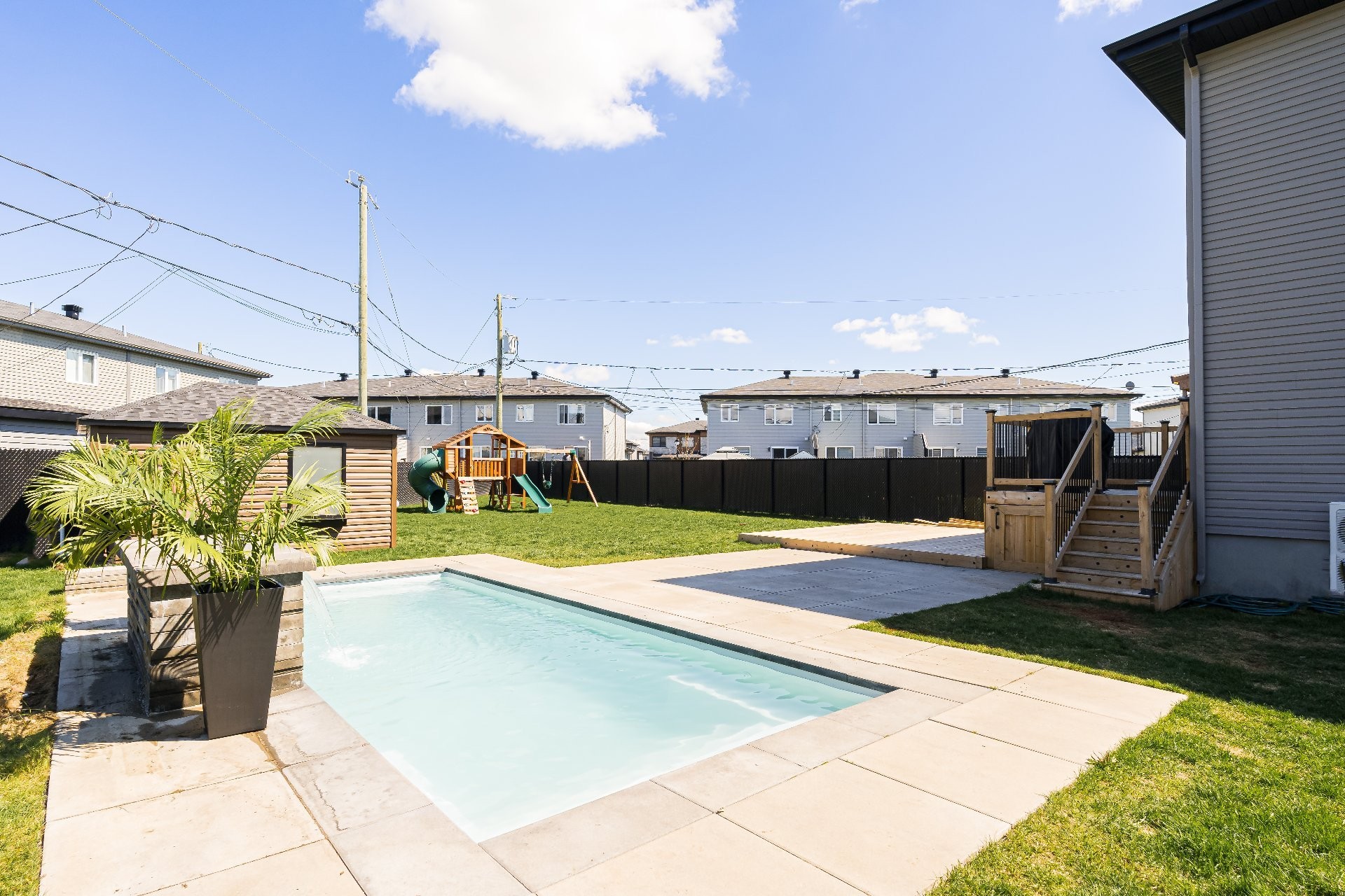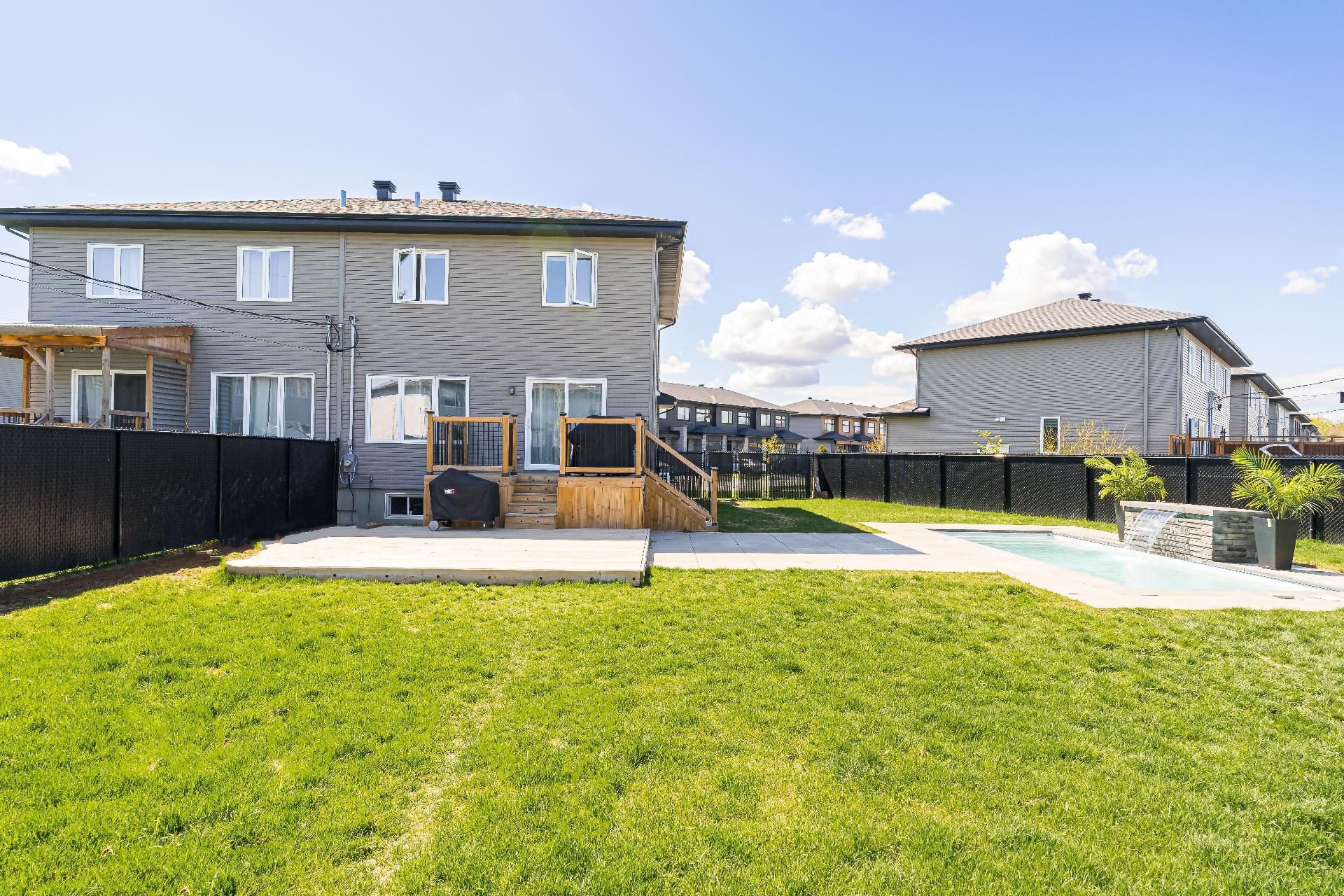 Welcome to 939 Rue Des Chenilles in the very sought after area of Grand Pré/Frontenac in Saint-Lazare, this home features one the largest lots in the area, a beautiful backyard with an in-ground salt-water pool, large two-tier deck overlooking a lot of almost 8000 SF, the home itself is an open concept semi-detach with 3 good-sized bedrooms on the second floor, the master bedroom features a walk-in closet, the basement was recently completely done with recessed lighting, cables already pre-wired for a TV and a full bathroom with ample storage. Come visit this gem, a semi-detached in the area like not other.