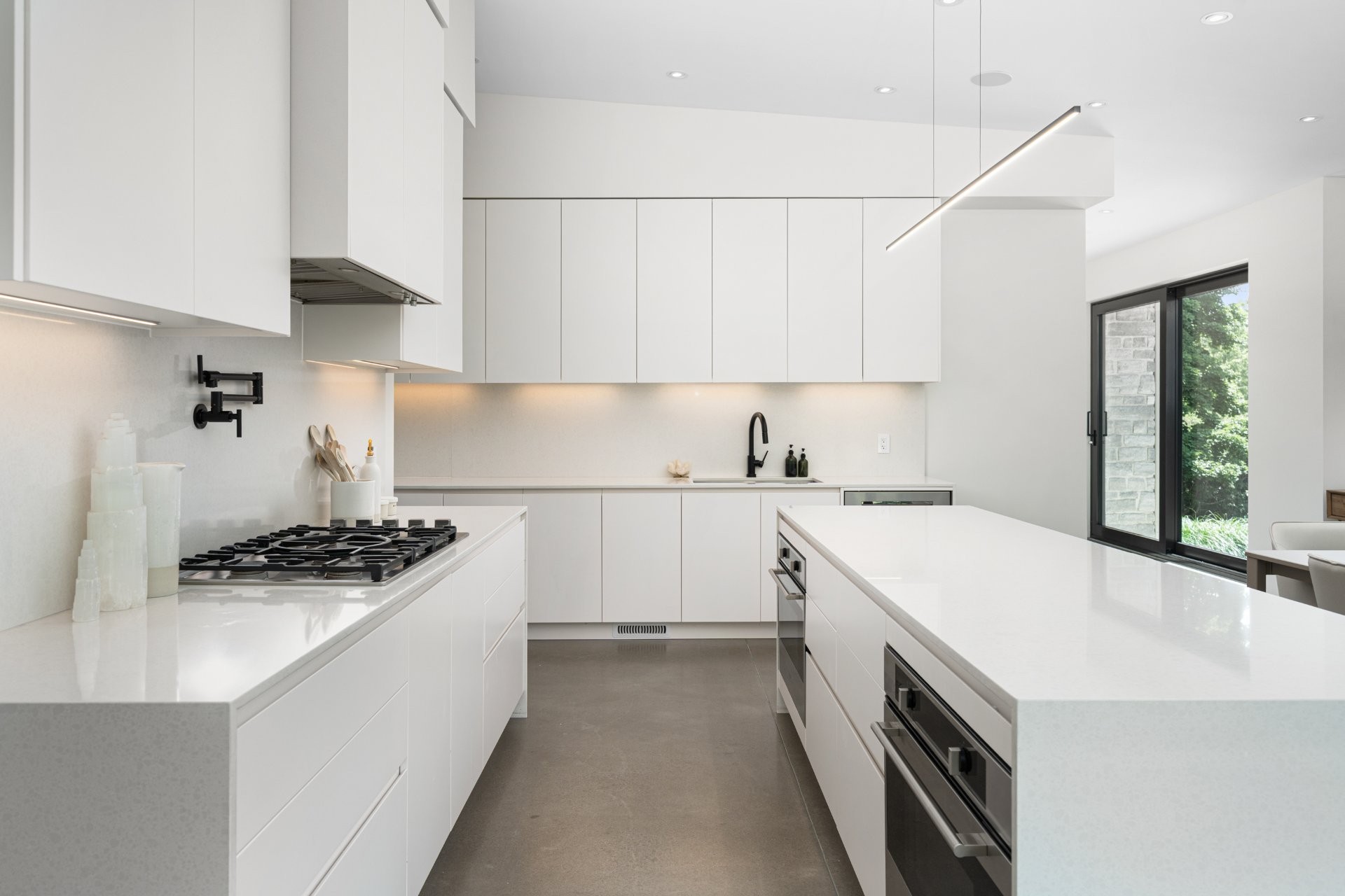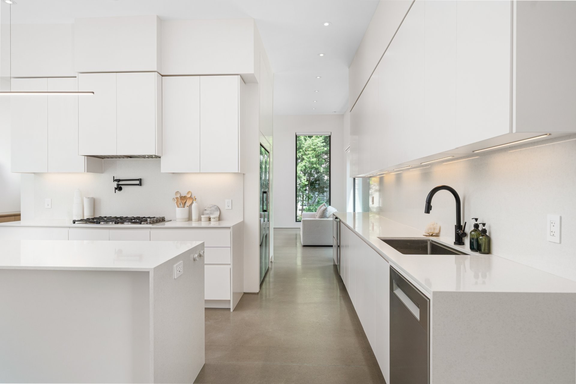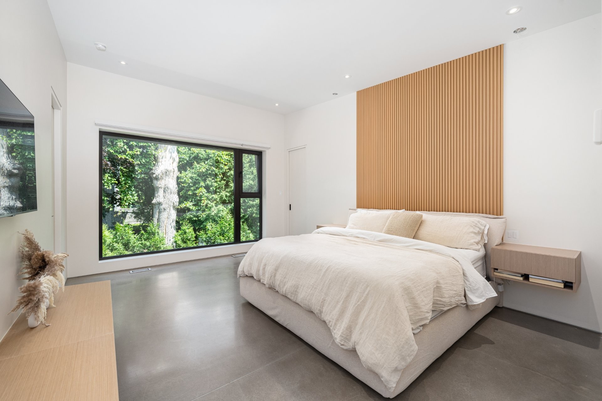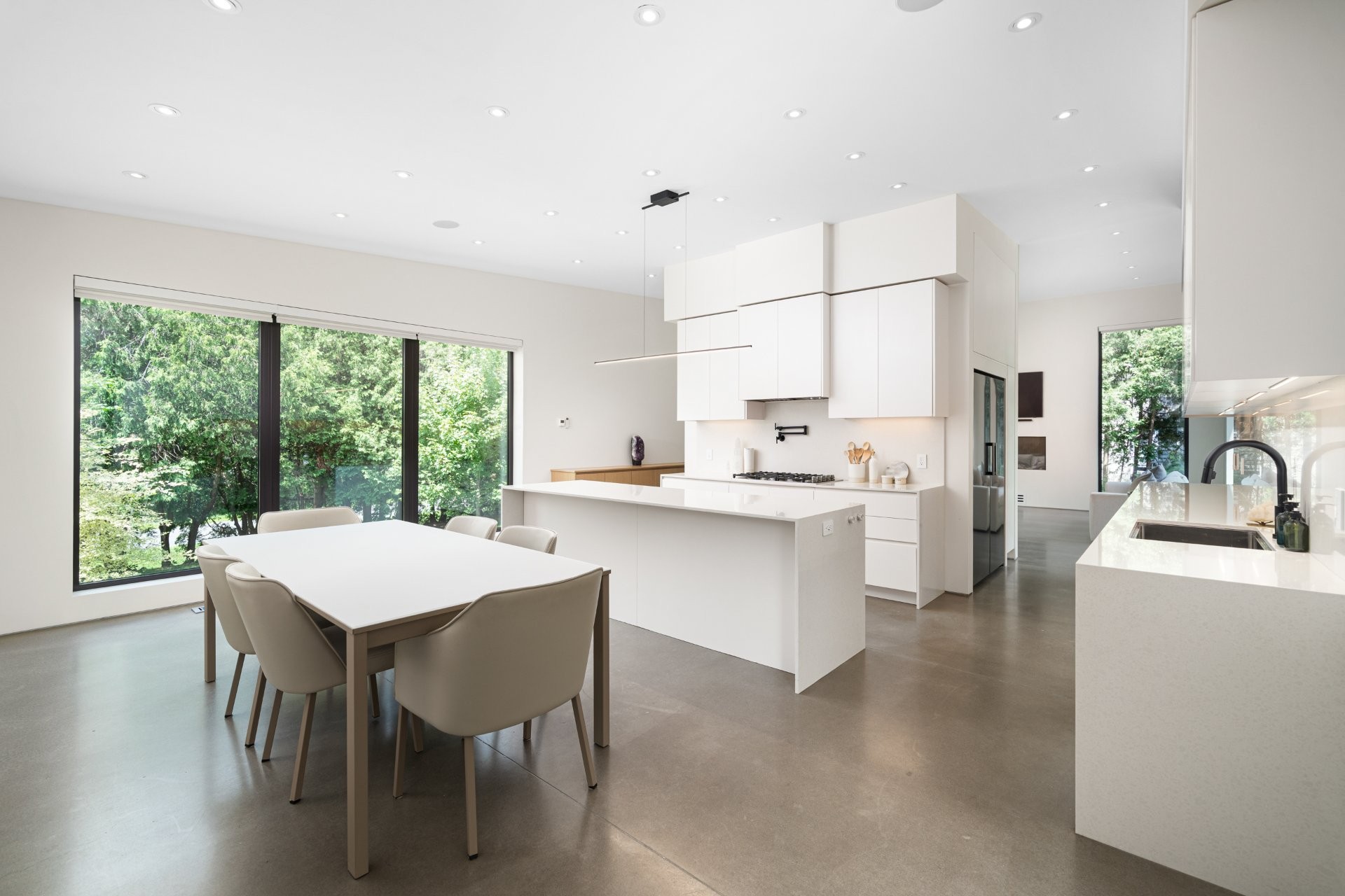This 2021 bungalow was meticulously crafted with cutting-edge contemporary architecture. You will find polished concrete floors with built-in hydronic radiant heating throughout the entire home. Ceiling heights vary from 9 to 12.5 ft on the main floor and 9 ft in the basement. Enjoy the triple panel thermally broken aluminum windows that can be found in abundance throughout the home. Put your cooking skills to test in the luxurious gourmet kitchen featuring a large island with two stoves, gas stovetop and walk-in pantry. The spacious living room is the highlight of the main floor with a large gas fireplace and wall to ceiling windows. The primary suite is located on its own and features a private office, an ensuite that includes a double vanity, a large glass shower and standalone tub and a large custom walk-in closet with plenty of cupboard space and smoked-glass doors. On the opposite side of the house, you will find a spacious family room and two other good-sized bedrooms connected by a "Jack and Jill" washroom, a laundry room and powder room.