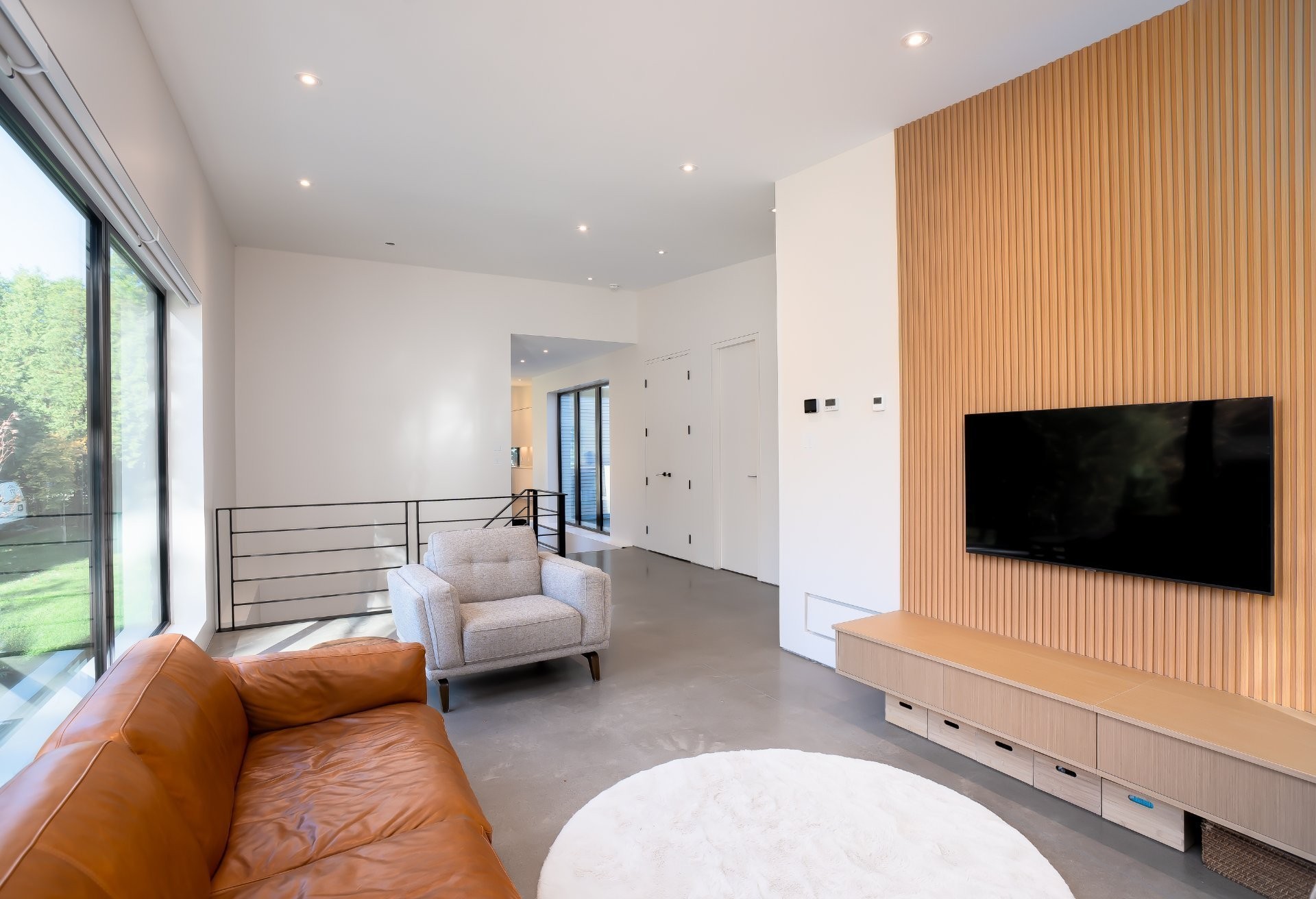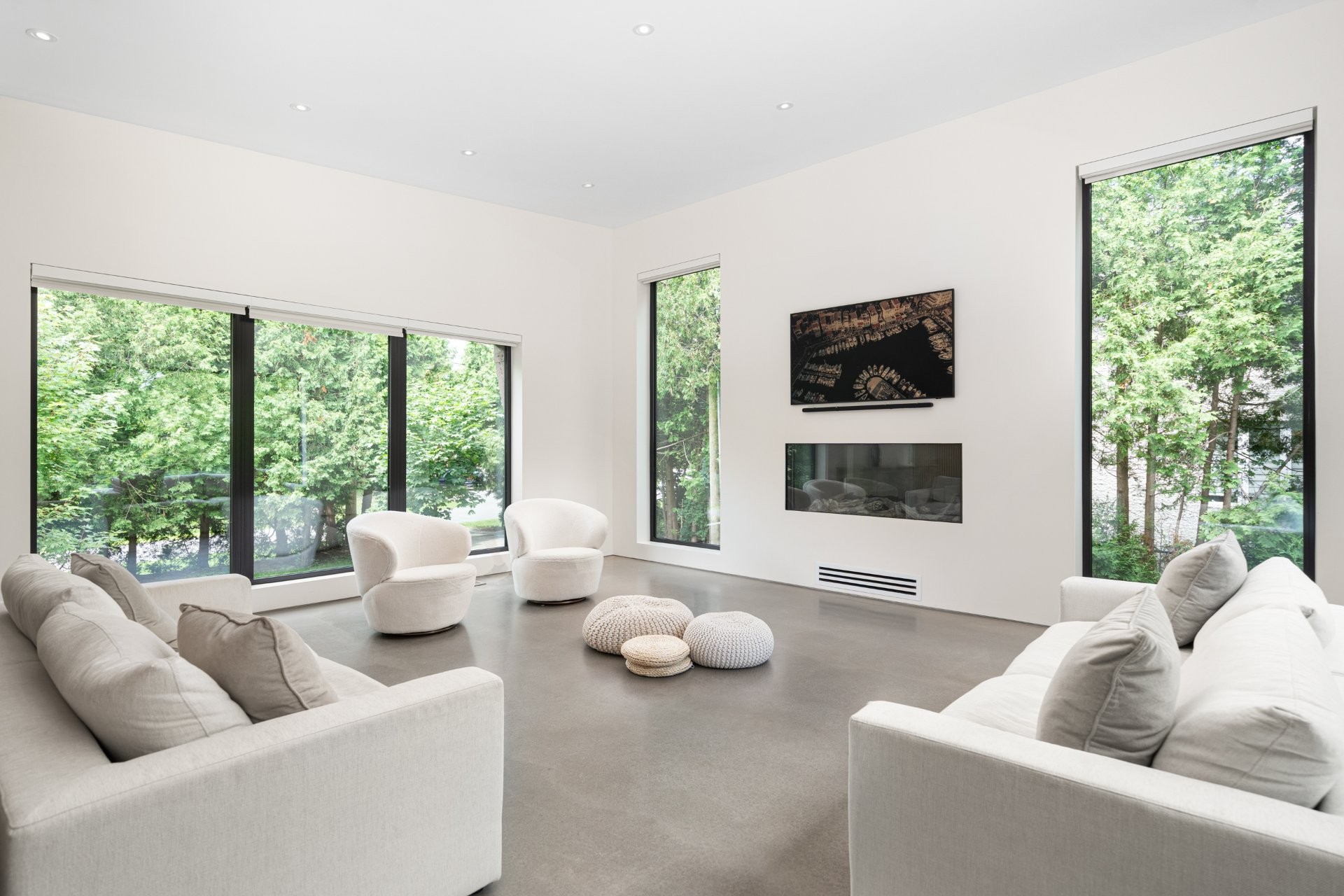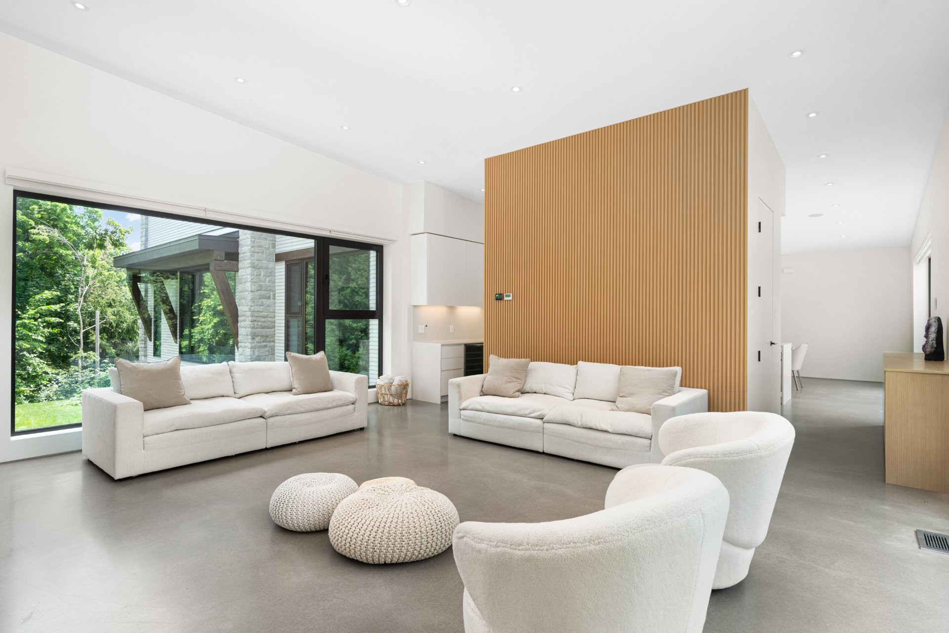 Welcome to 95 Upper Cambridge. This newly constructed 3+1 bedroom, 3+1 bathroom home is located on a sought-after street in Baie d'Urfe. Beautifully landscaped and situated on over 20,000 sq ft of property. This 2021 bungalow was meticulously crafted with cutting-edge contemporary architecture. You will find polished concrete floors with built-in hydronic radiant heating throughout the entire home. Ceiling heights vary from 9 to 12.5 ft on the main floor and 9 feet high in the basement.